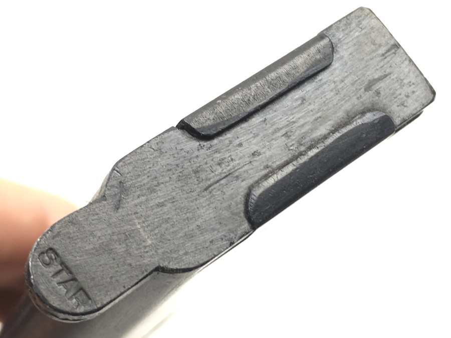 5/28/19 – This is an original WW2 era Star model B magazine. The magazine is original and in excellent condition. Strong, fully functional spring as well. No corrosion, rust, or dents. Guaranteed original.