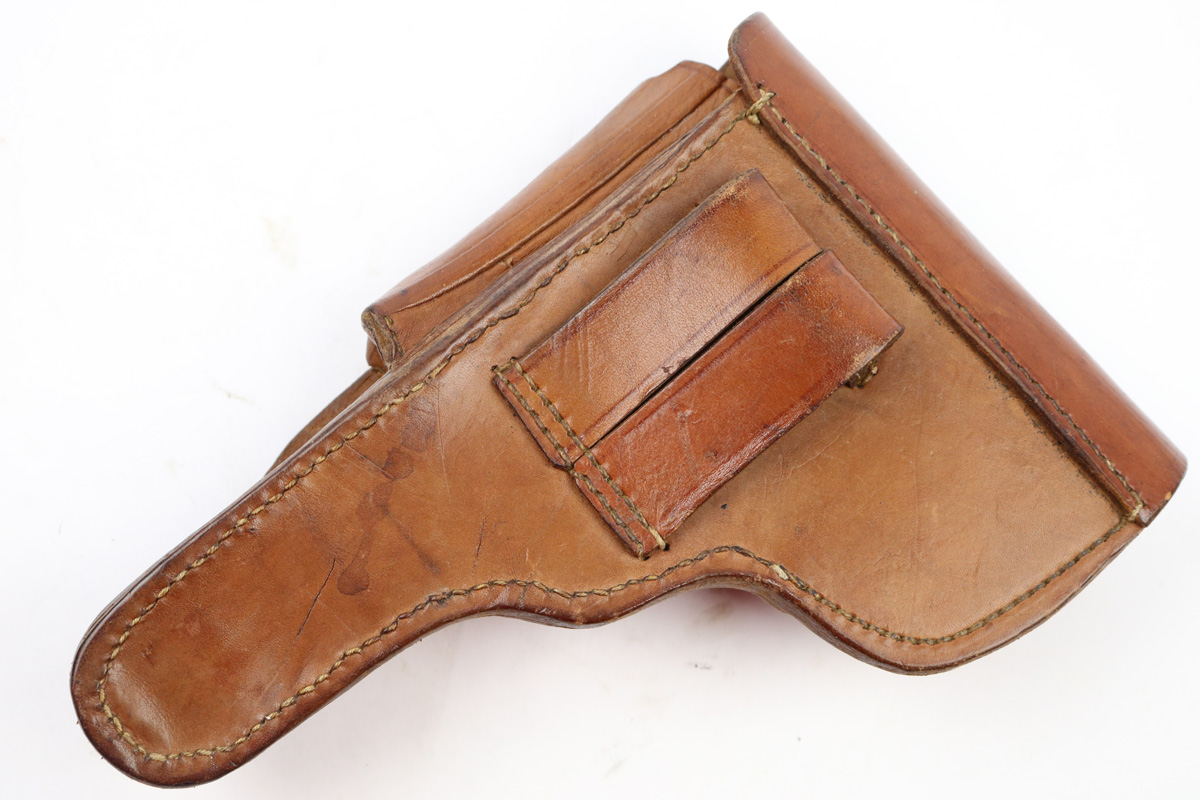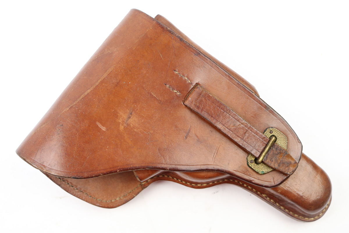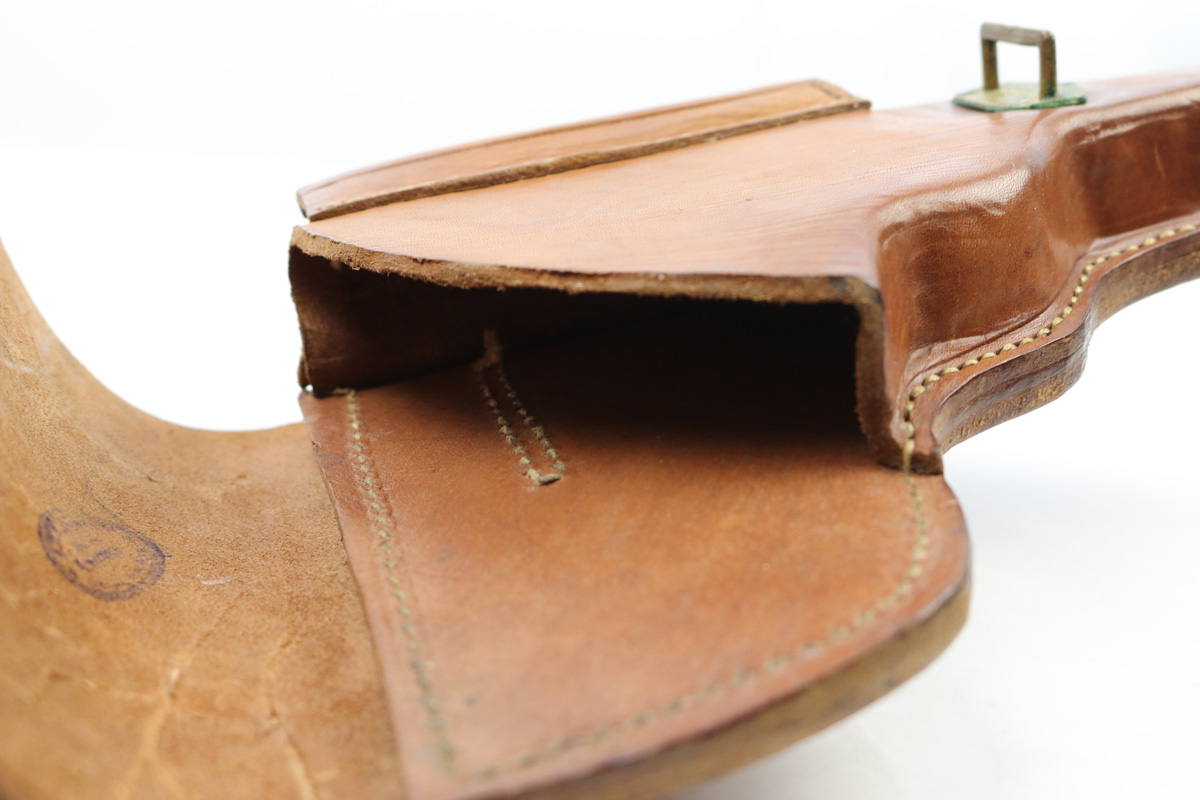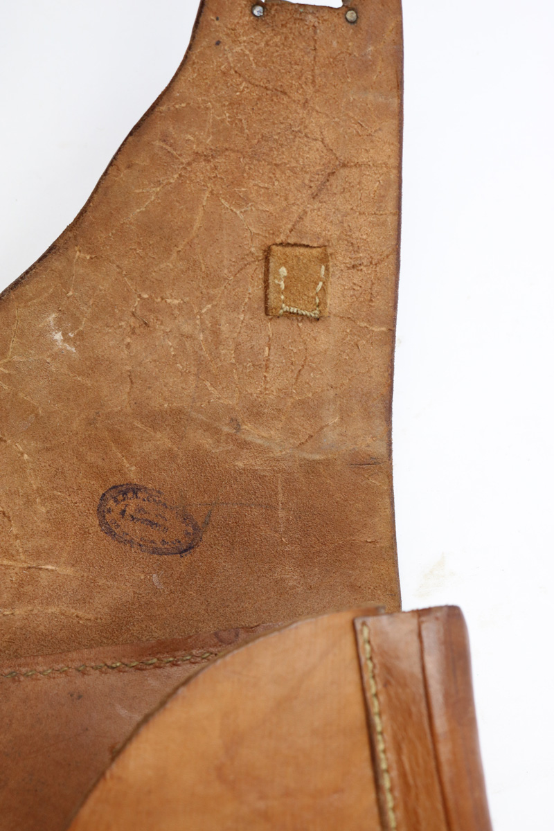 7/30/18 – This is an excellent, near mint Star model B holster. The holster has strong, clean leather and all original stitching in tact. There’s a small interior ink stamp (oval shaped), but isn’t legible. No other markings. The leather is rigid and minty. Guaranteed original.