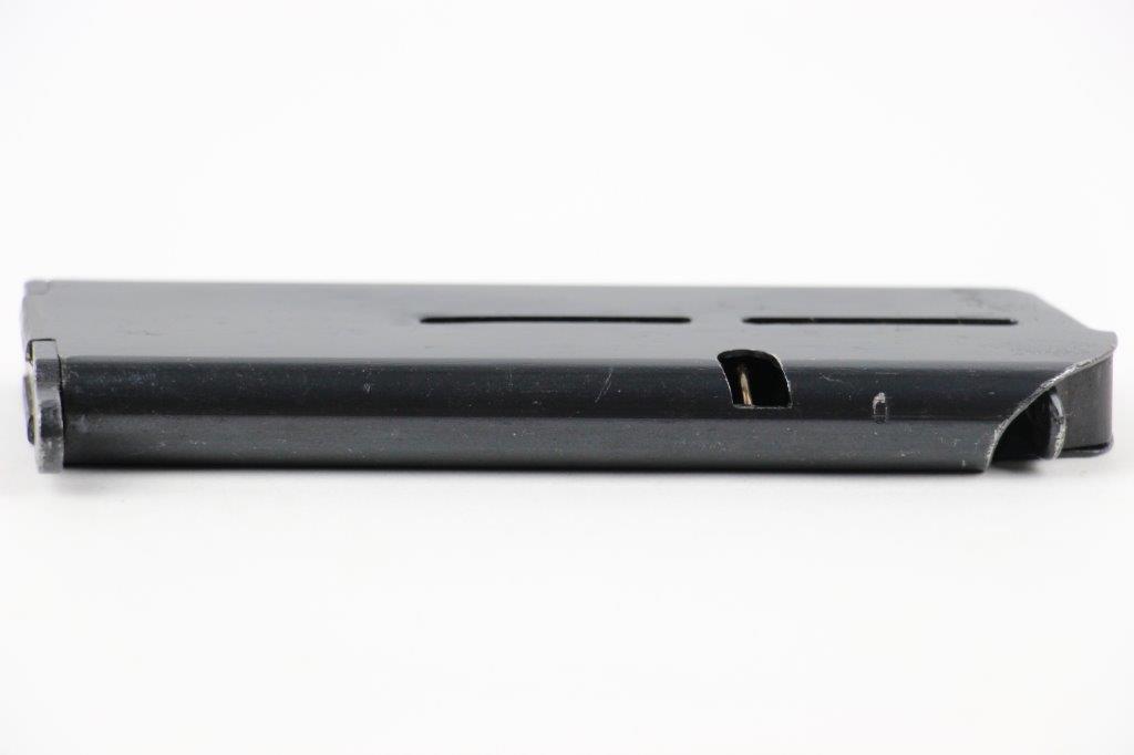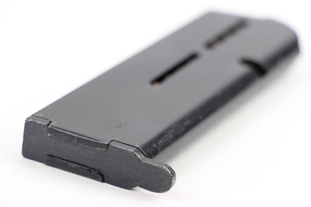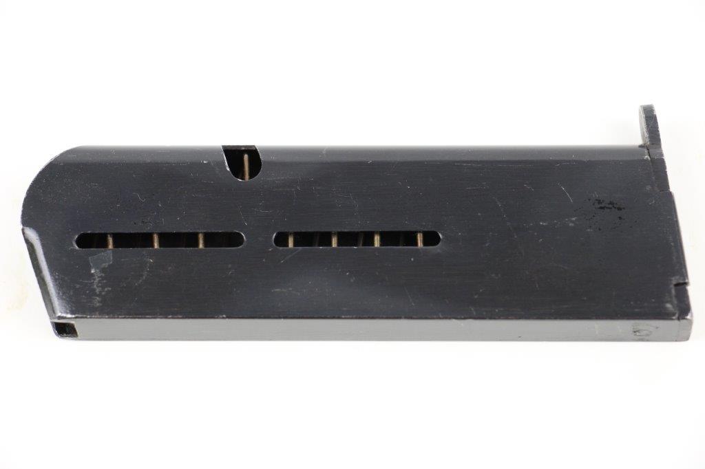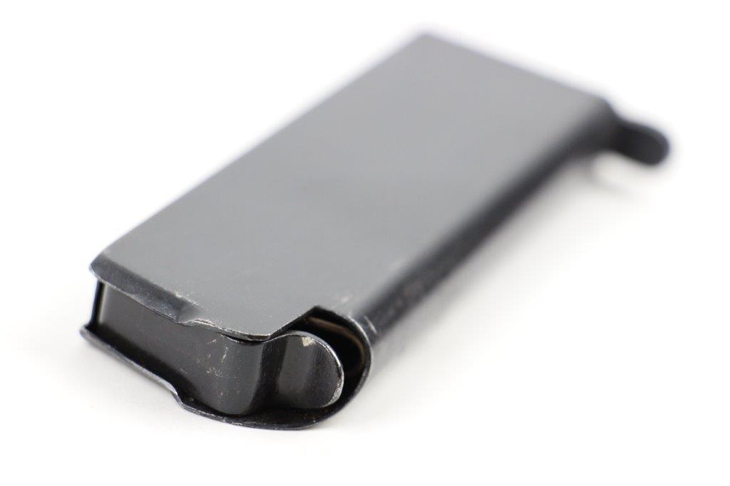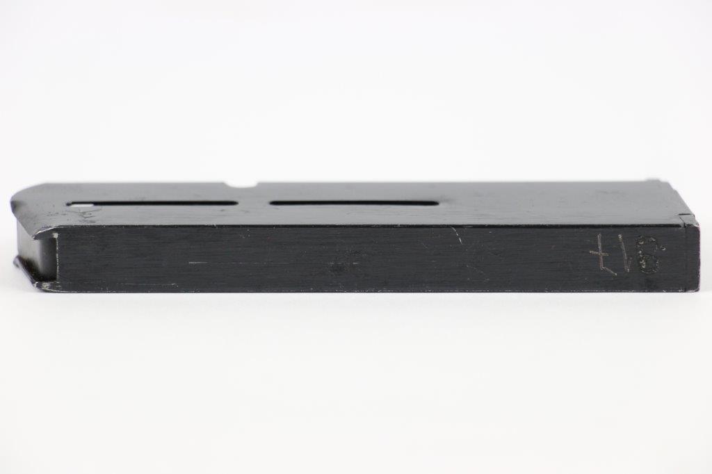 5/20/24 – This is an original WW2 era Star Model B Magazine. The magazine has original blued finish throughout and no markings or stamps, except for a post-factory electro-penciled serial number on the spine. No rust or pitting and a strong, fully functional spring.
