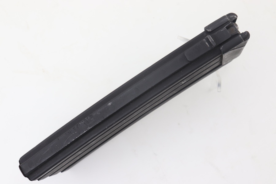 4/10/24 – This is an original and great condition 35 round all steel Galil magazine. There is light finish loss on the follower and minor edge wear on the feed lips, but overall, the mag retains nearly all of its original finish. Spring works as it should. Capacity is 35 rounds of 5.56x45mm.