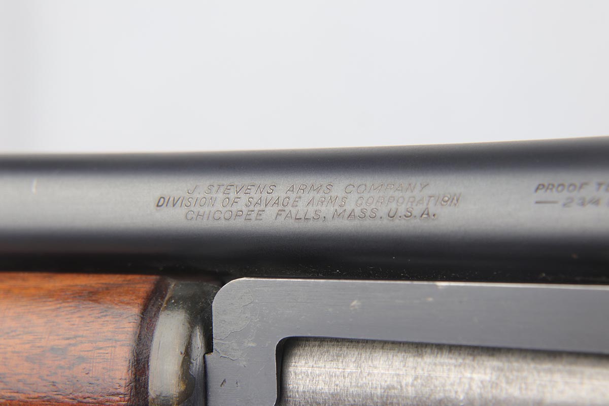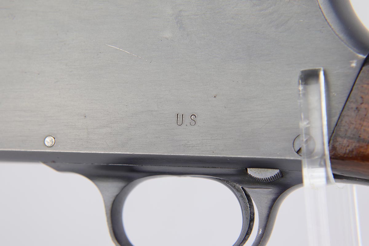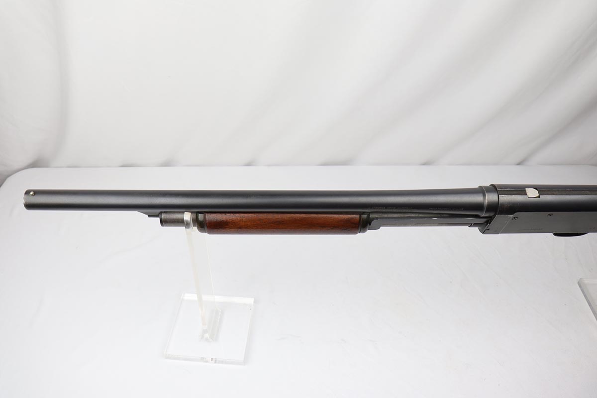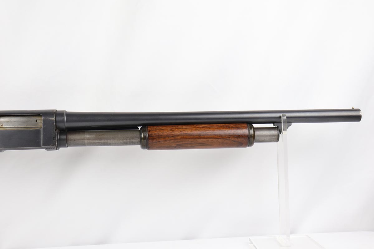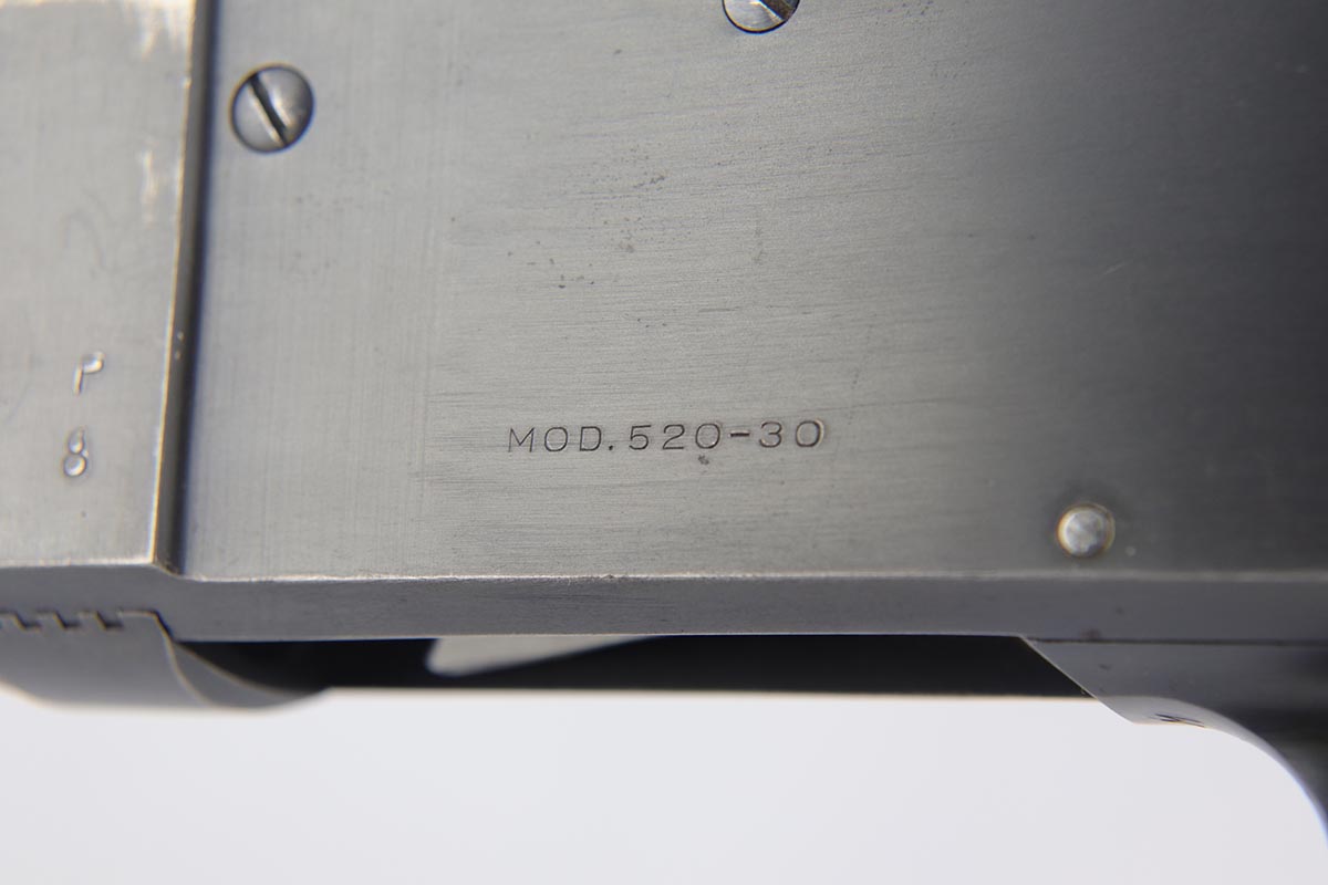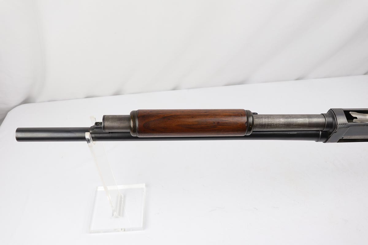 2/7/19 – This is a beautiful and original US Military riot shotgun from WWII, the Stevens Model 520-30. It is US marked with multiple flaming bomb proofs denoting military issue. The bluing is excellent with only minor receiver wear on the high edges, and a fantastic bore. The wood is all in terrific shape with no major flaws. There were ~33,000 Stevens 520-30s produced for the war, with a mix of trench guns, riot guns and long-barreled training guns among those 33,000.