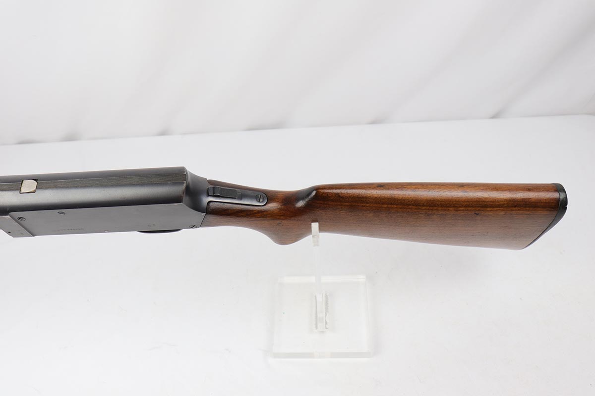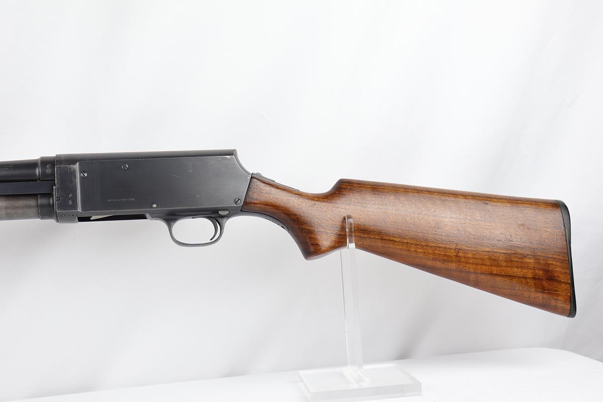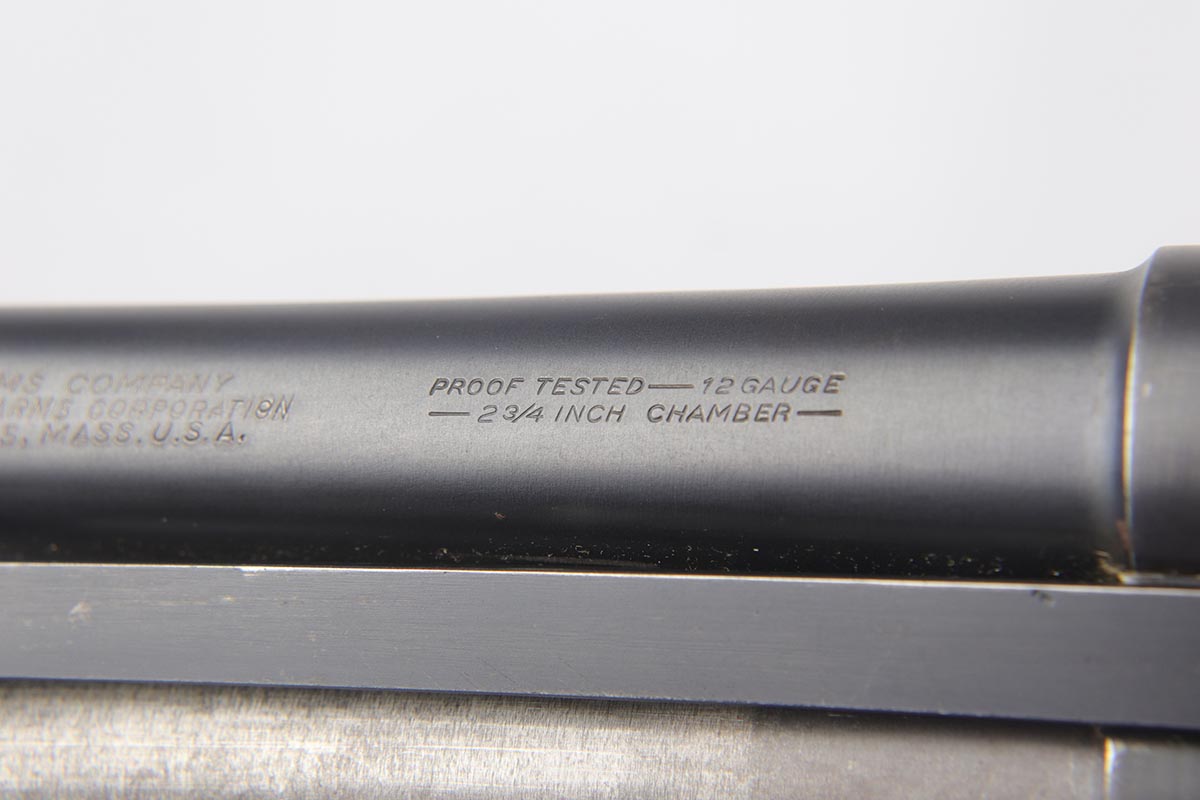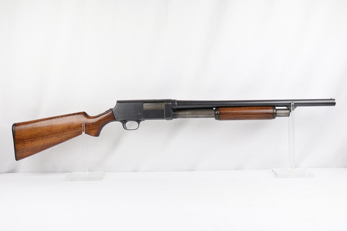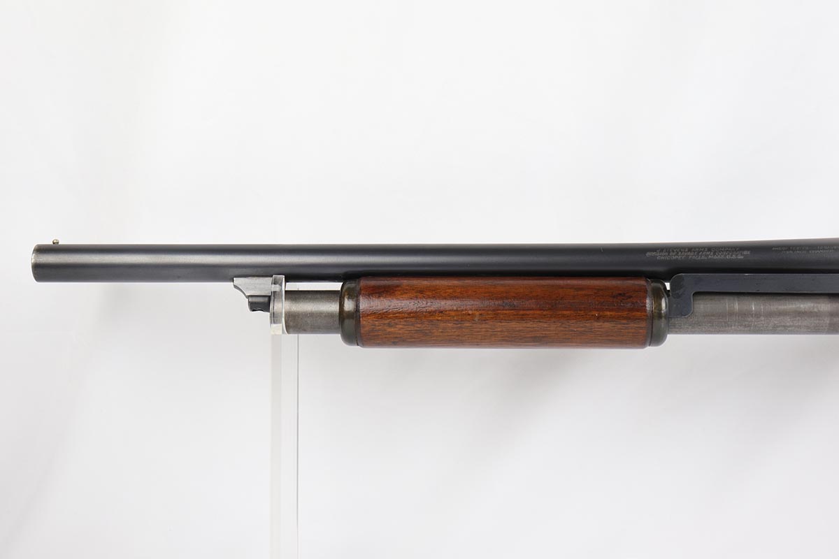 2/7/19 – This is a beautiful and original US Military riot shotgun from WWII, the Stevens Model 520-30. It is US marked with multiple flaming bomb proofs denoting military issue. The bluing is excellent with only minor receiver wear on the high edges, and a fantastic bore. The wood is all in terrific shape with no major flaws. There were ~33,000 Stevens 520-30s produced for the war, with a mix of trench guns, riot guns and long-barreled training guns among those 33,000.
