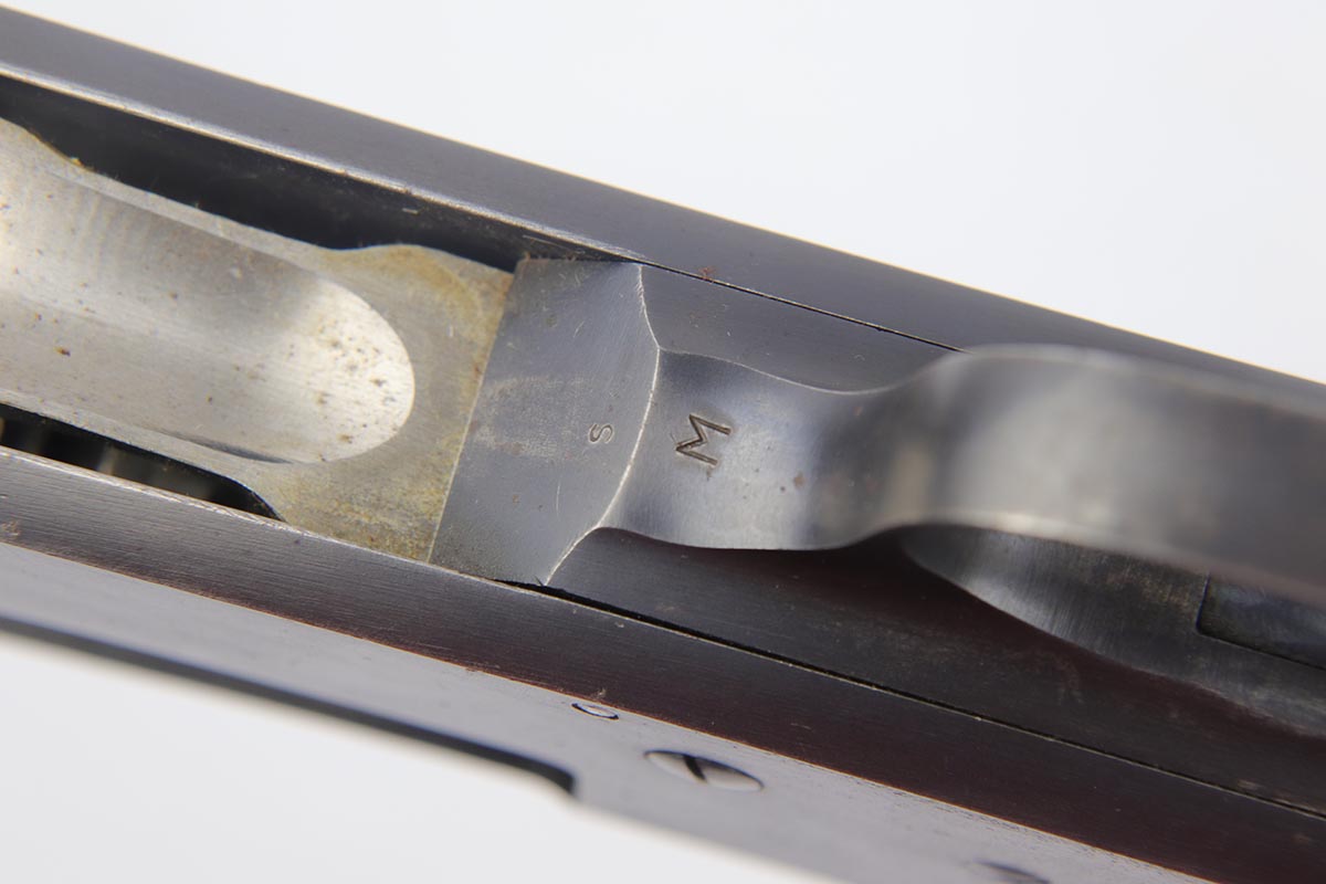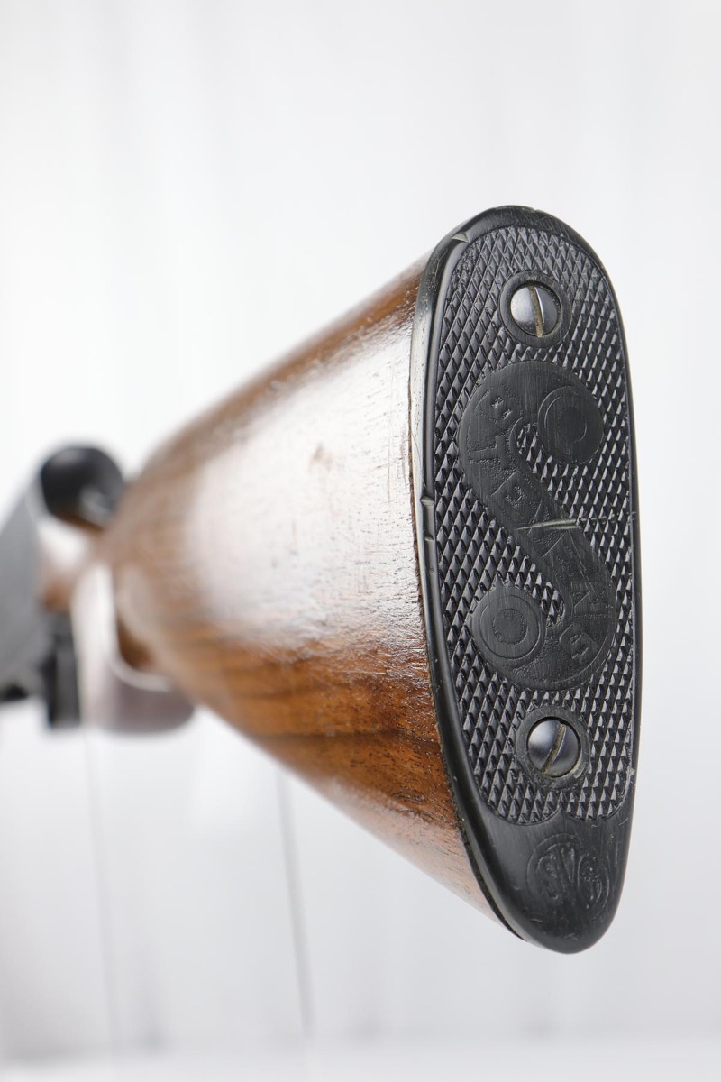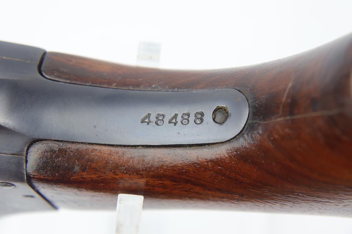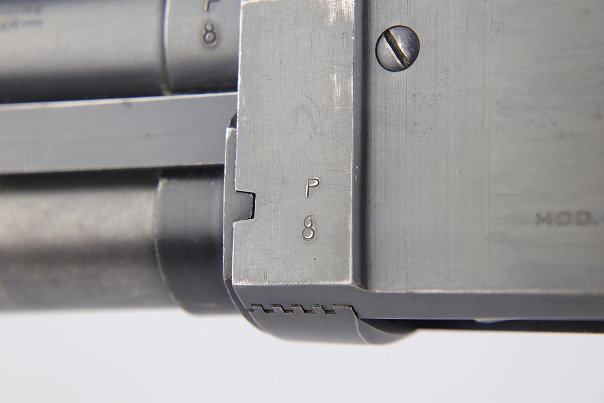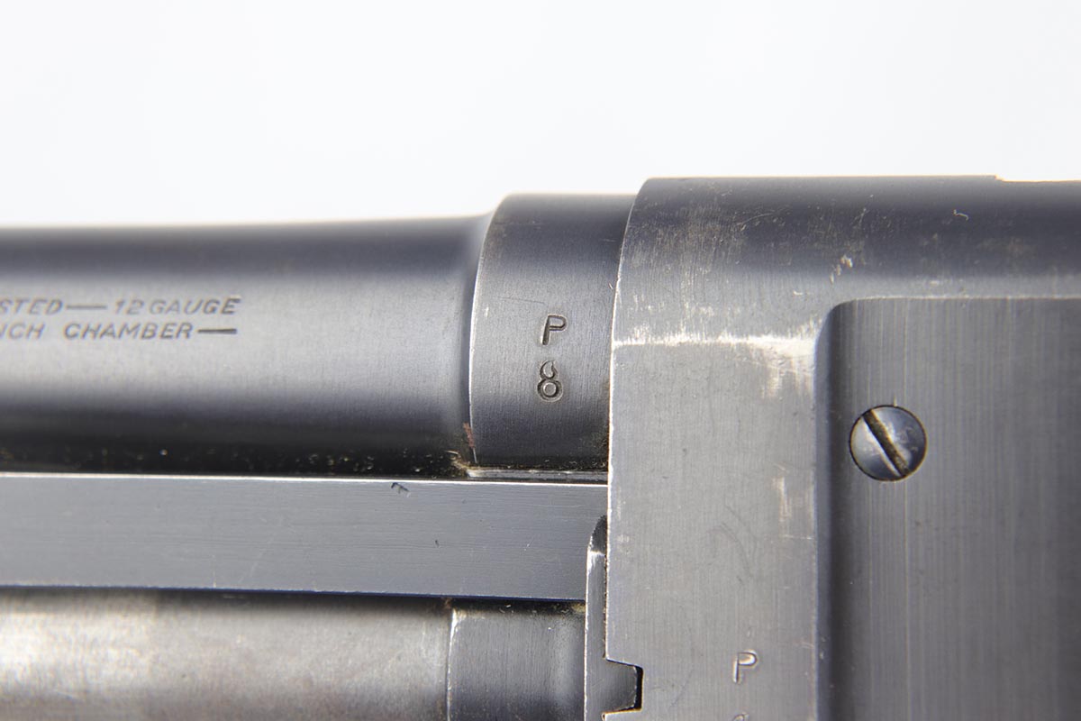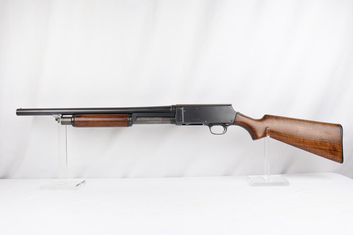 2/7/19 – This is a beautiful and original US Military riot shotgun from WWII, the Stevens Model 520-30. It is US marked with multiple flaming bomb proofs denoting military issue. The bluing is excellent with only minor receiver wear on the high edges, and a fantastic bore. The wood is all in terrific shape with no major flaws. There were ~33,000 Stevens 520-30s produced for the war, with a mix of trench guns, riot guns and long-barreled training guns among those 33,000.