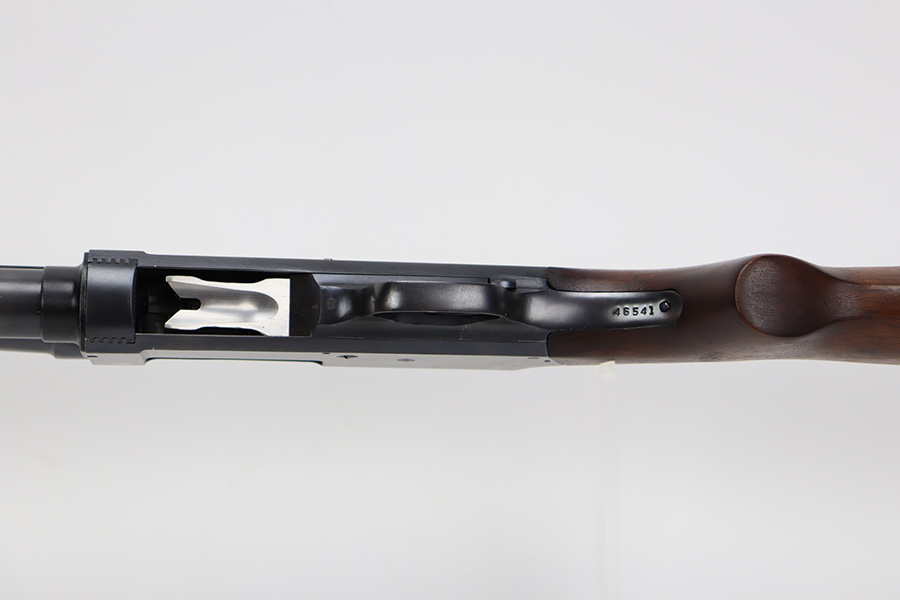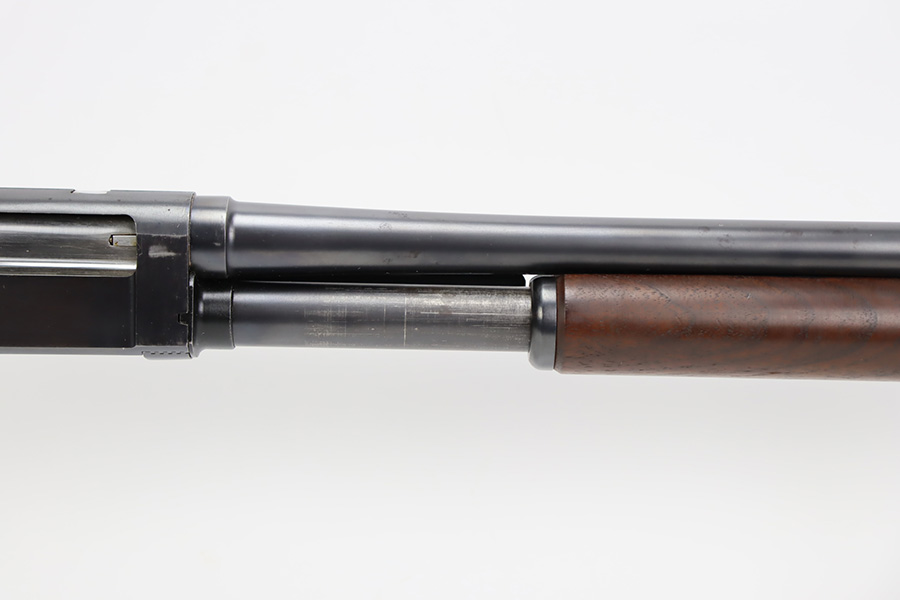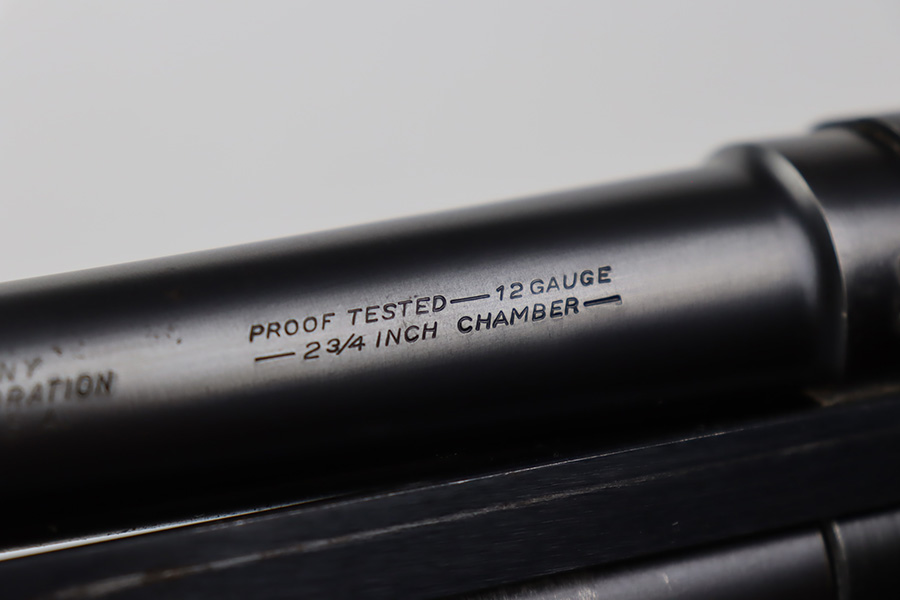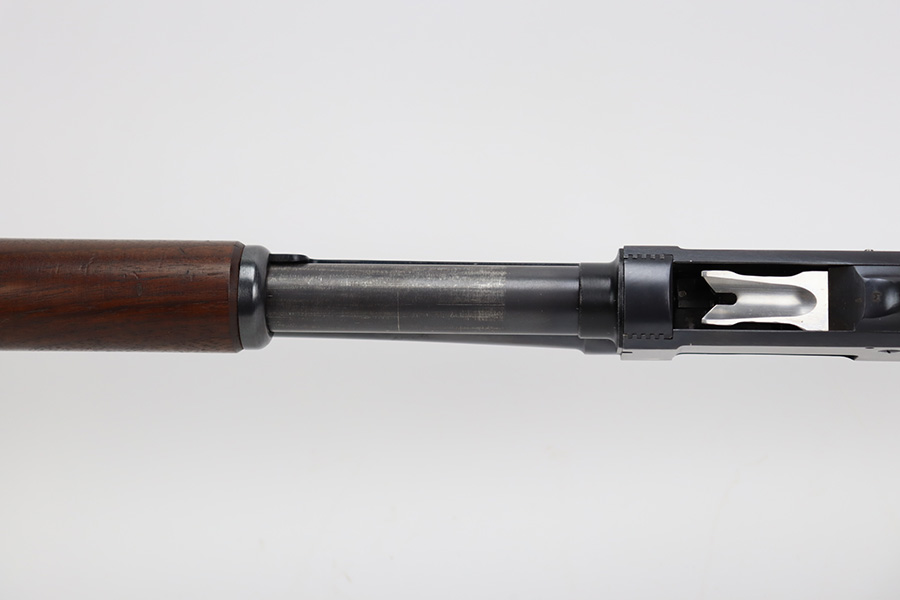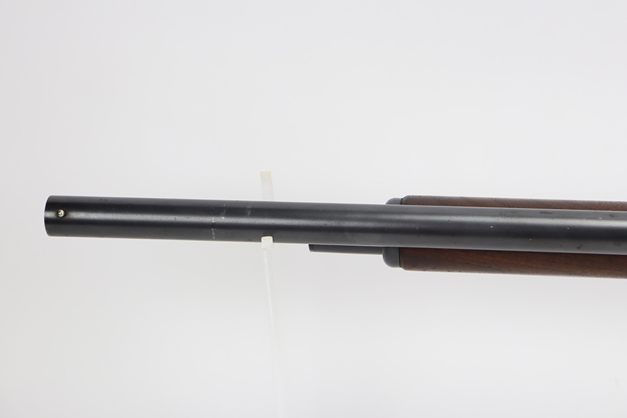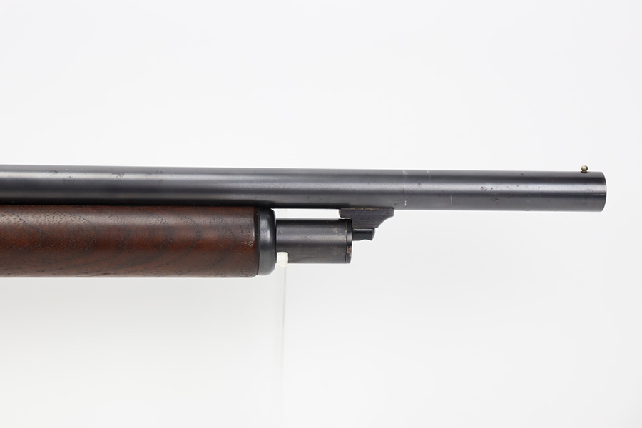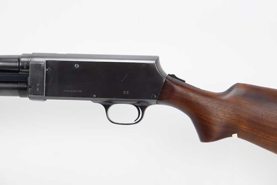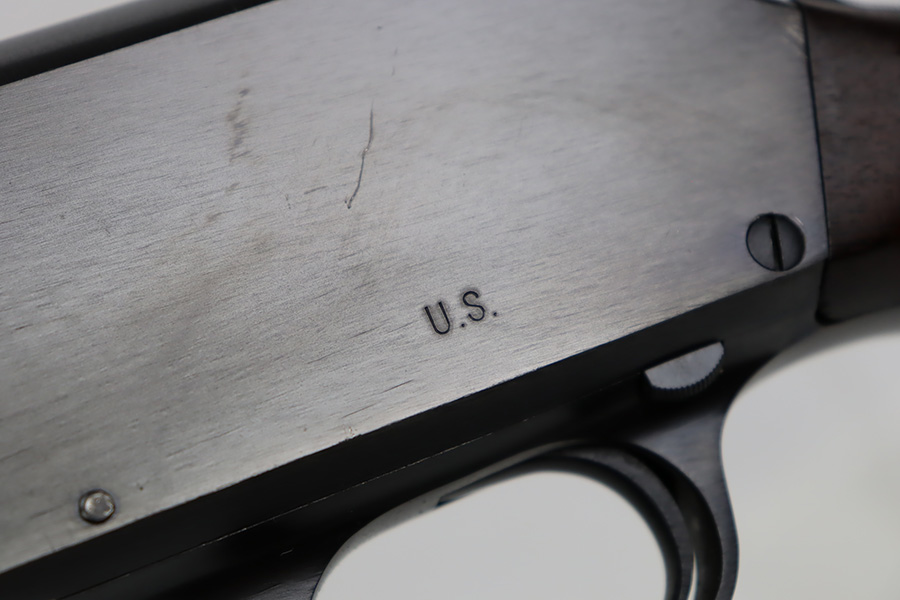 10/2/23 – This is an excellent and original US Military riot shotgun from WWII, the Stevens Model 520-30. It is US marked with multiple flaming bomb proofs denoting military issue. There were ~33,000 Stevens 520-30s produced for the war, with a mix of trench guns, riot guns and long-barreled training guns among those 33,000. The bluing rates about 93-95% with general minor high edge wear. Some light scratches and small spots of discoloration here and there. Excellent wood furniture with only very minor handling marks. Very nice bore.