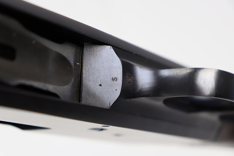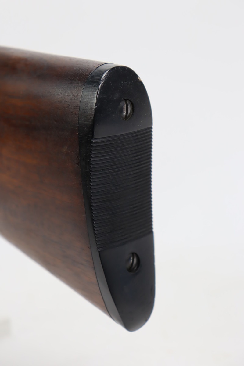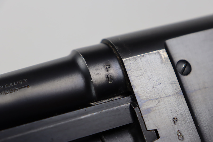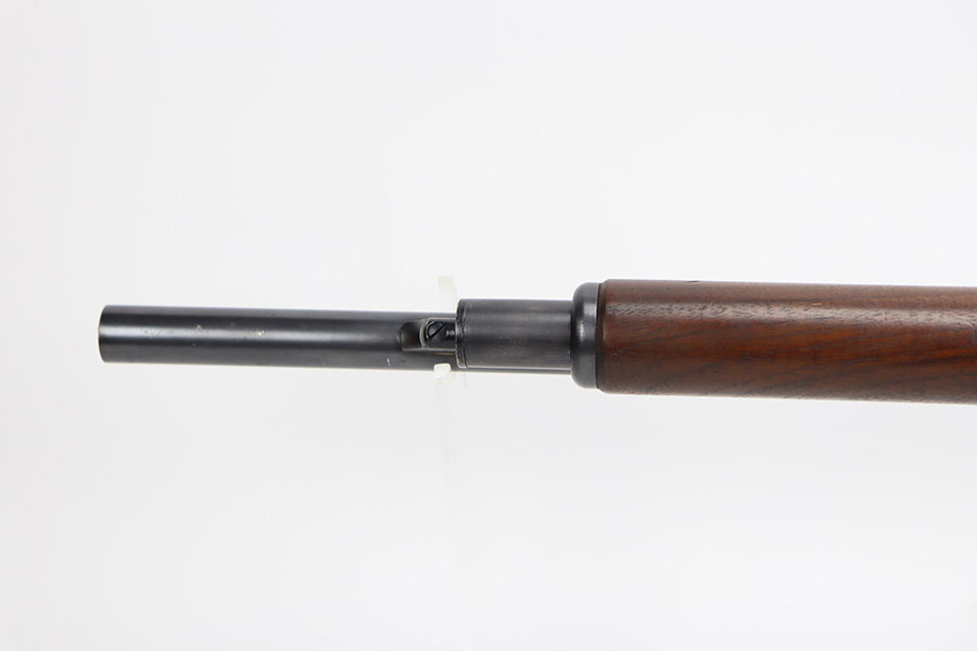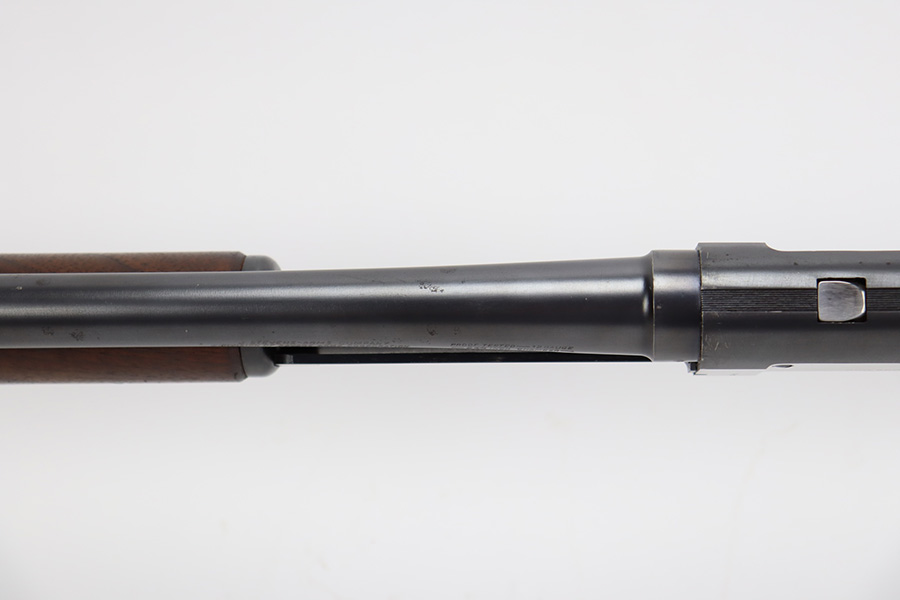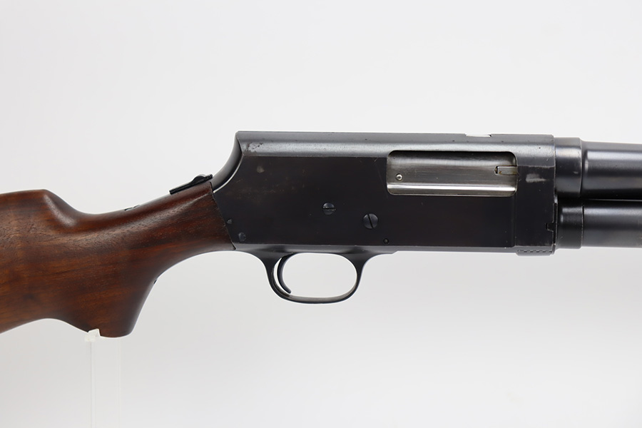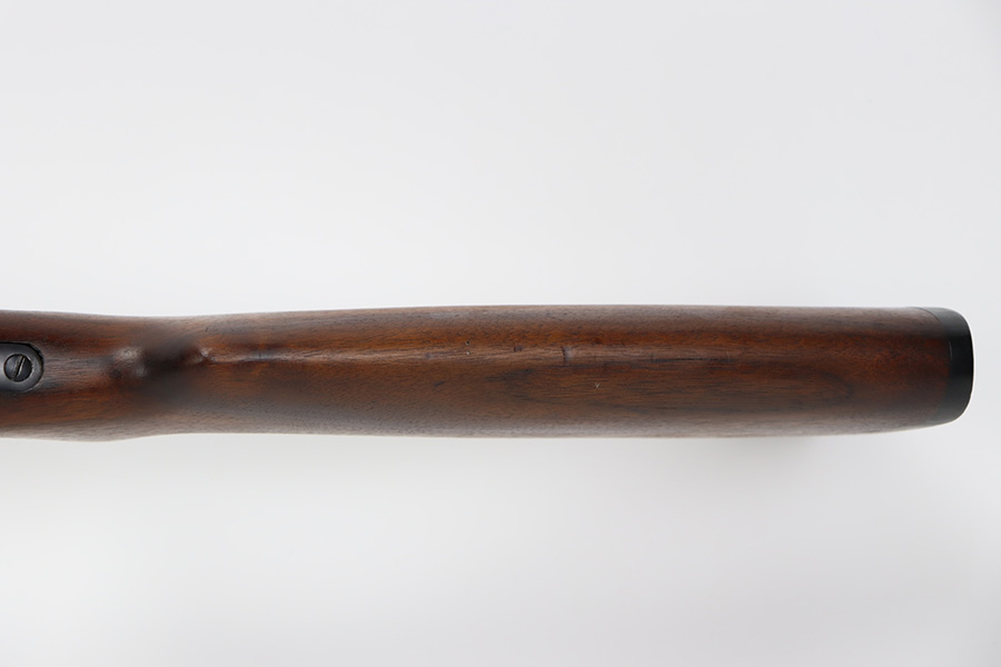 10/2/23 – This is an excellent and original US Military riot shotgun from WWII, the Stevens Model 520-30. It is US marked with multiple flaming bomb proofs denoting military issue. There were ~33,000 Stevens 520-30s produced for the war, with a mix of trench guns, riot guns and long-barreled training guns among those 33,000. The bluing rates about 93-95% with general minor high edge wear. Some light scratches and small spots of discoloration here and there. Excellent wood furniture with only very minor handling marks. Very nice bore.