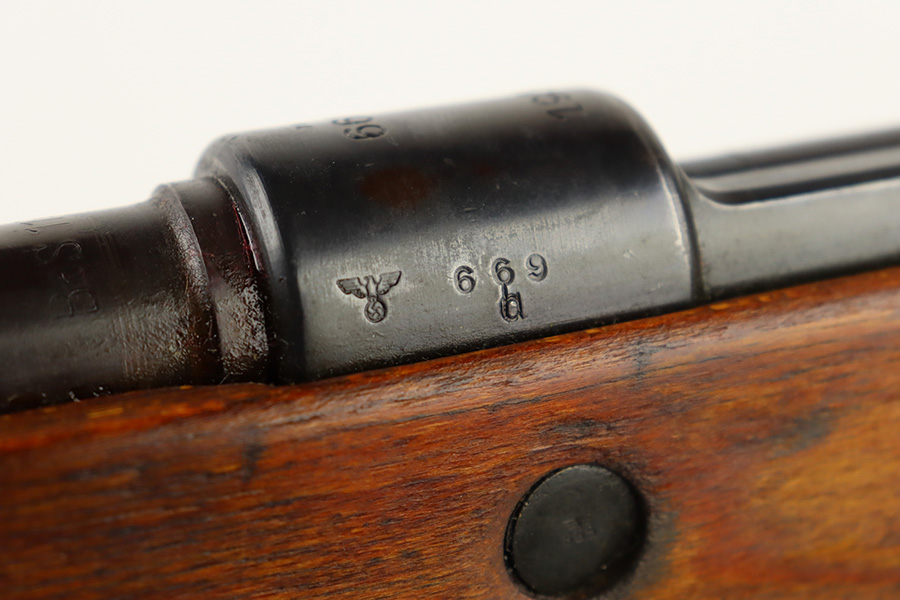 12/4/2024 – Up for listing is a great condition G12/34 made by Steyr before WW2. These rifles were manufactured for the Luftwaffe under Herman Goering’s request. The rifle is very clean and is free of any major damages. The metal on the rifle retains most of its original bluing with edge wear throughout. The stock is clean but the handguard the handguard is an incorrect replacement. The rifle has matching serial number on the receiver, bolt, bolt sleeve, safety flag, bolt stop release, striker, magazine floor, follower, and trigger guard. The barrel bands do not match. The bore is darker but has good, sharp rifling. The rifle comes with a brown leather sling and the rifle also has an abrasive grip tape applied to the buttplate.
