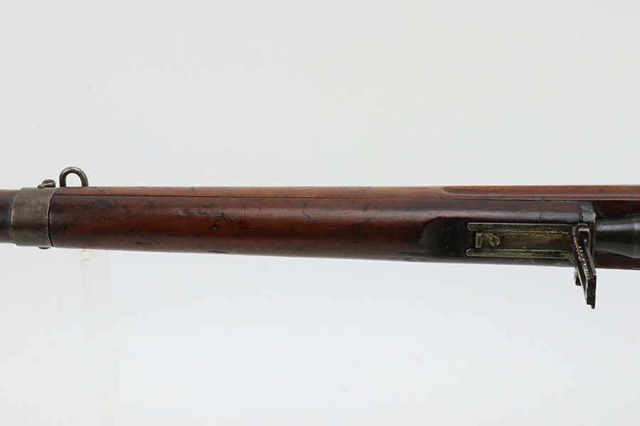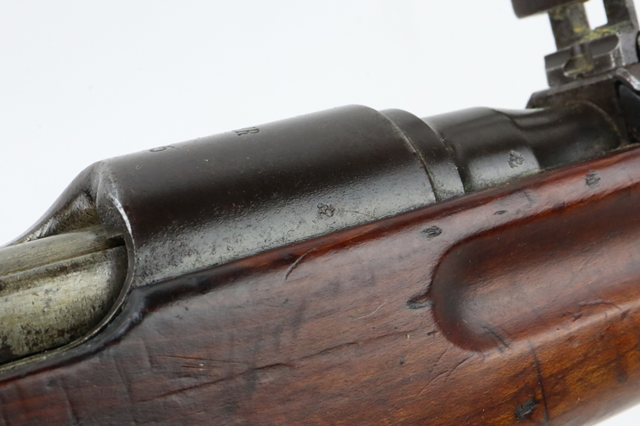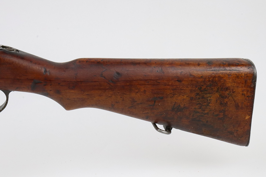 03/12/2024 – For sale is a Steyr Model 1895 that is still in its original 8x50r cartridge. The majority of these rifles were converted to 8x52r cartridges when the Spitzer bullet was adopted. The rifle is clean for its age and the bluing is well worn and replaced with patina. The wood is in good shape and is well-worn. the bore is dark with visible rifling. The rifle is matching on the receiver, stock, and bolt. The rifle is missing its stacking rod.