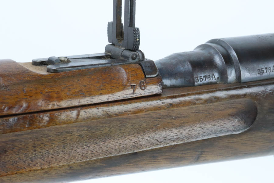 06/19/2024 – For sale is a Steyr Mannlicher M95 Stutzen chambered in the original 8x50r. The rifle is in an overall 85% condition with many spots of oxidation throughout the rifle. The receiver, barrel, and trigger guard have a lot of the original bluing remaining, but there are many spots of oxidation on the finish. The stock is clean and in good condition. The rifle is matching on the bolt, receiver, and stock. The bore is dark with visible corrosion, but the rifling is still sharp when shining a light. There is some surface rust visible at the muzzle.