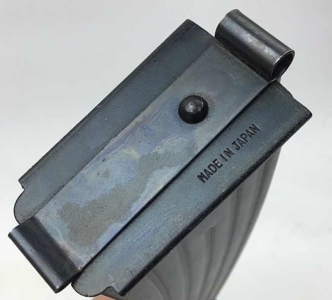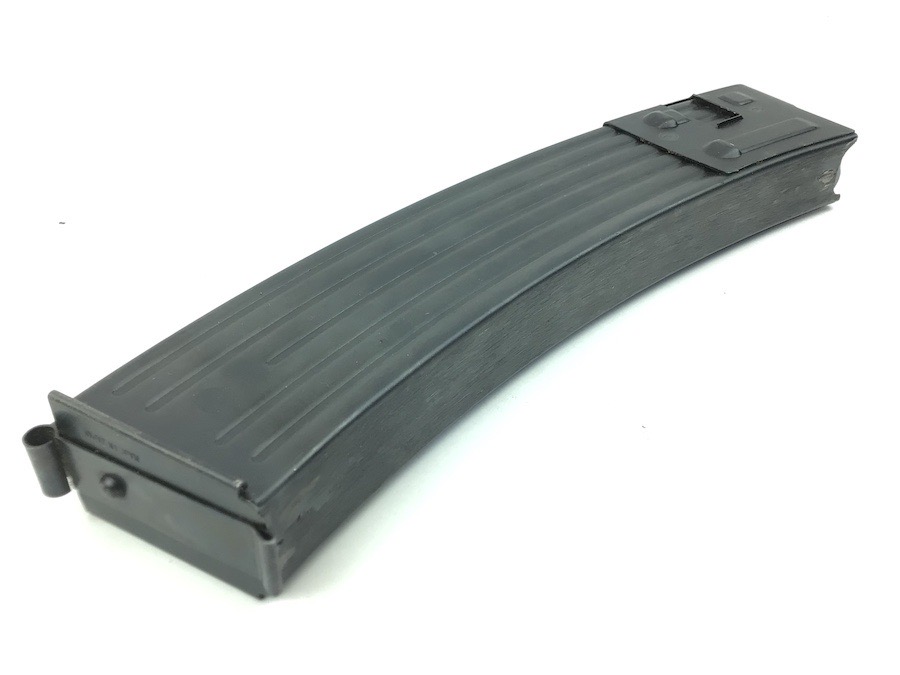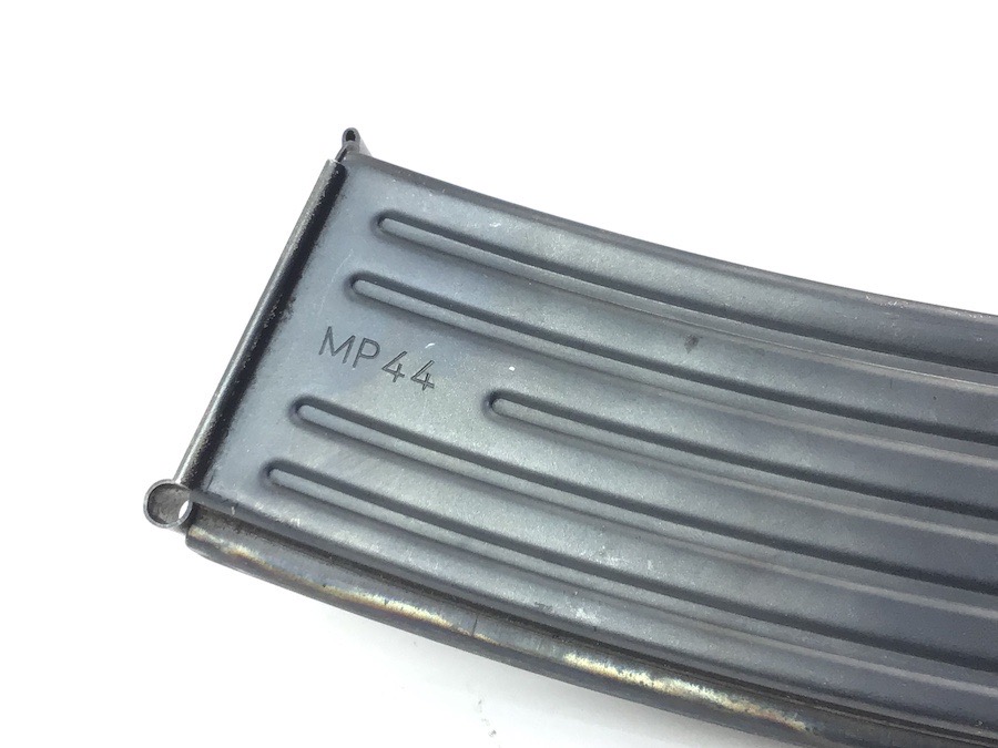 4/19/23 – Japanese reproduction by Shoei. Great condition MP 44 / STG 44, 30 round magazine. Quality all steel construction with great bluing. Stamped “MP 44” on one side. Minor wear. Strong smooth spring. No corrosion, rust or dents. Affordable machine gun magazine.