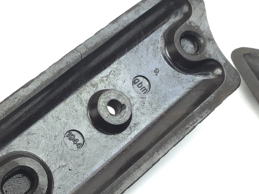 3/29/23 – Original and great condition. Bakelite grip panels for the MP-44 machine gun. Minor repair to the internal escutcheon of one panel, but it is secure. Not visible from the the front. Maker and date stamped on the back.