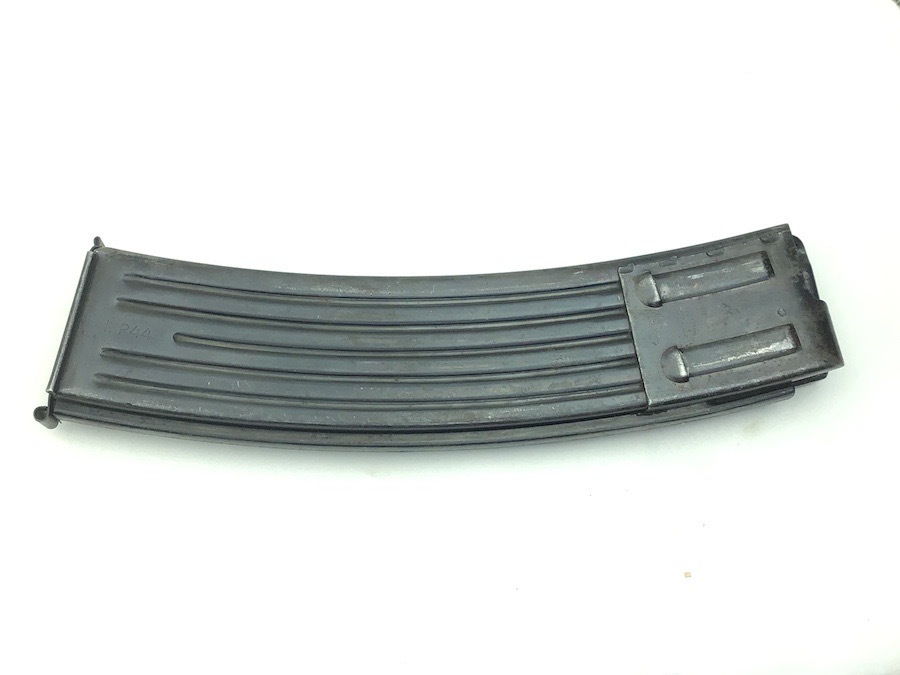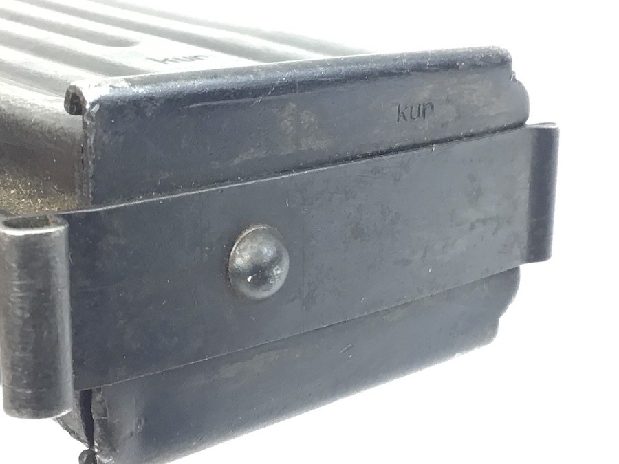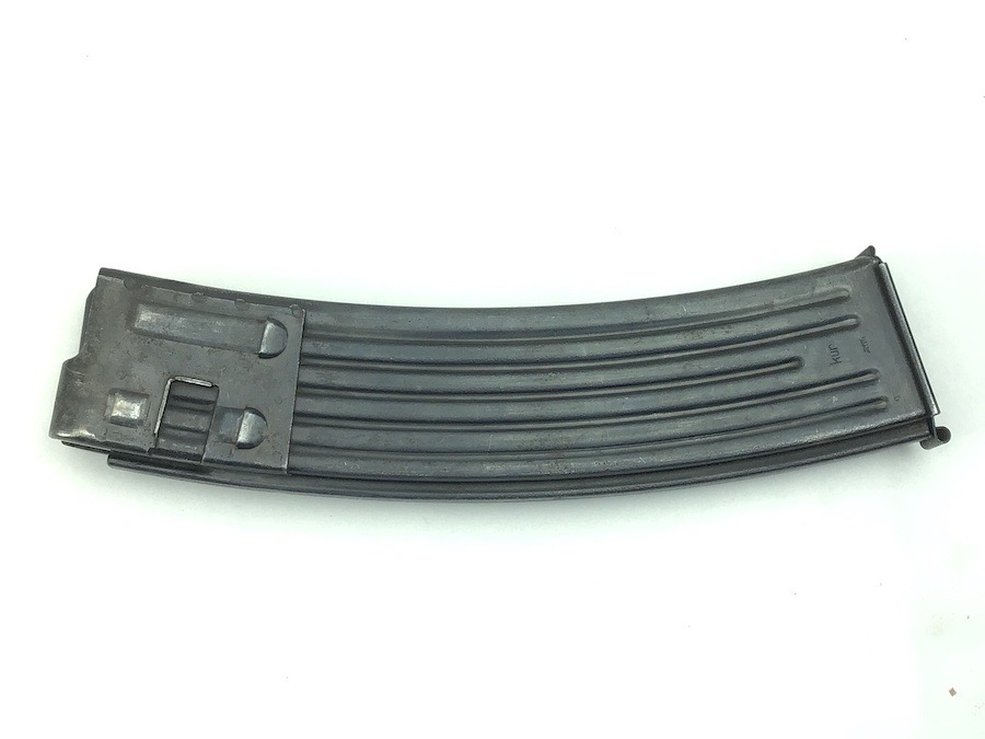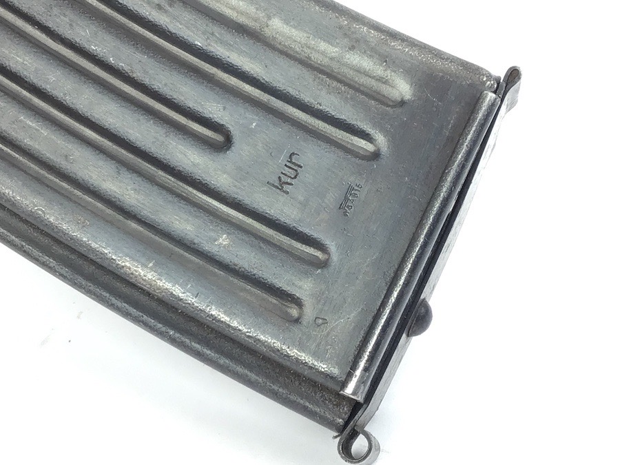 3/29/23 – Original and great overall condition. STG / MP 44 Magazine. Maker stamped “kur” on the side and on the base, indicating Steyr-Daimler. Stamped with two military waffen “WaA816” military proof stamps. One on the side and one on the spine. Strong, smooth spring.