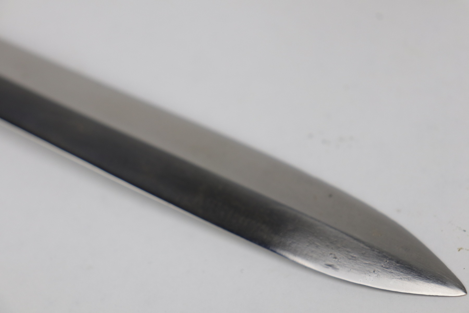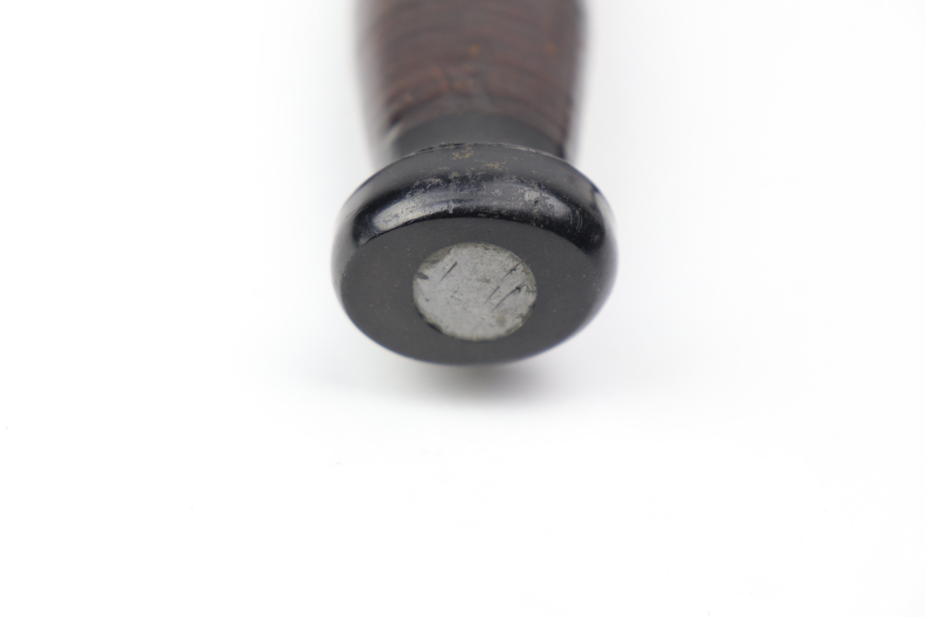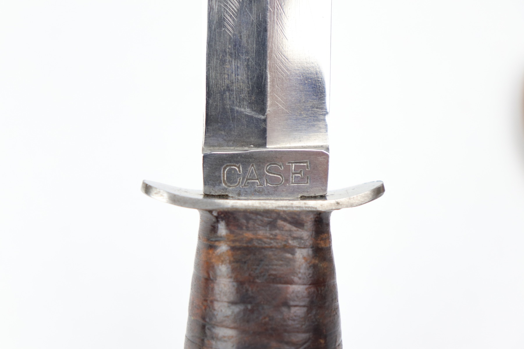 9/15/20 – This is a near mint, very scarce U.S. made Case Stiletto fighting knife. The blade is polished stainless steel which shows some signs of sheath wear. The sheath is original to the knife and stitched leather. These knives were favored by Allied commandos due to their light weight and slim profile.