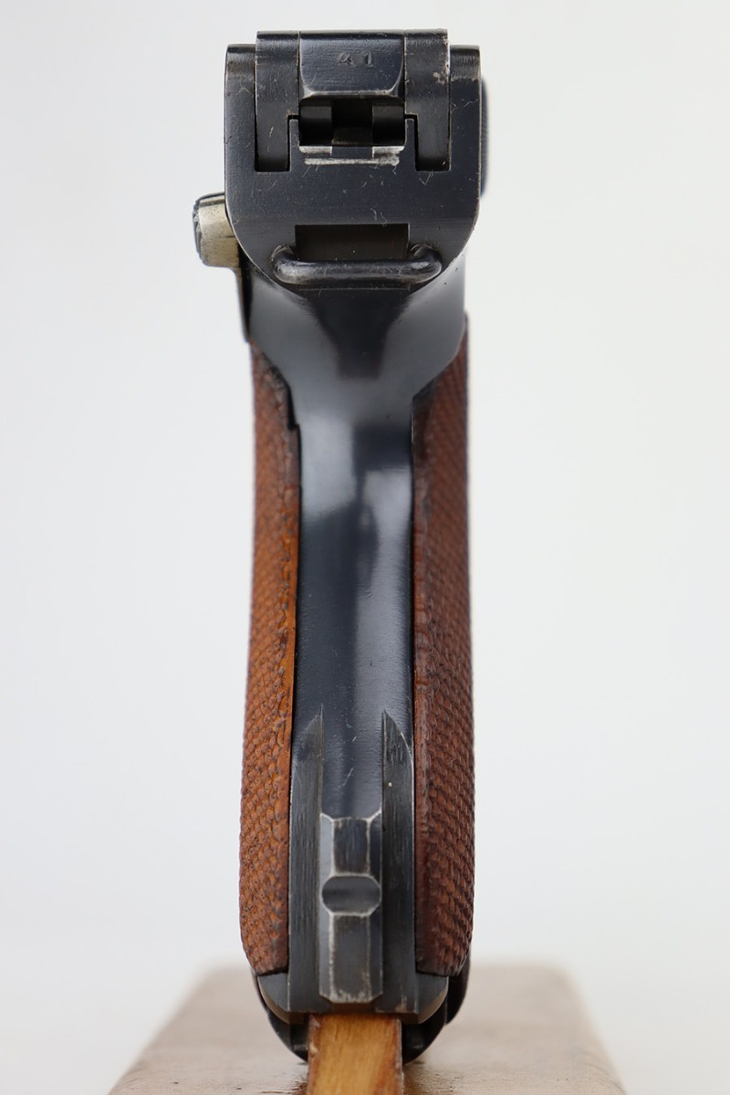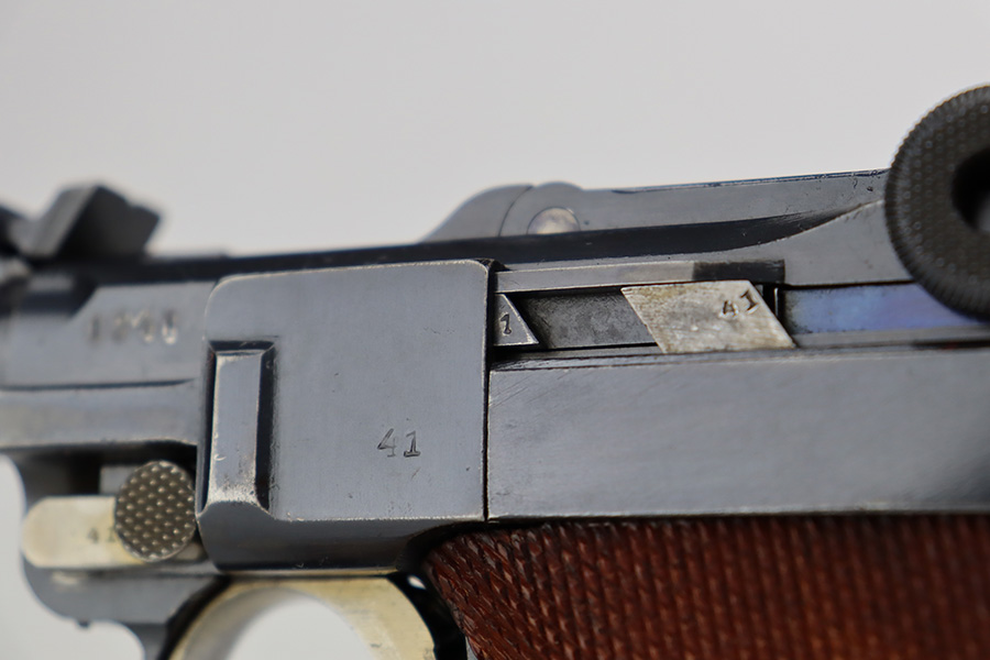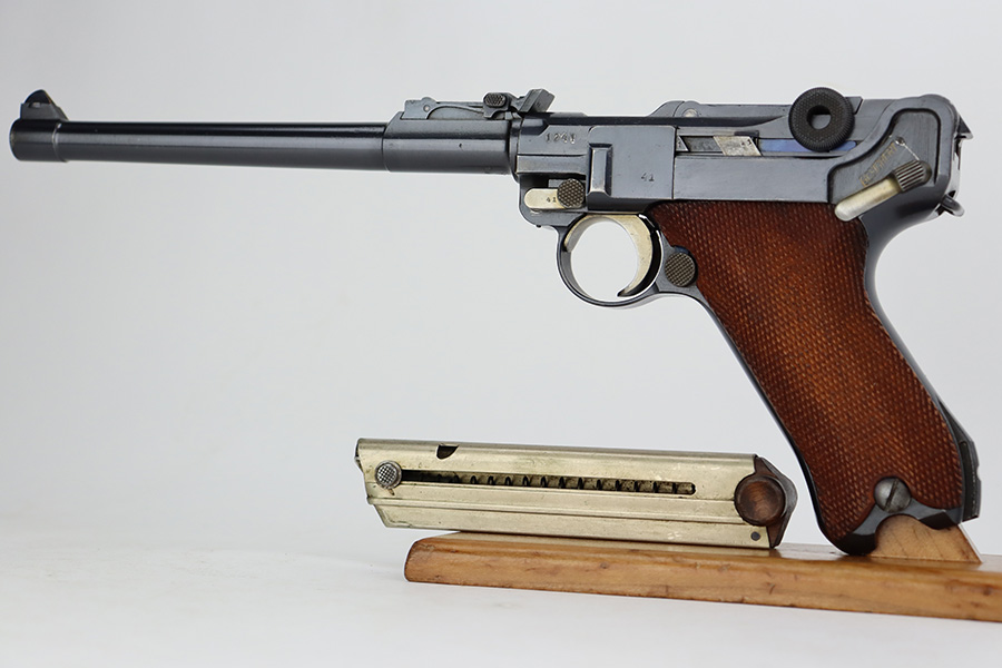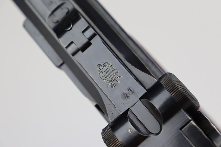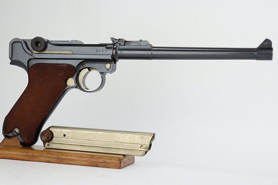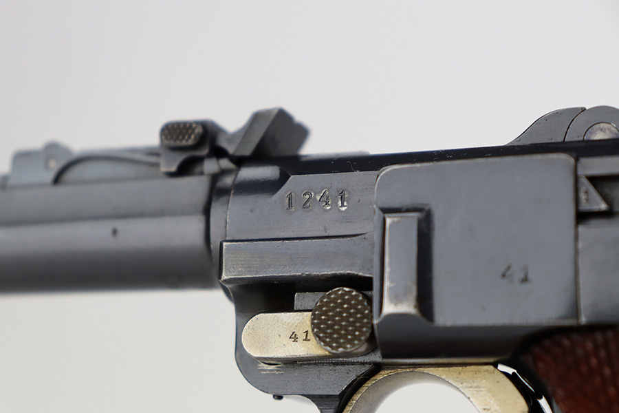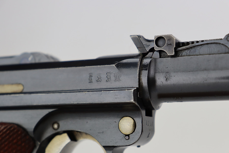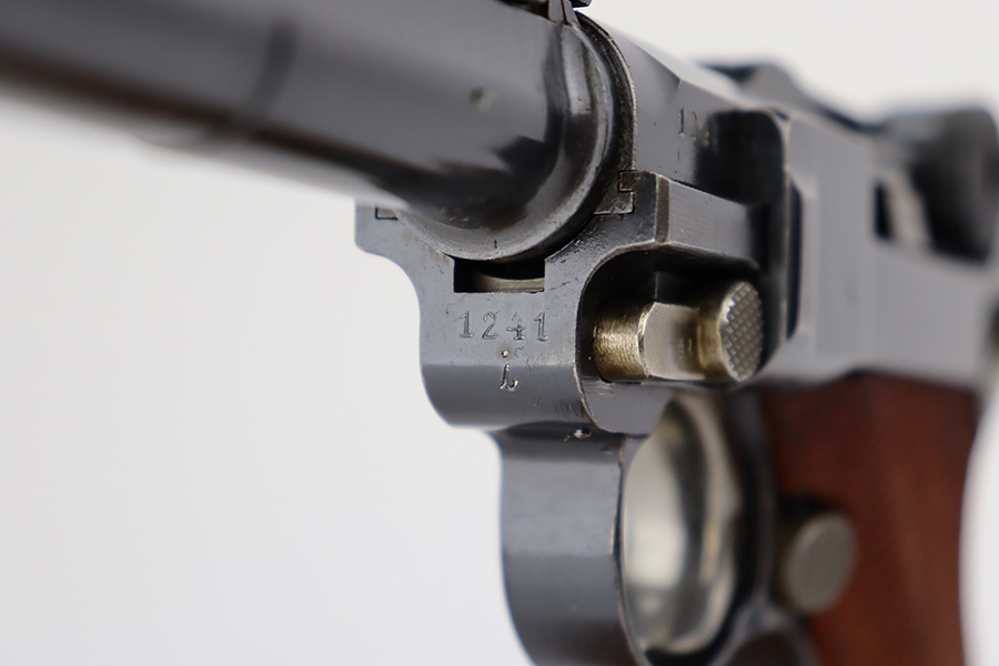 7/28/23 – This is a stunning example of a DWM Artillery Luger issued to the Imperial German military in 1917. All matching with the proper Imperial proofs. This gun is beautiful, retaining nearly all of its original finish. There are just hints of wear around the muzzle and on some of the high edges. Fitted with a mint set of mismatched grips. Comes with a mismatched but period-correct magazine. The bore has great rifling with very minor pin-pricking throughout.