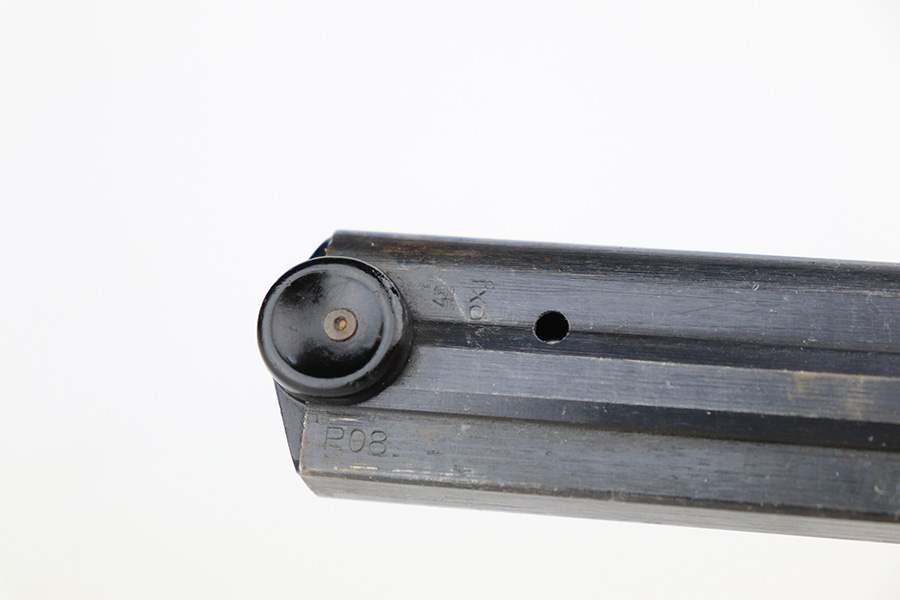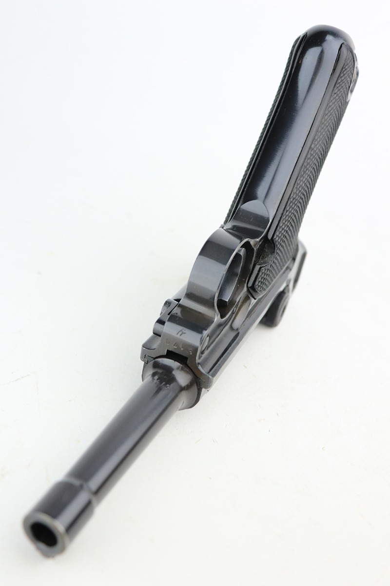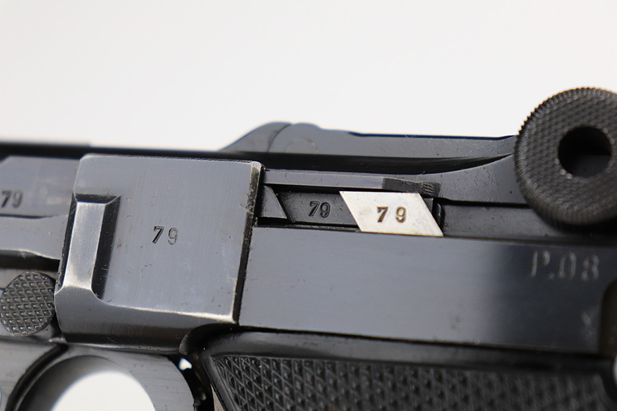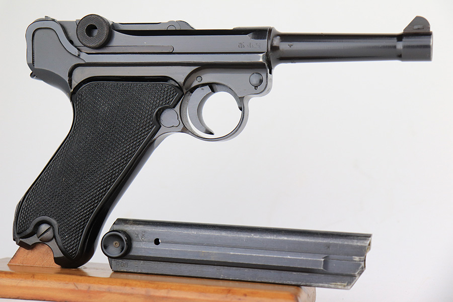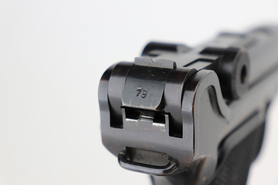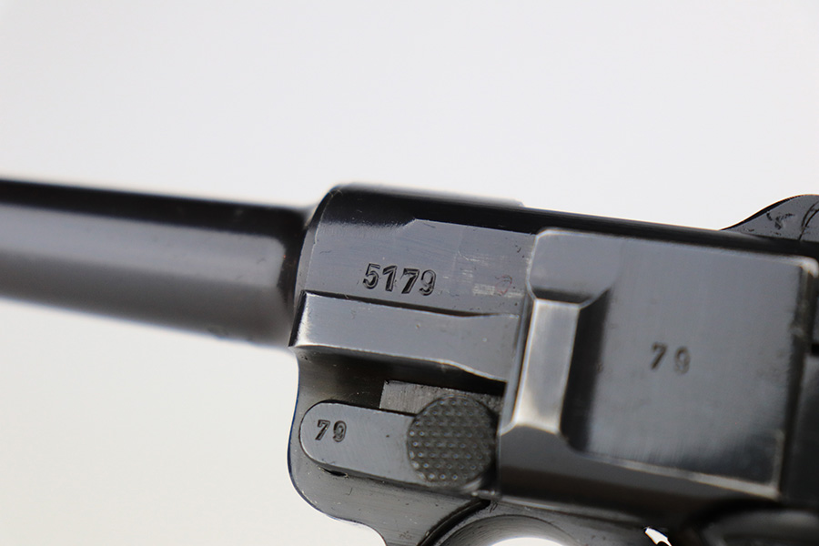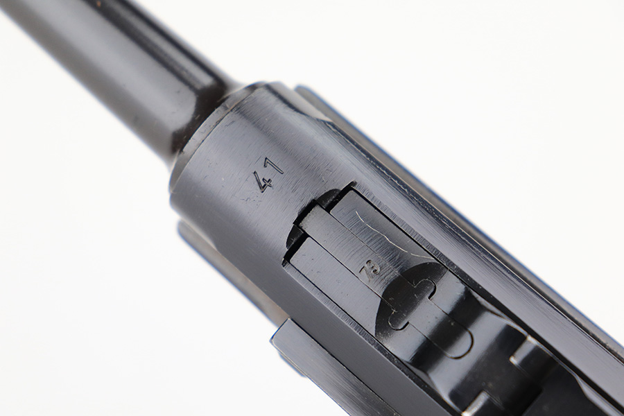 5/19/23 – This is a stunning example of a BYF 41 “Black Widow” Mauser Luger issued to the Nazi military in 1941. It is all matching, has the proper “Eagle 655” military acceptance proofs, and comes fitted with an excellent set of original “Black Widow” bakelite grips – excellent condition, no cracks or chips. Also comes with one original “Black Widow” magazine. The gun itself has retained nearly all of its original finish with just the slightest hints of wear on the side plate and around the muzzle. The bore is shiny with very strong rifling – just some very light freckling here and there.