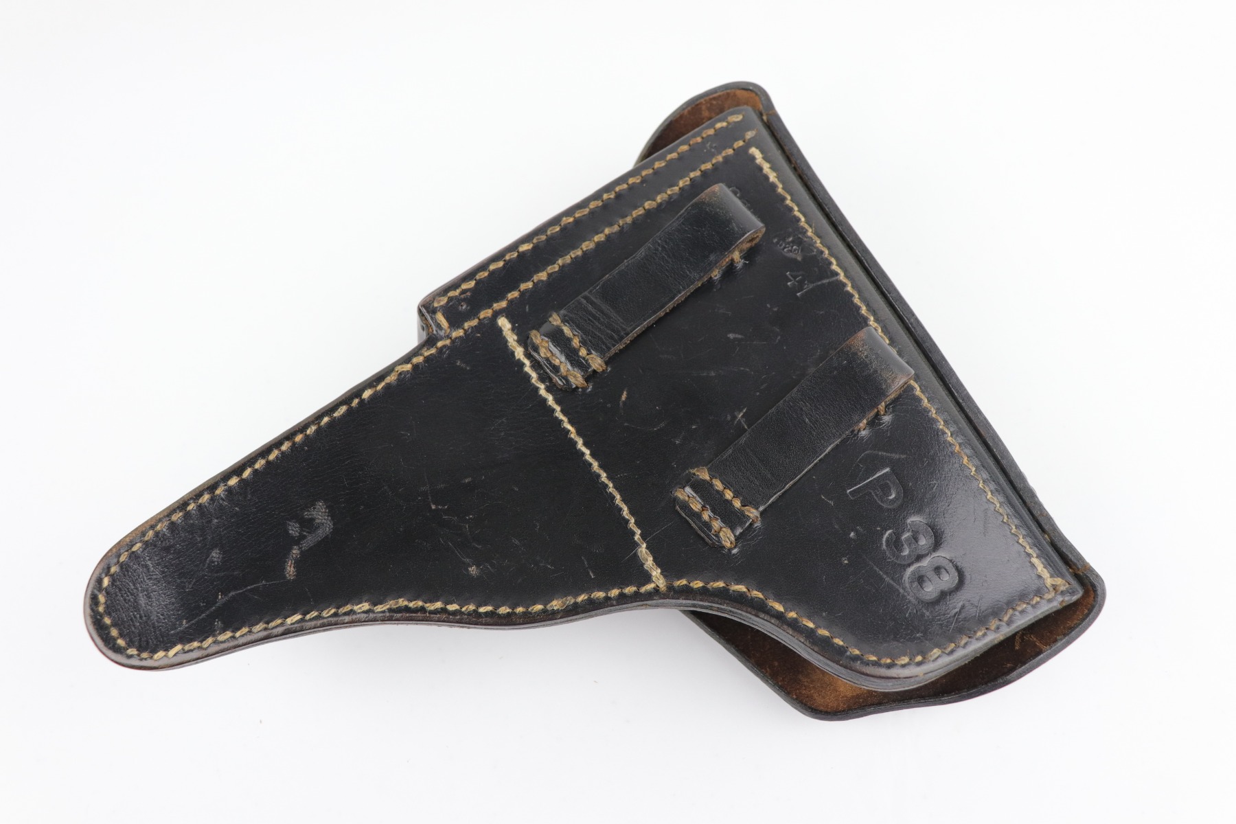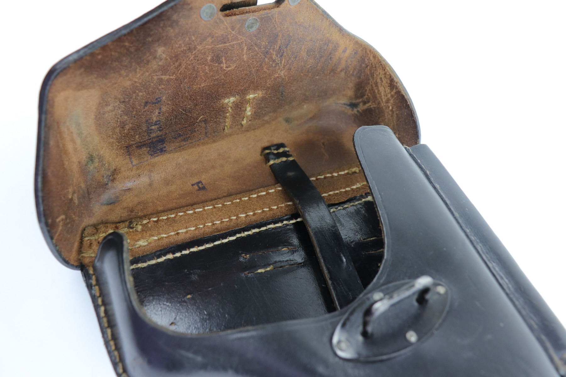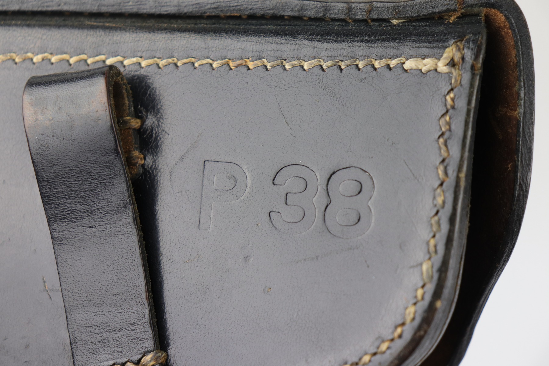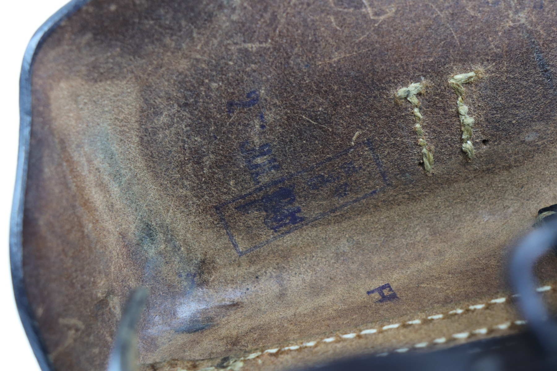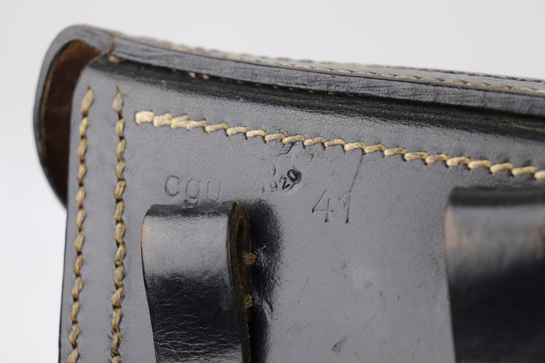 7/9/20 – This is a stunning, mint 1941 P.38 Holster. The leather is crispy and the stitching is completely in tact. Just a few minor handling marks here and there. This is one of the nicest we’ve ever offered! It is waffenamt and “cgu” makers marked. There is also a waffen ink stamp on the inside. It looks like it just left the factory in WW2.