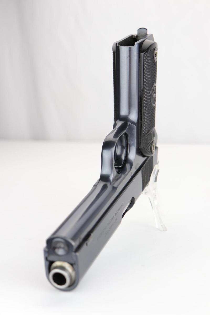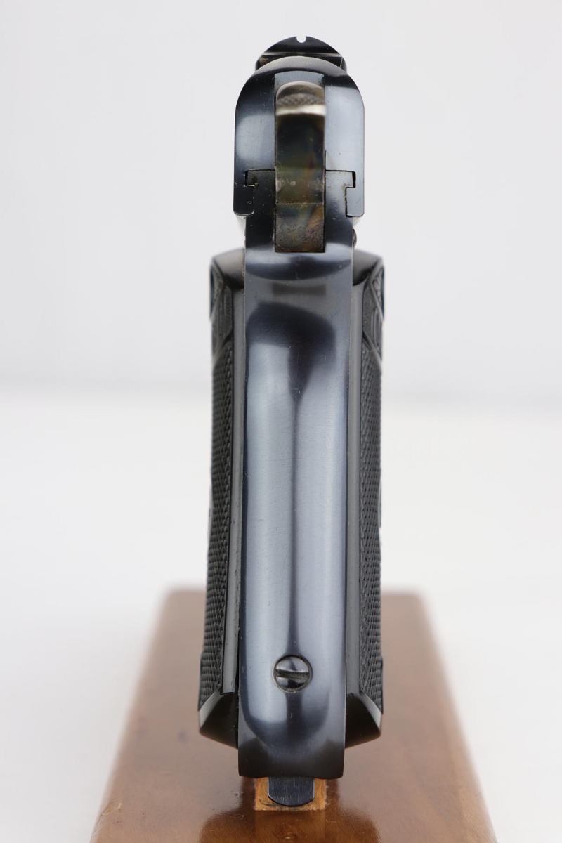 1/6/20 – This is an absolutely stunning example of an original Colt Model 1903 Pocket Hammer, manufactured in 1919 and chambered for .38 ACP. There were only about 31,000 of this model produced, and this example is one of the finest you’ll encounter. It has 99% of the original Colt blue, with just a minor hint of wear along the top of the slide, near the muzzle. Otherwise, hardly another spot on the gun. Fantastic bore and grips. Hammer still has nice case hardening on it. Blued magazine is marked ‘CAL .38 COLT’ on the bottom.