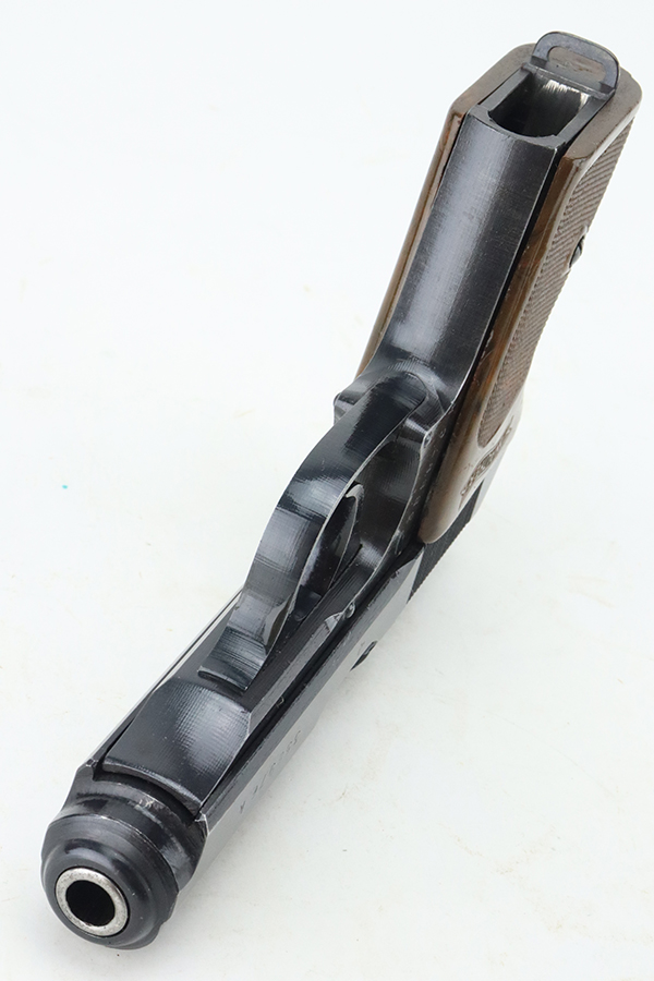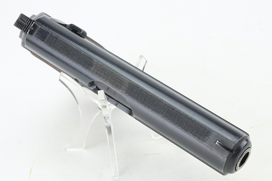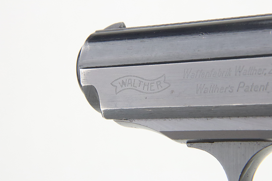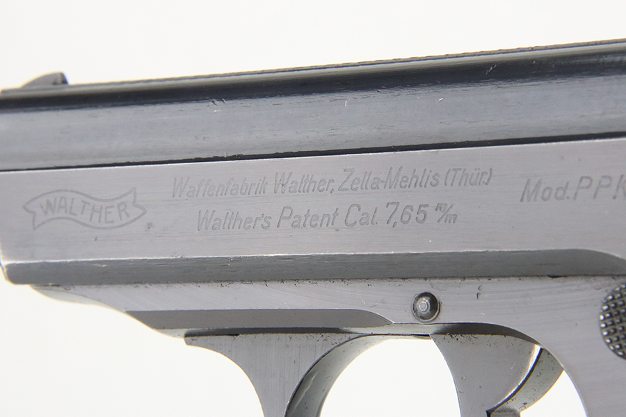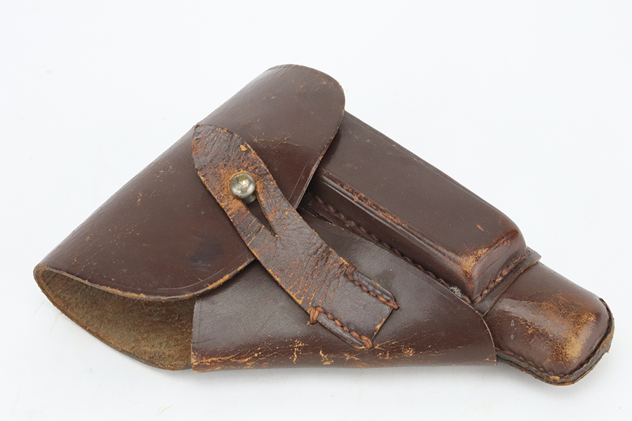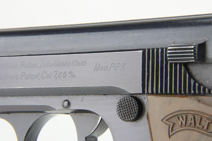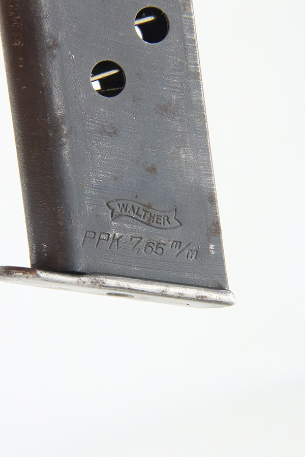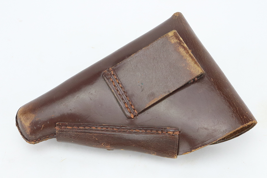 4/5/24 – This is a stunning example of a Walther PPK sold in the commercial market in 1942. All matching and “Eagle N” proofed. It comes as a rig with a brown leather holster (“PPK” ink stamp on the inside), a finger extension magazine, and one flat-bottom magazine. The gun has retained nearly all of its original wartime finish with just a hint of muzzle wear. Fitted with an excellent brown grip. Stone-mint bore.