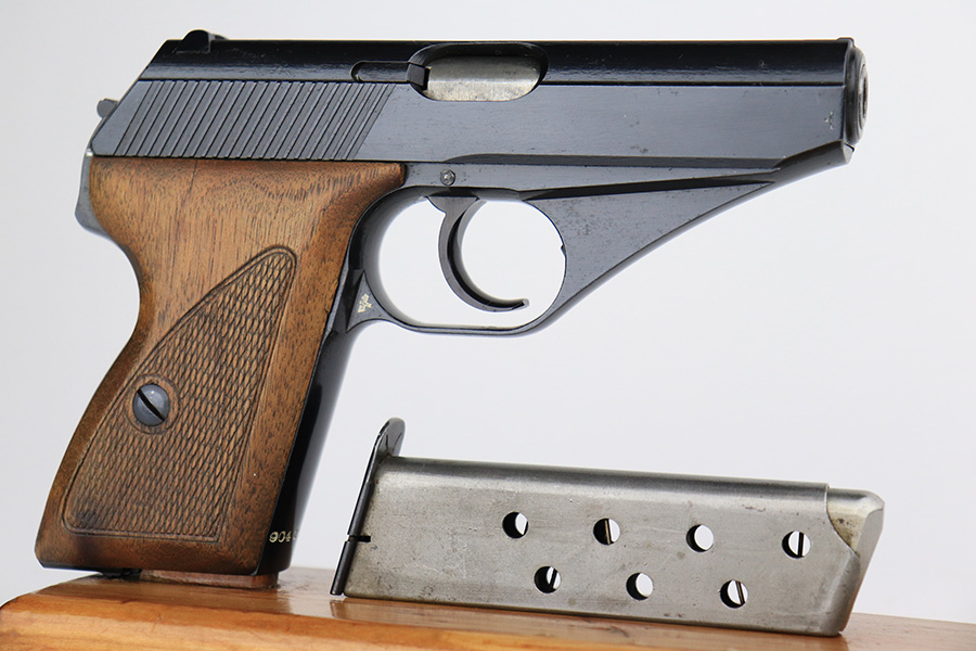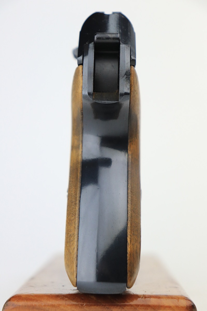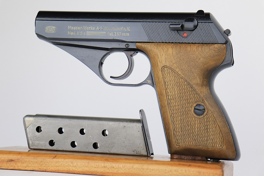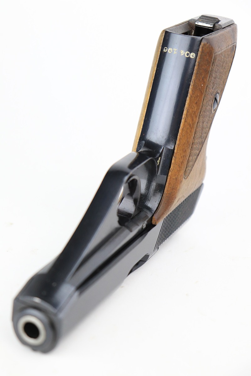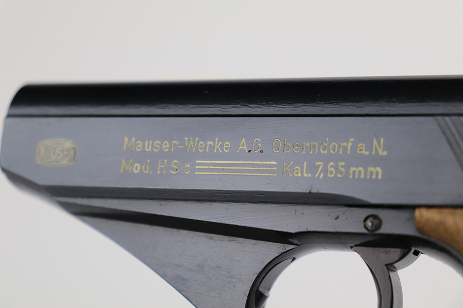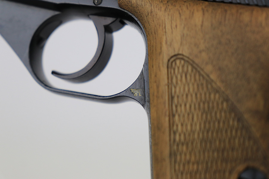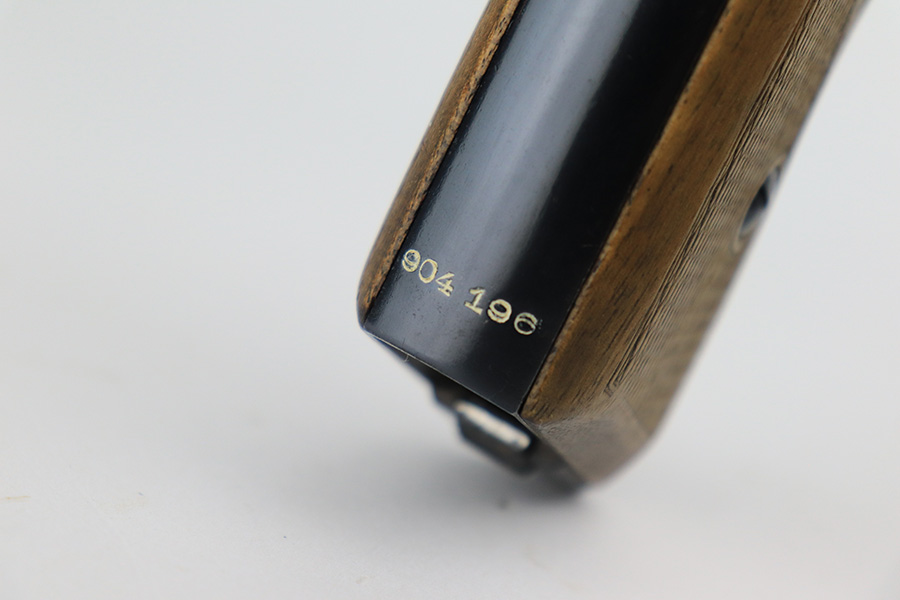 9/25/23 – This is a stunning example of a Mauser HSC issued to the Nazi police force in 1944. It is all matching and has the proper police “Eagle L” proof on the trigger guard. The gun has retained all of its bluing with no signs of finish loss. Fitted with an excellent set of period-correct wood grips. Comes with a Mauser banner magazine. Mint bore.
