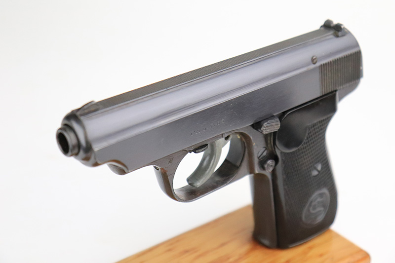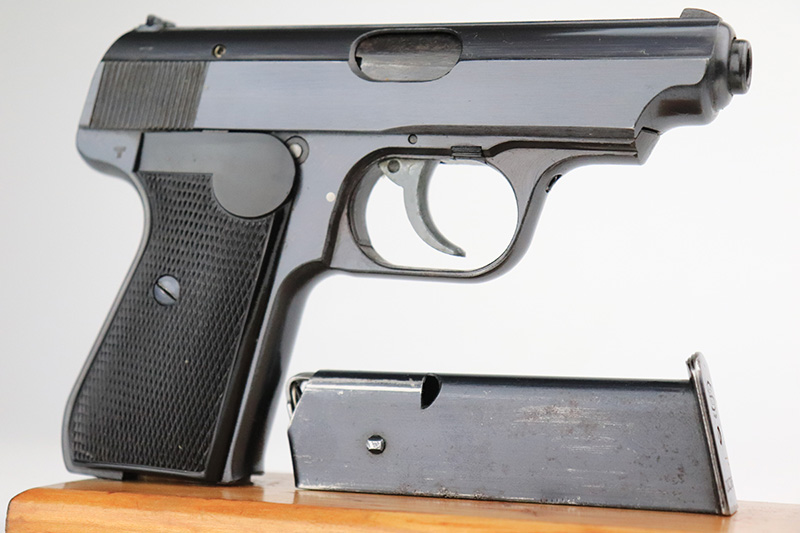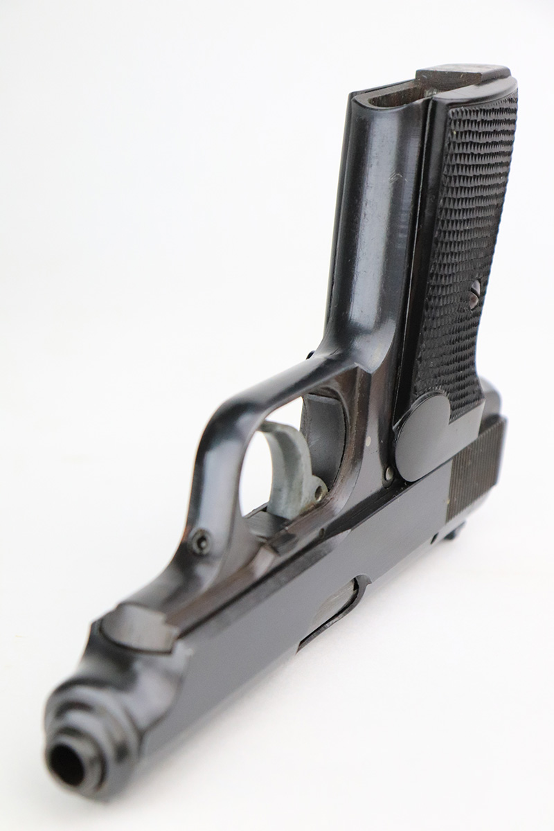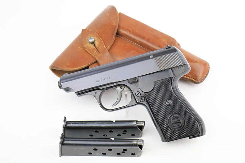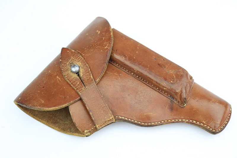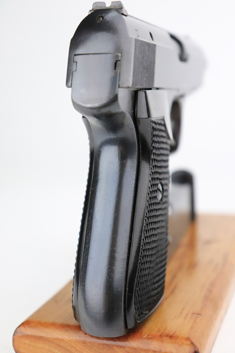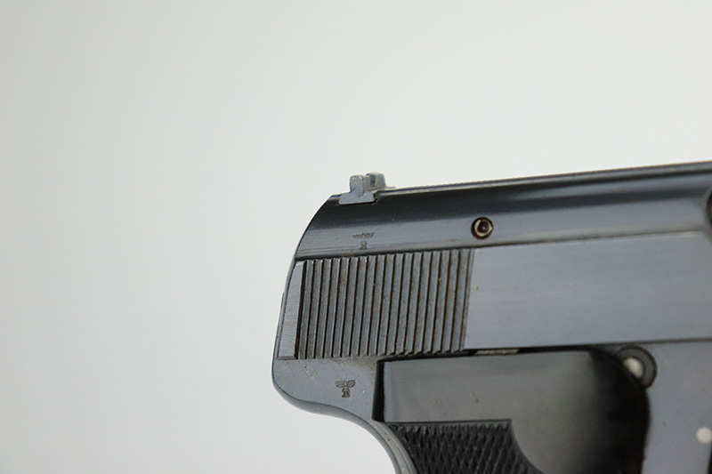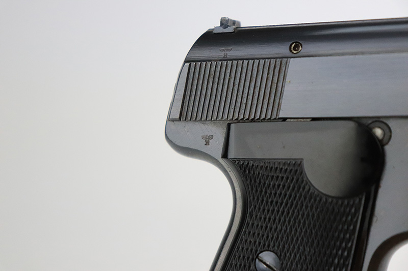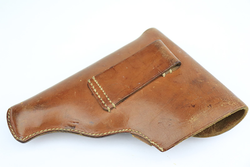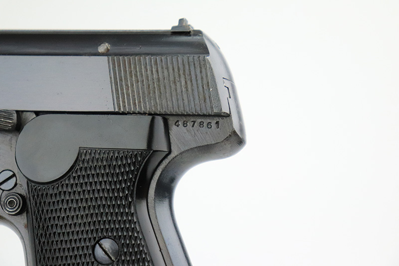 9/27/22 – This is just a stunning example of a Sauer 38h issued to the Nazi military during WW2. It is all matching and has the proper “Eagle 37” Nazi military acceptance proof on the left side of the trigger guard. It comes as a rig with two period-correct magazines and a very nice generic tan leather holster. The gun is gorgeous, retaining essentially all of its original bluing. There is just a hint of freckling at the back right of the slide. Comes with minty black bakelite grips. The bore is like-new.