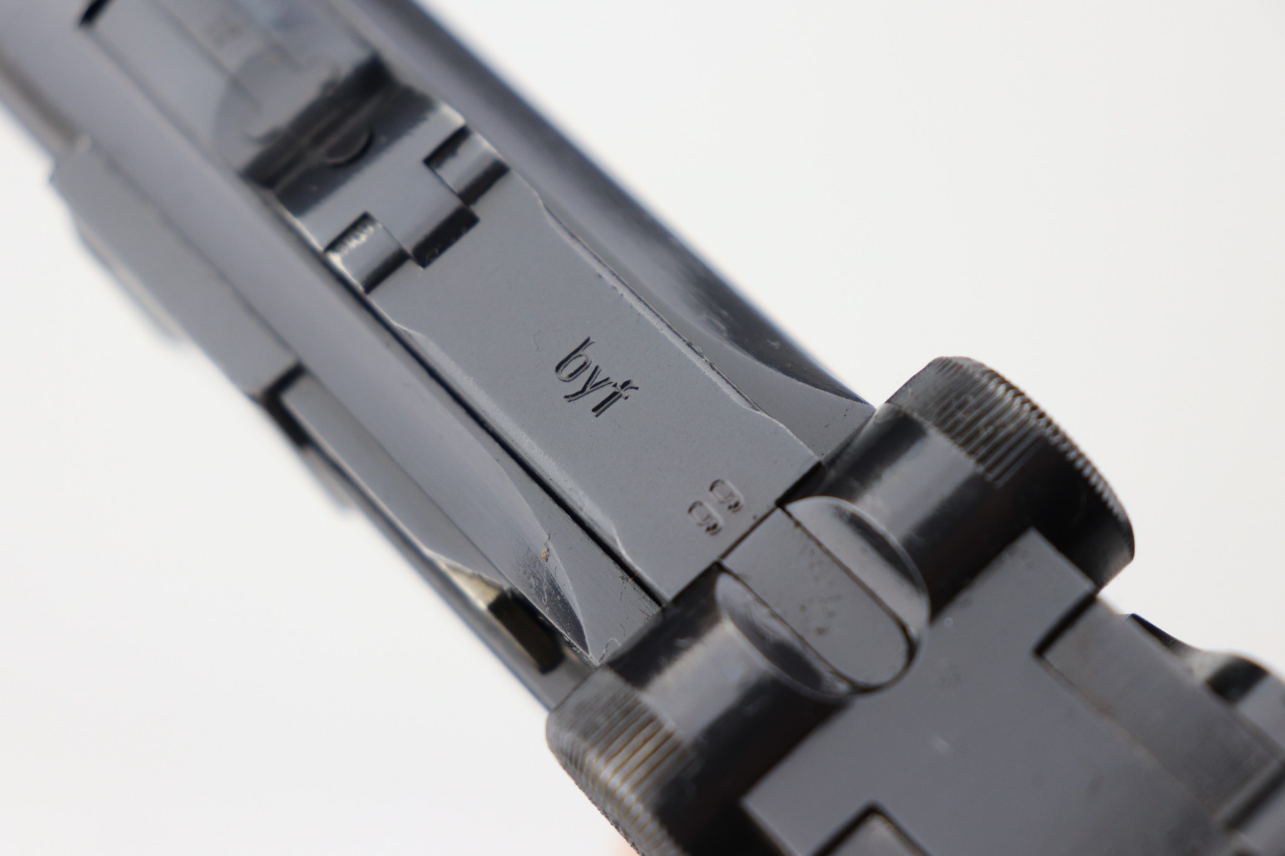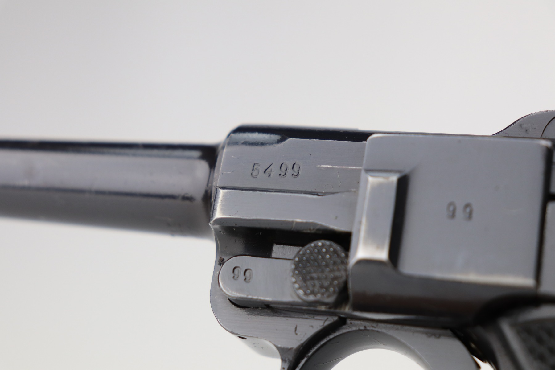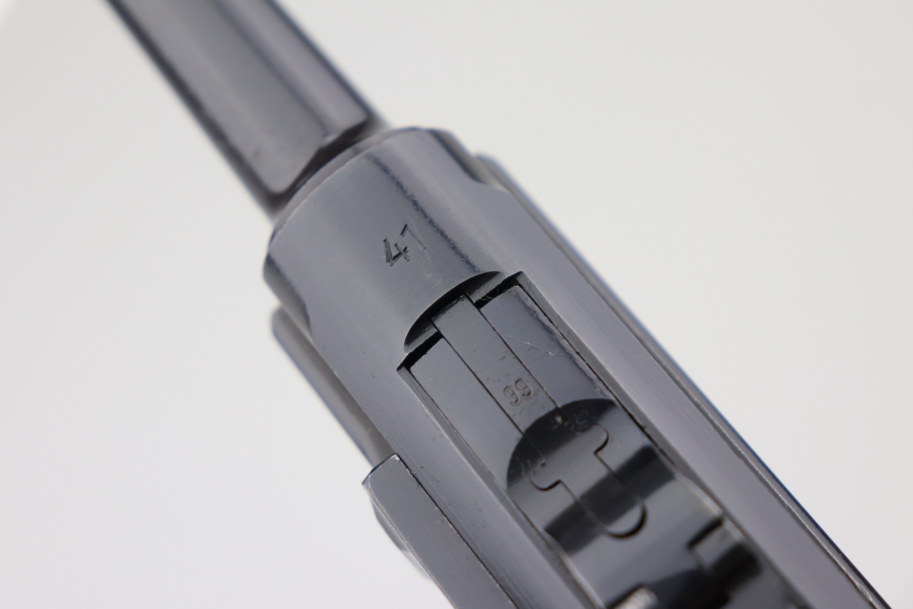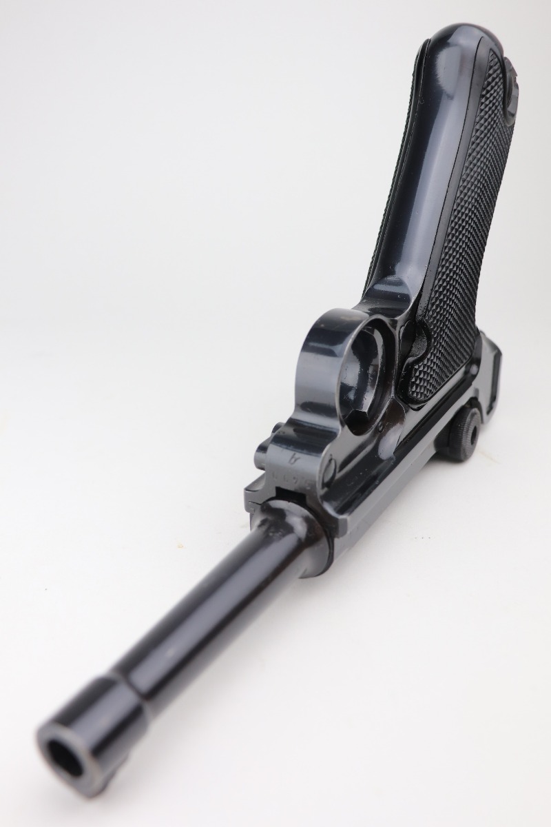 2/25/21 – This is a minty example of a Black Widow Mauser Luger issued to the Nazi military in 1941. It is all matching and has the proper “Eagle 655” military proofs. It has retained about 98% of its original bluing. There is very minor wear on the side plate and a few light handling marks on the barrel. One small dot of discoloration on the underside of the trigger guard. Just a stunning example. It comes with excellent black widow grips and one black widow magazine. The bore is near-mint.