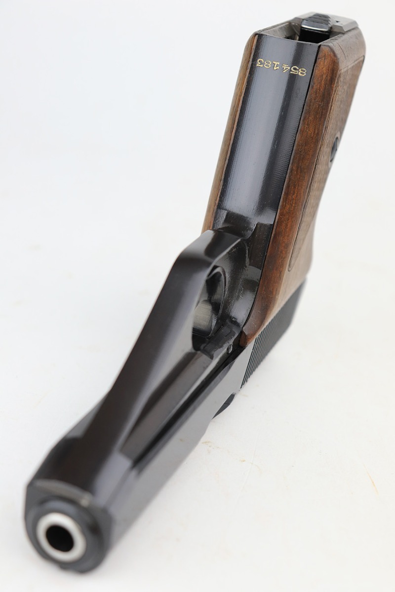 4/4/23 – This is a stunning Mauser HSc issued to Nazi military in 1943. It is all matching and has the proper “Eagle 135” proofs. This gun is exceptional shape, with no signs of wear or use. Comes with excellent period-correct wood grips and one half moon magazine. Stone mint bore.