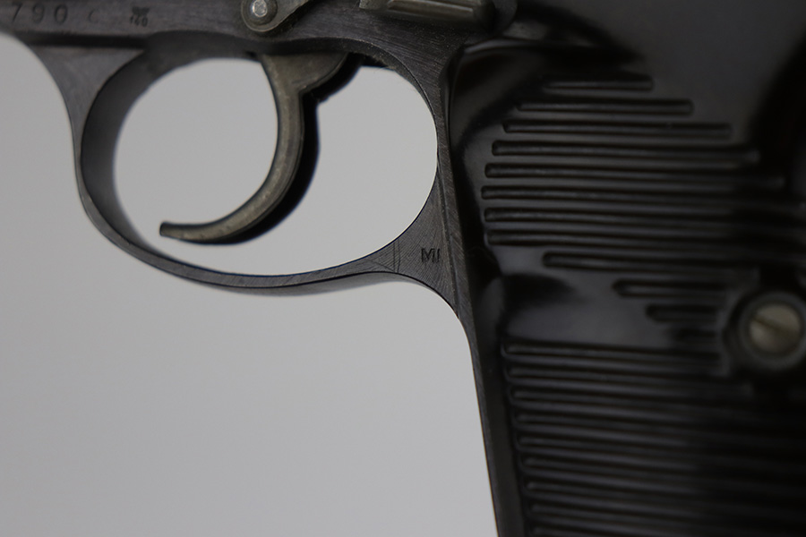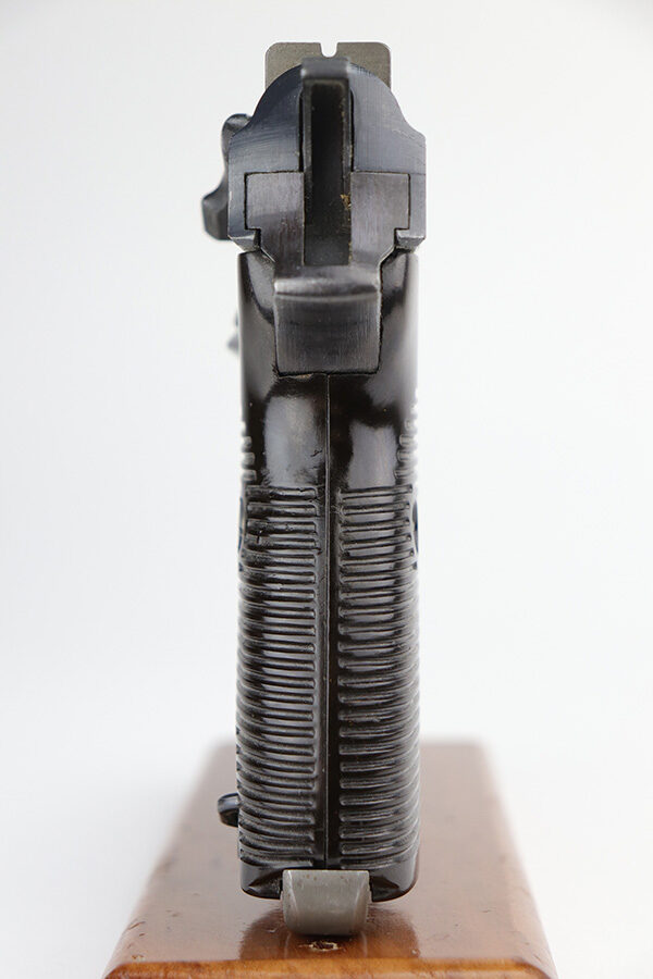 9/14/21 – This is a stunning example of a Walther P.38 made at the very end of WW2, in 1945. It is all matching and only has one “Eagle 359” military proof on the right side of the slide, indicating that it was never actually issued to the military before the Walther factory was liberated. The left side of the frame has an “Eagle 140” proof, indicating that this gun has a rare FN-made frame. It has proper late-war features such as phosphate small parts and a cog-style hammer. The magazine even has a phosphate mag bottom and follower. Just a beautiful example of an end-of-war gun. It has retained virtually all of its original finish with very light handling marks here and there. The bore is stone-mint – looks like it just left the factory. De-cocker is functional.