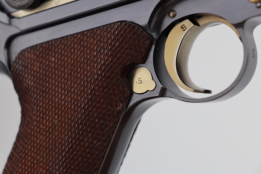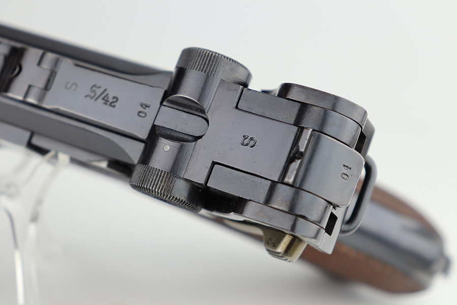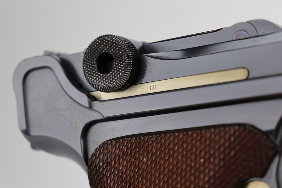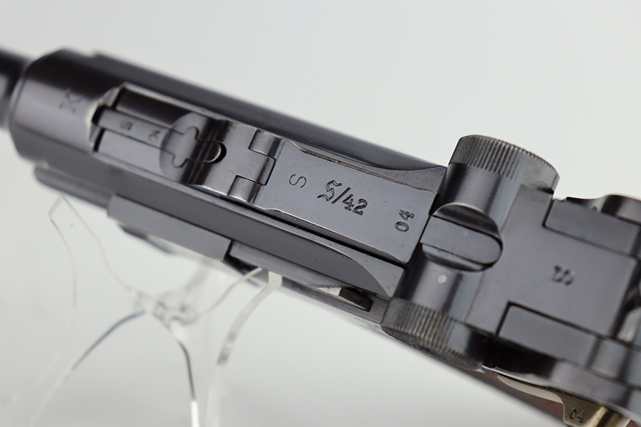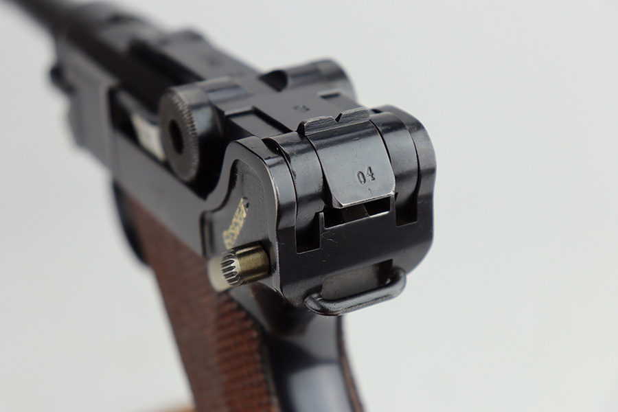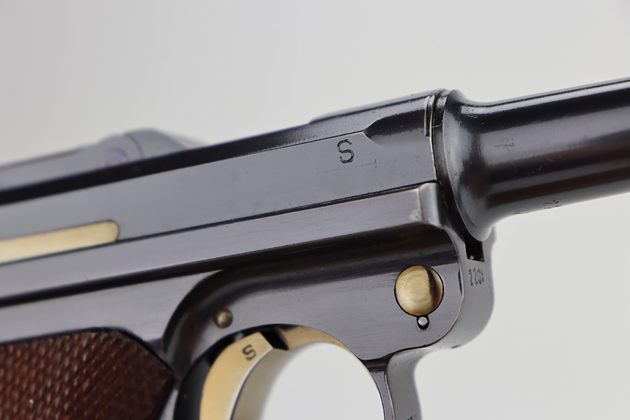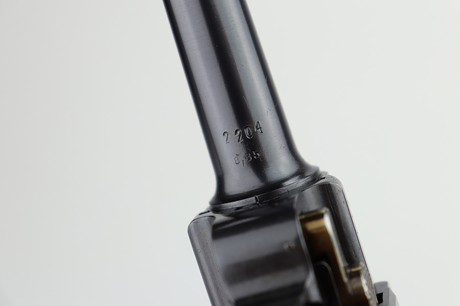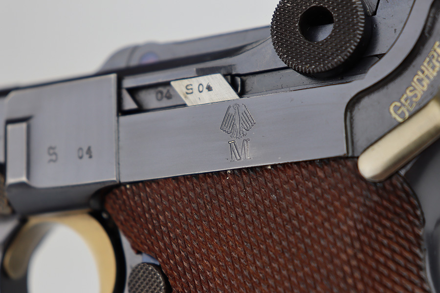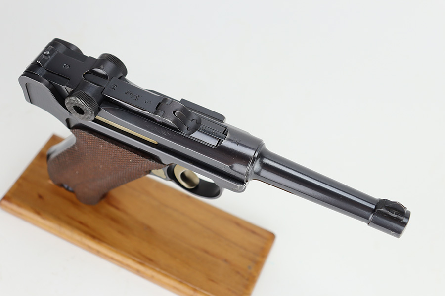 12/5/23 – This is a stunning example of an extremely rare “K Date” Navy Luger from 1934. It is all matching, has a Navy “Eagle M” marking on the left side of the frame, and has an “O.1960” property mark on the front strap. This entire gun has been beautifully and expertly restored by Gale Morgan. The finish is stunning with virtually no signs of wear or use. Fitted with minty un-numbered wood grips and comes with a blank-bottom magazine. The bore has good rifling with very light pin-pricking throughout.