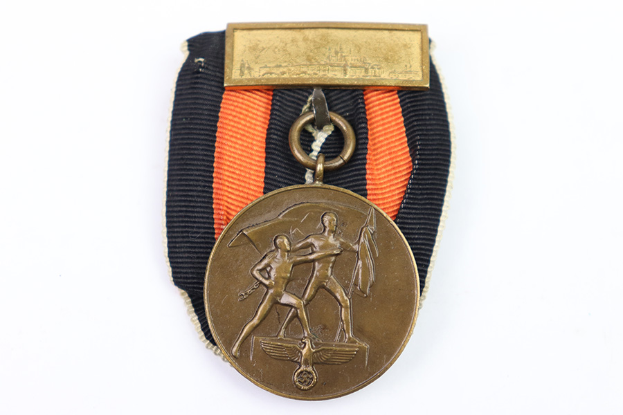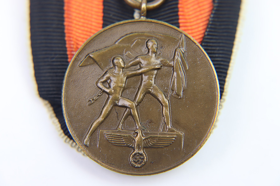 8/30/22 – This is an original WW2 parade-mounted Sudetenland medal. The medal comes with an attached Prague bar as shown. Great condition with some mild signs of aging but no significant issues. See photos.