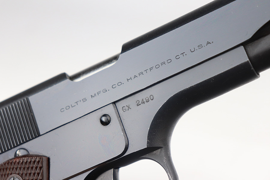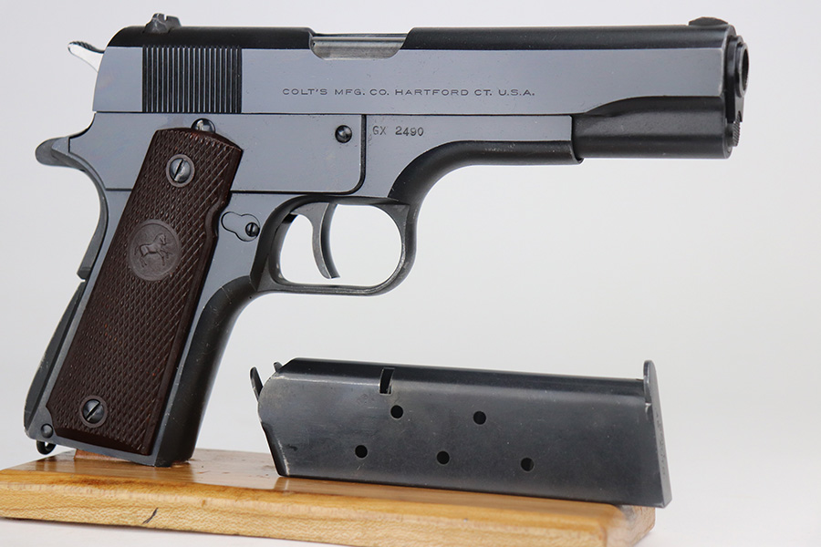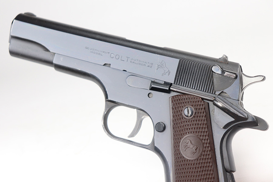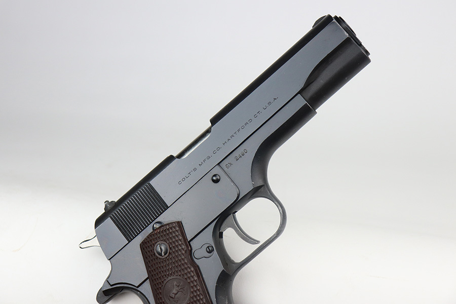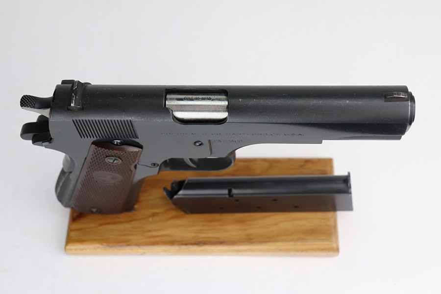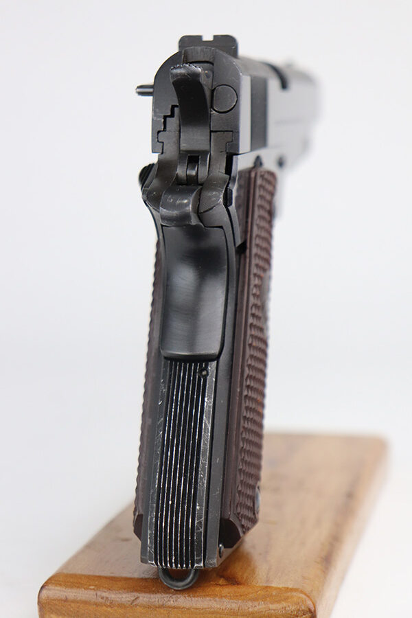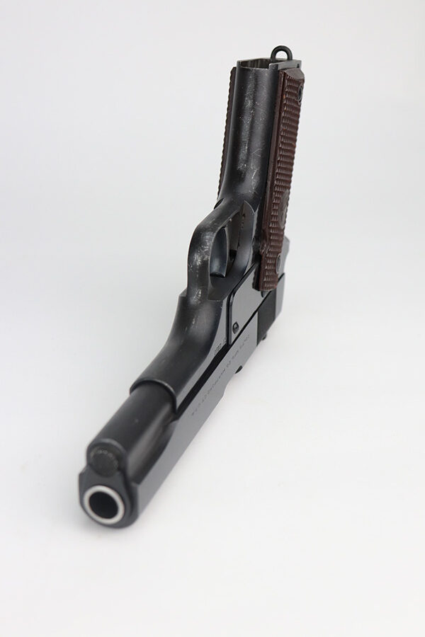 7/19/21 – This is a minty example of a fascinating and super rare variation of Colt’s Model 1911. Following WW2, Colt responded to military requests and experimented with altering the original Colt 1911 design to make it operate in double-action. We have other provenance on these guns, but they are super rare. From the style of markings and the grips. We believe this one was manufactured around the 1950’s. It has retained about 98% of its finish with minor scuffs on the underside of the frame and on the front strap. There are tiny scratches here and there throughout. There is a more noticeable scratch on the the left side of the slide. Comes with excellent grips and a proper magazine. Mint bore. This exact pistol was featured by Ian McCollum at Forgotten weapons in one of his YouTube videos. To learn more, click the link below to watch the full video.