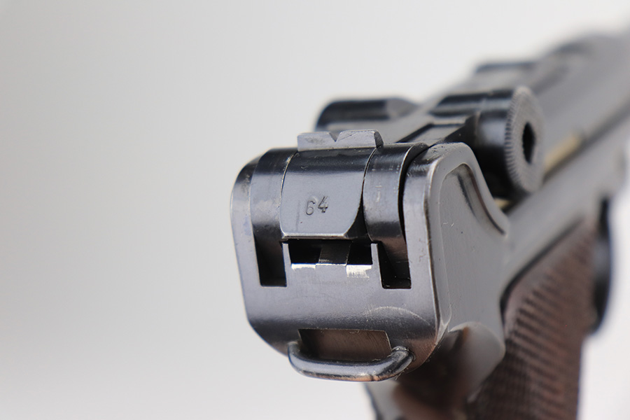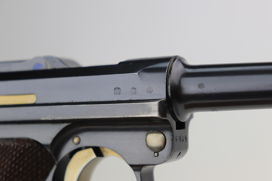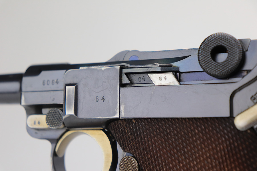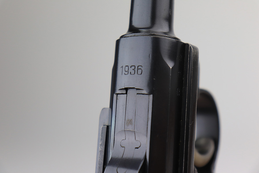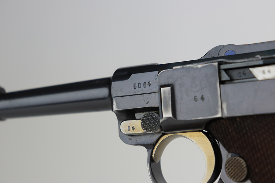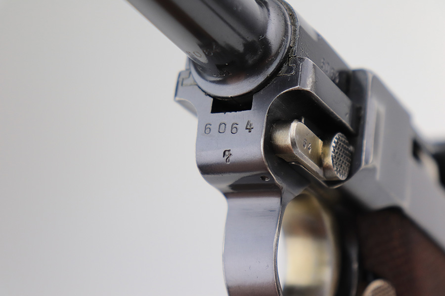 3/18/22 – This is an extremely rare Nazi Mauser Luger from 1936 that was part of a fulfilled military contract that was diverted to the police. It is estimated that only 200 such examples were produced, with only 4 reported as known/documented in Third Reich Lugers! This one is all matching and original, including the magazine. The magazine is numbered in the police style with Haenel manufacturer’s mark. It’s in great condition with minor wear on the grip straps, sideplate and right side rail. Excellent straw remains on the small parts. Bore is shiny with strong rifling, just has a little frost in the grooves. Excellent unmarked grips with sharp checkering.