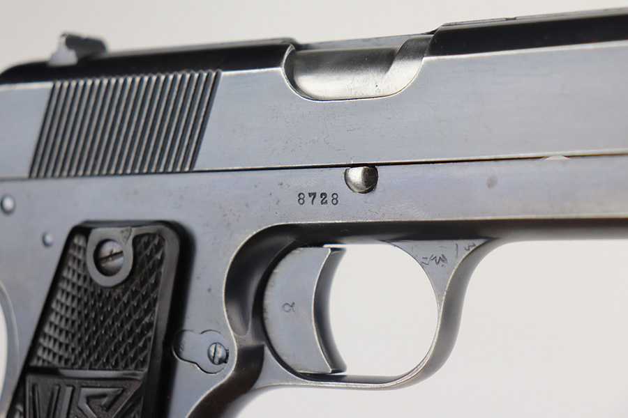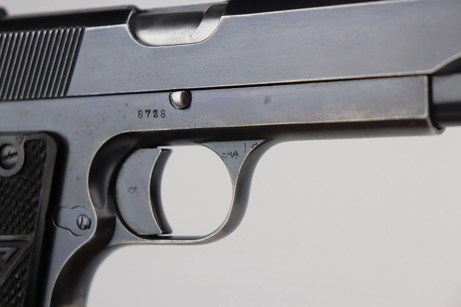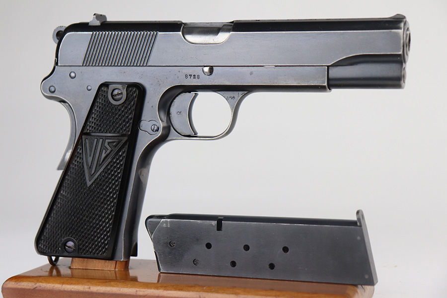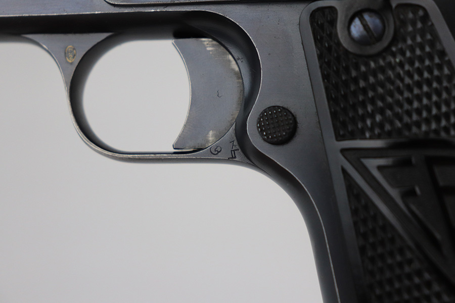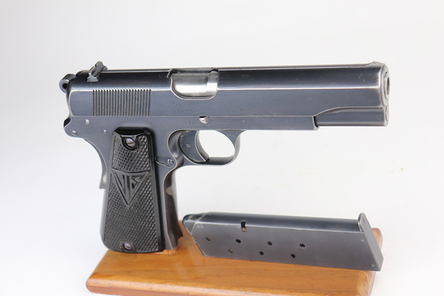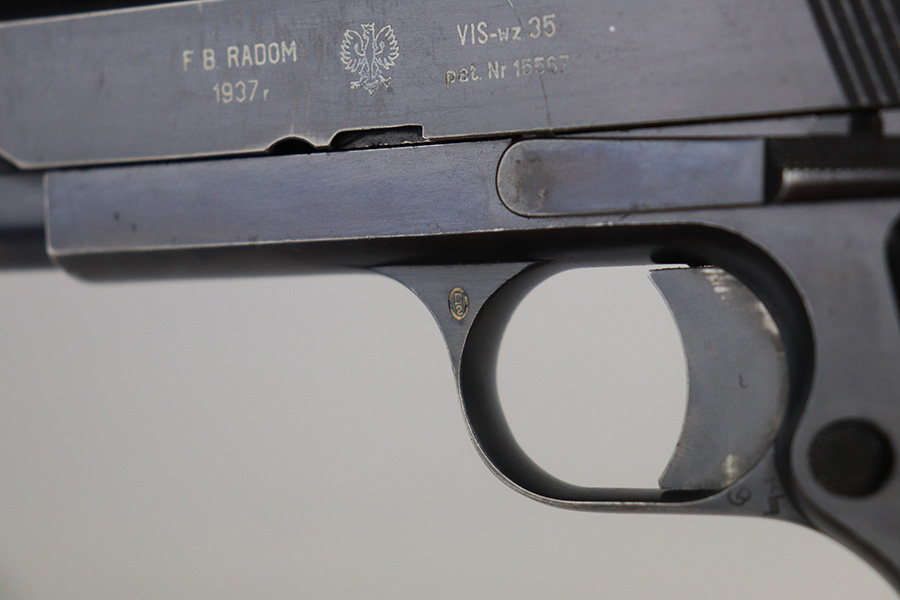 6/25/21 – This is one of the most requested and desirable Axis-era pistol variations, the Polish Eagle Radom VIS P.35 with 1937 manufacture date. It’s the most rare of the Polish Eagle variants with only 3,300 produced. This one is all matching and original throughout, with about 90% of the original blue remaining. Patches of finish loss on the grip safety, front strap, trigger guard and underside of frame. Also a small scratch on the slide from improper reassembly. Strong bore with minor frost throughout. Excellent black plastic grips. Rare, correct magazine with G2 proof on toe.