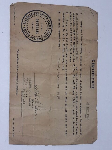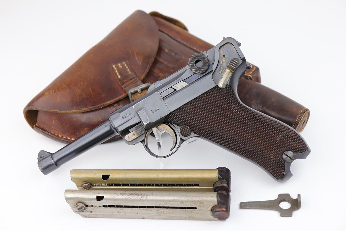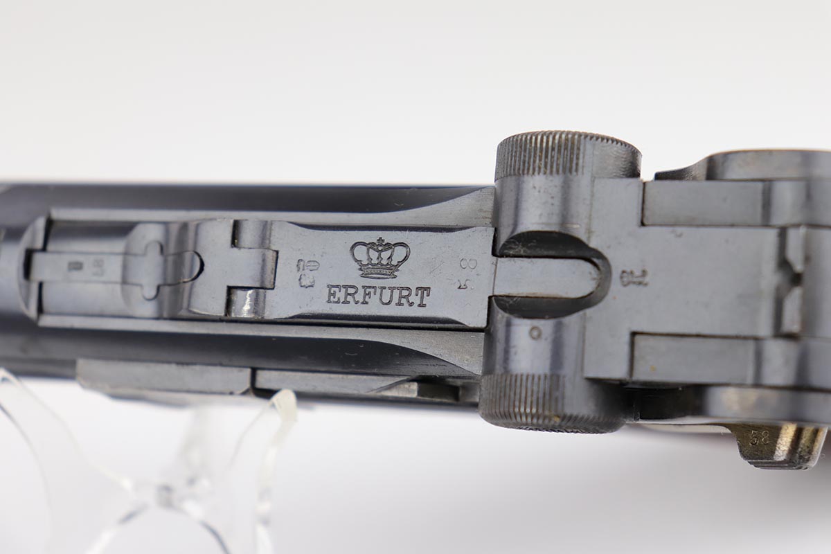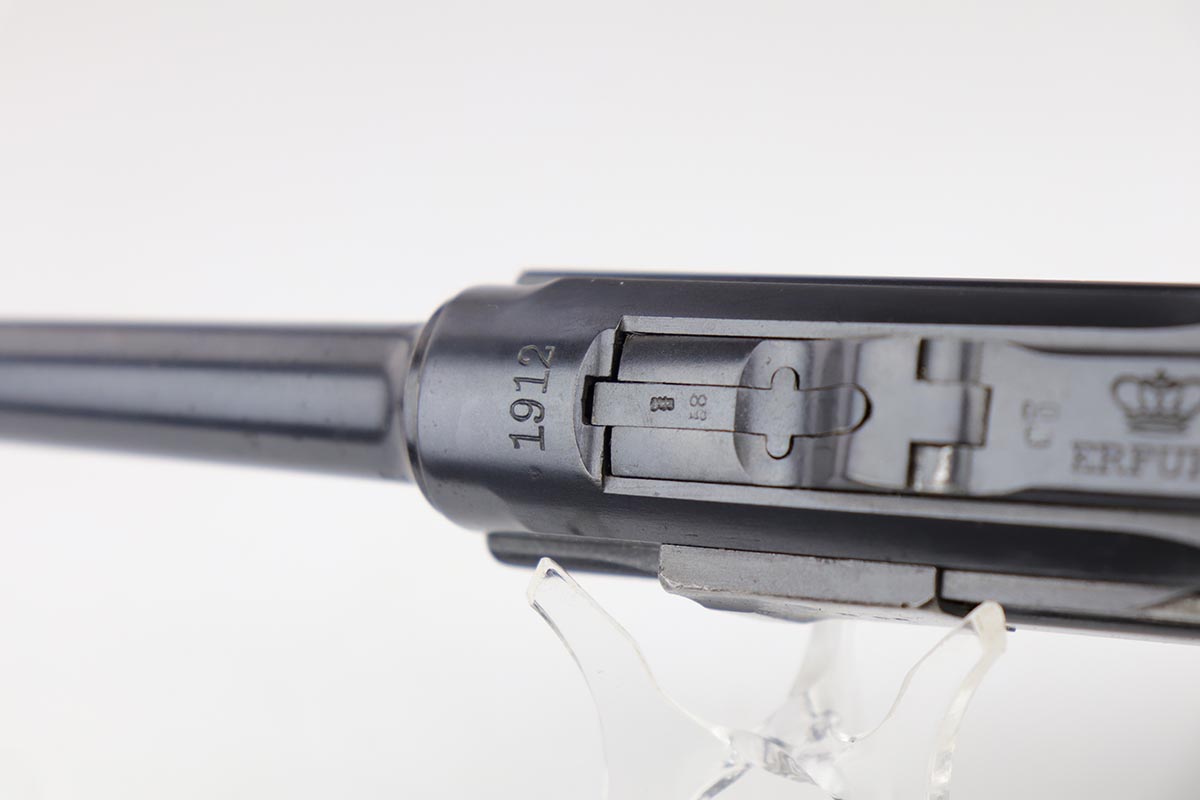 SOLD – Superb 1912 Erfurt Luger Rig – Unit Marked, Capture Papers