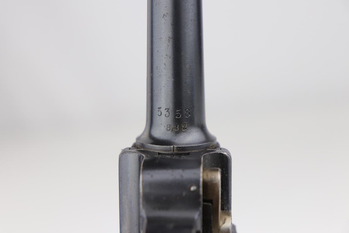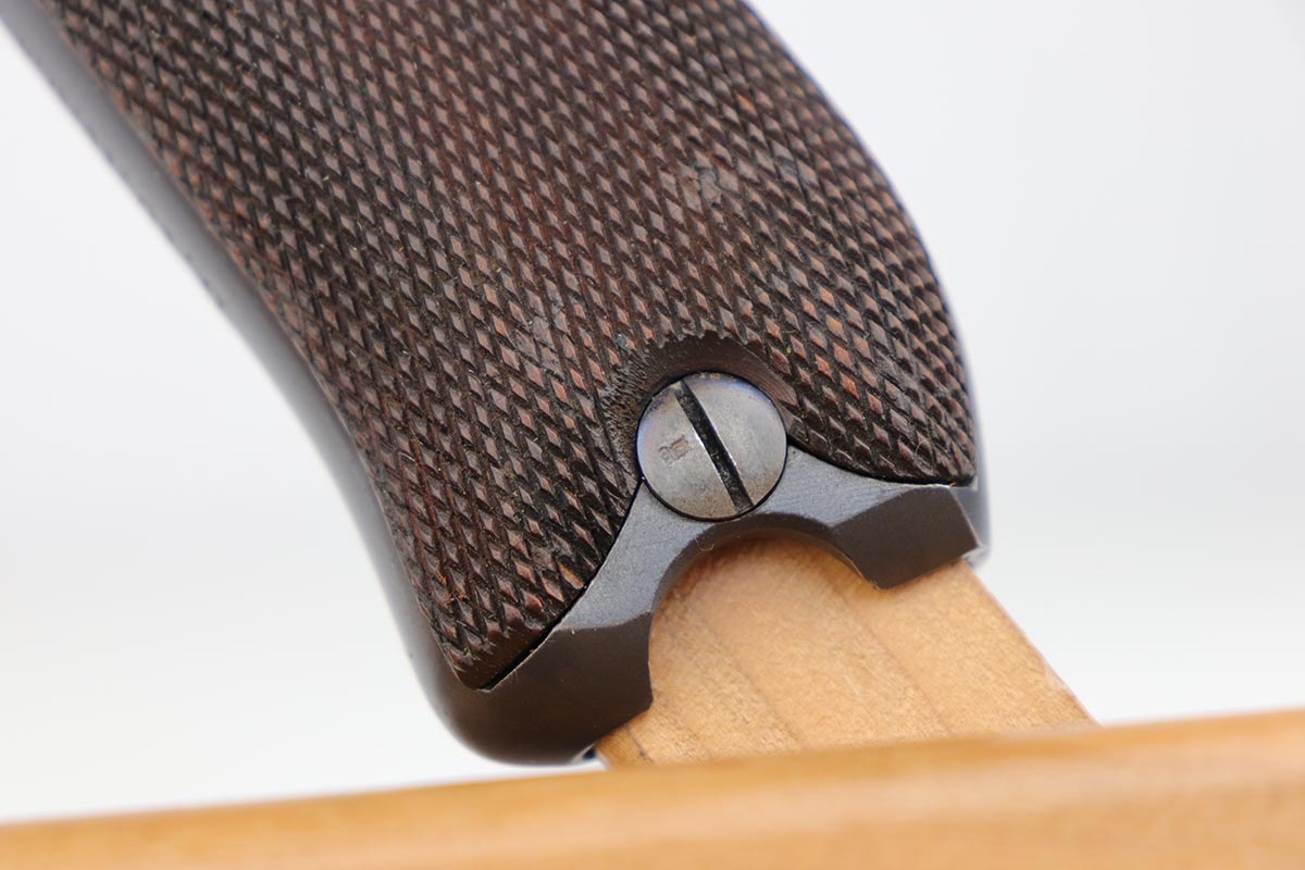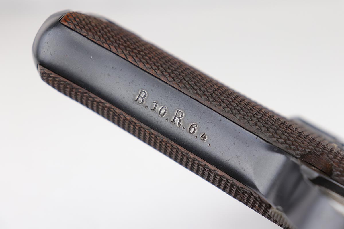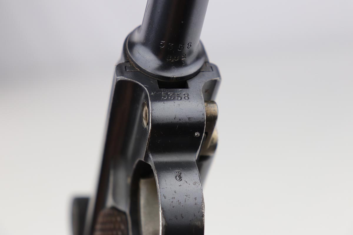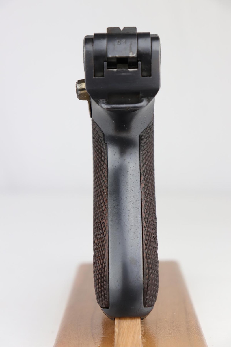 7/11/19 – This is an exceptional 1912 dated Erfurt made luger in 96-97% original condition, all matching with one matching mag and a rare Reichsrevolver conversion holster. The gun is all original and shows just a touch of holster wear on the high points with some minimal spotting on the grip straps. It is all matching, including one magazine and is unit marked to a Bavarian Infantry regiment on the front grip strap. Excellent grips and bore. All the markings and Imperial proofs and acceptance marks are sharp. The holster is a rarely seen Reichsrevolver conversion in fantastic condition, dated 1910 and unit marked as well. The extra magazine is not matching to the gun but is correct for the era. Finally, the rig comes with capture papers, making it ever more desirable collector piece. This early pre-WWI Luger would be very difficult to upgrade.