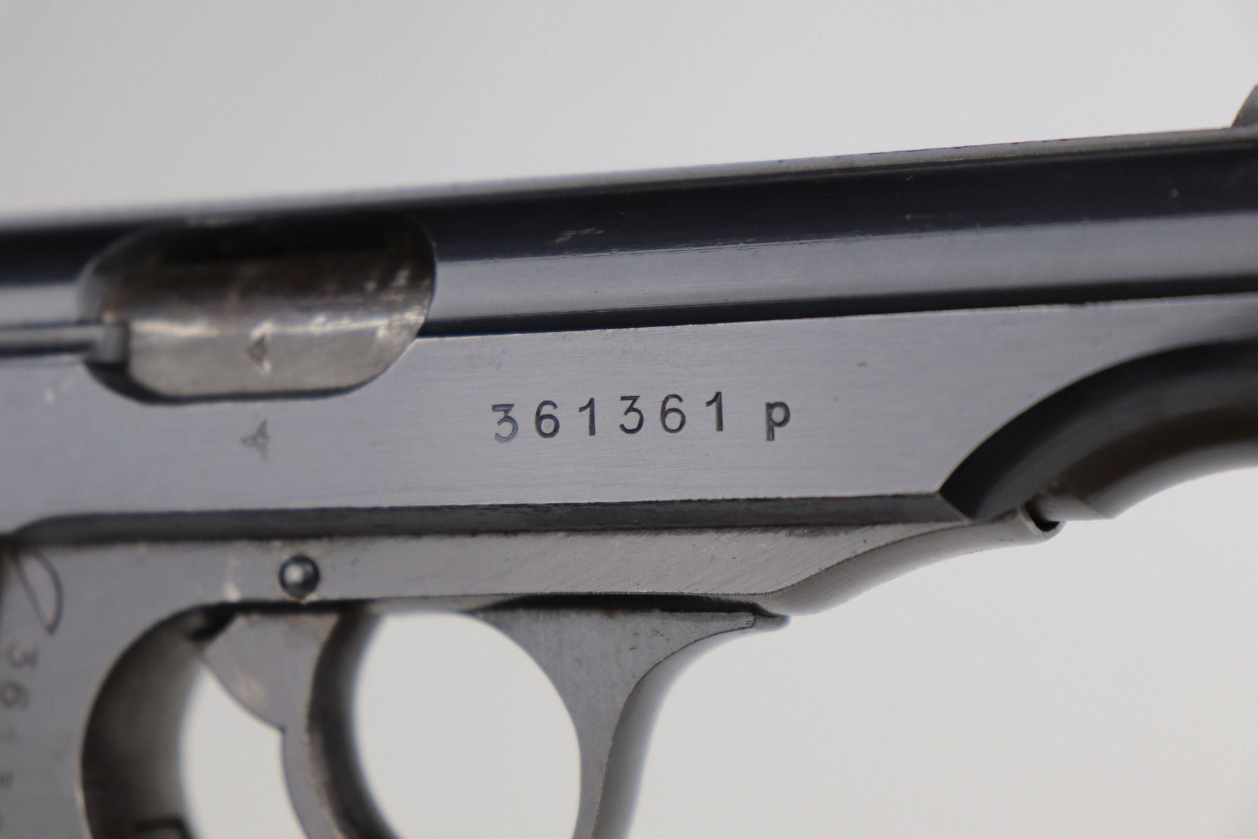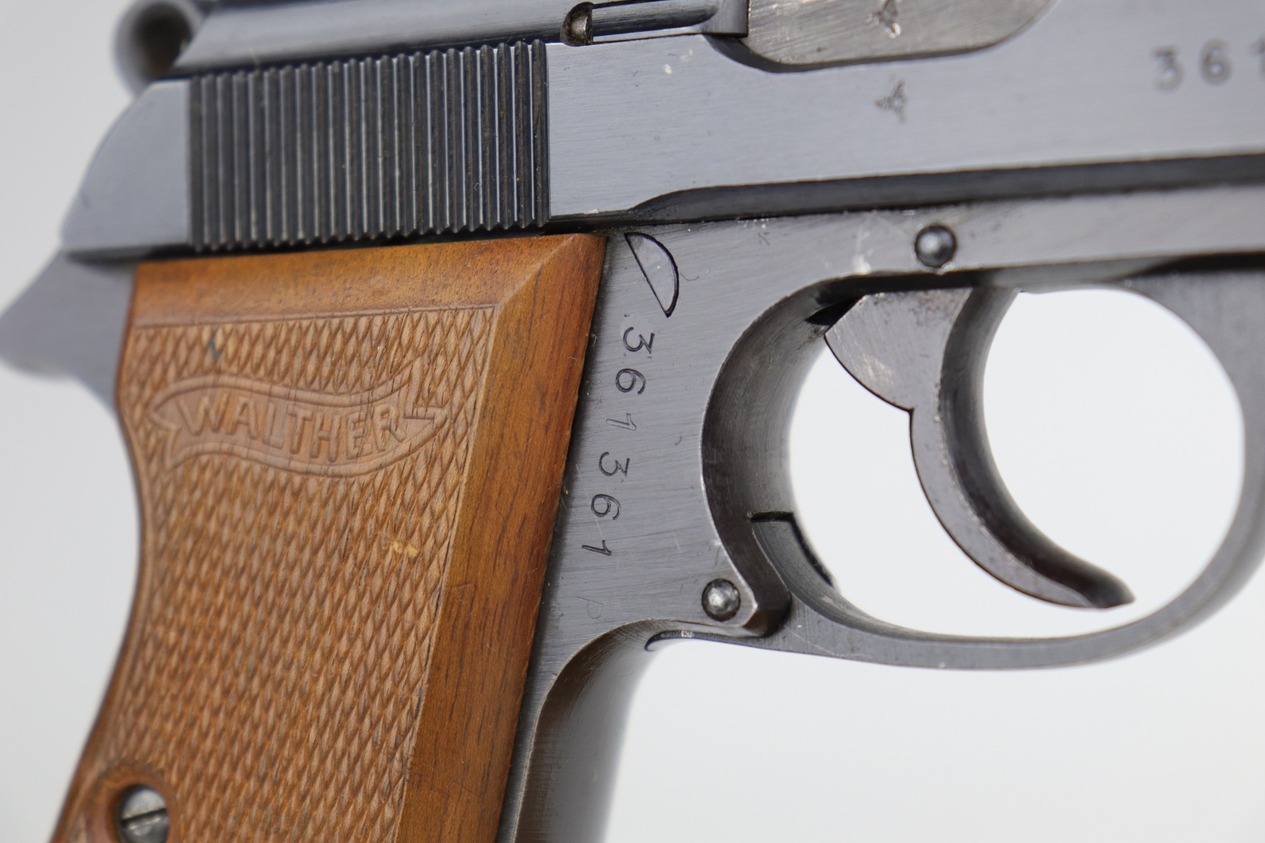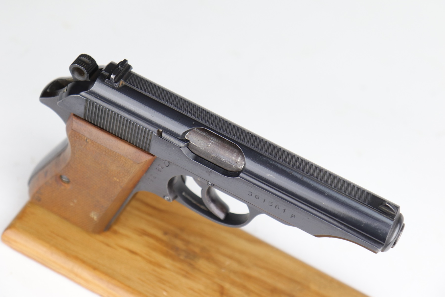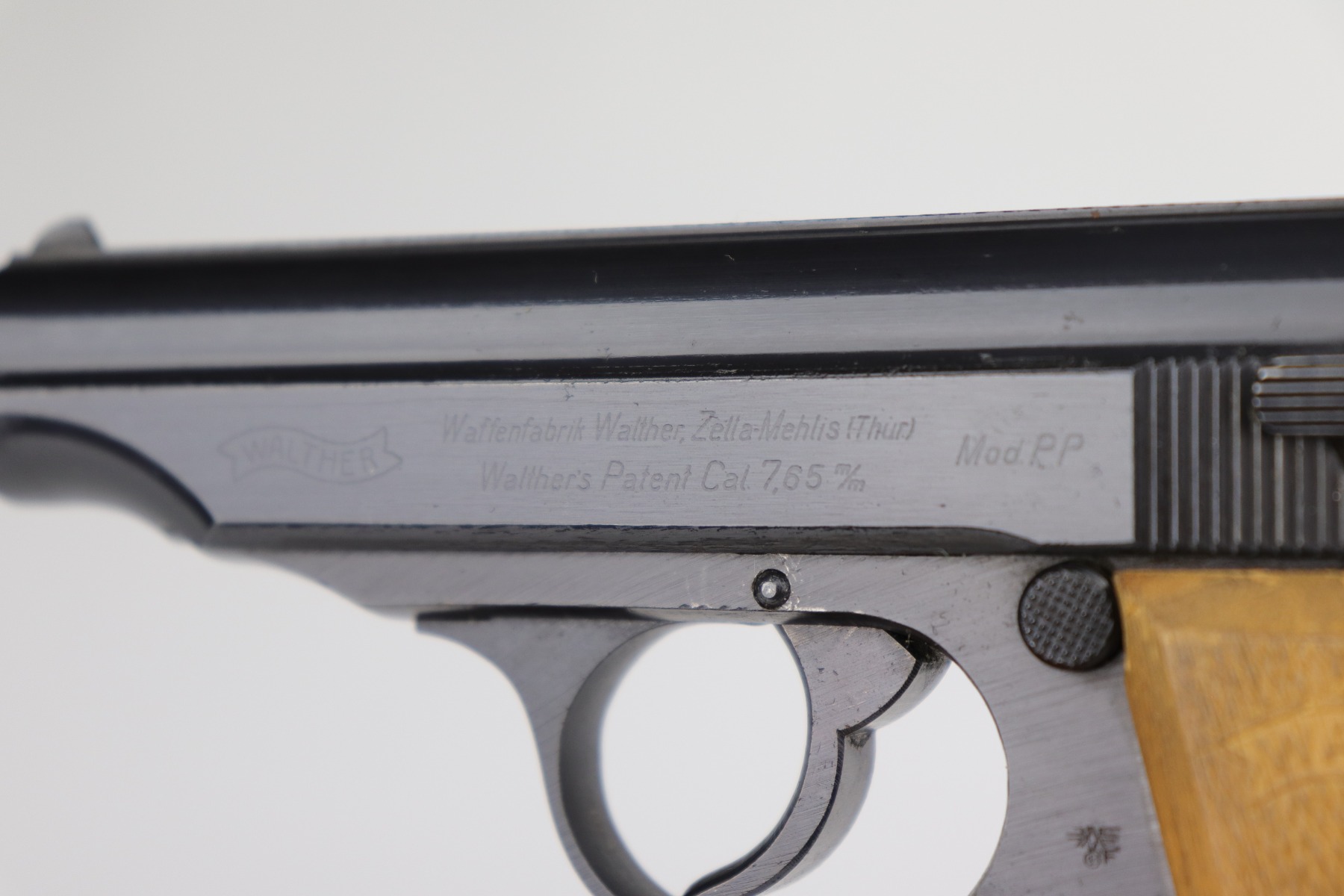 10/6/20 – This is a stone-mint example of a Walther PP issued to the Nazi Police force in 1944. It is all matching and has a police “Eagle F” marking on the trigger guard. The gun is in mint condition. The only sign of wear is a few very small surface marks here and there. Very minor wear on the high edge of the tang. Mint late-war wood grips. It comes with a scarce late-war “W” marked magazine. The bore is stone-mint. Gorgeous gun.