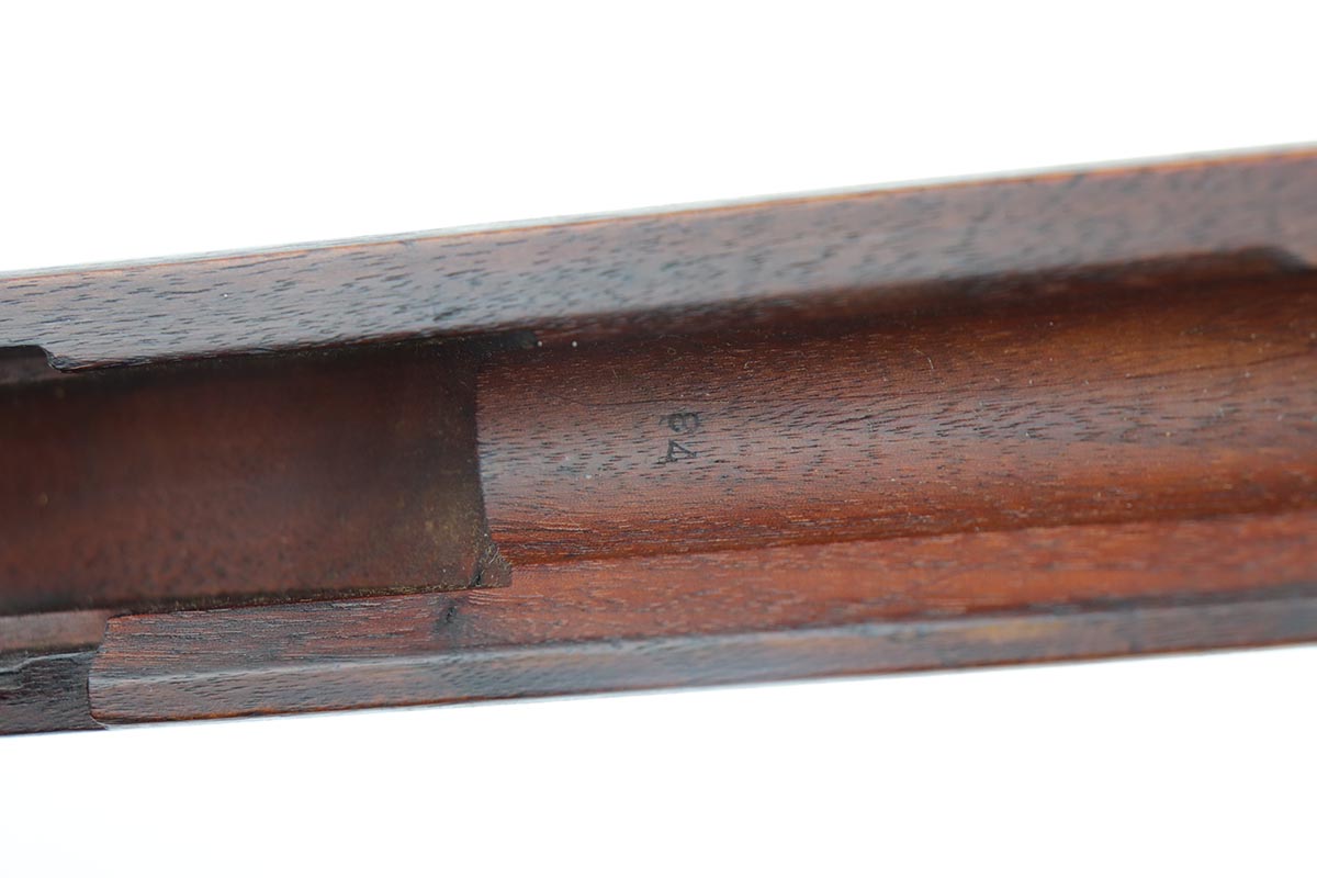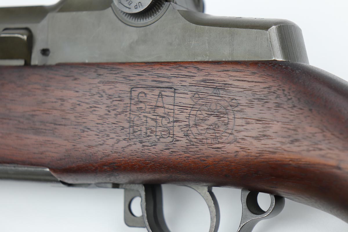7/22/19 – This an all-original, real G.I., pre-Pearl Harbor, WW2 Springfield M1 Garand in superb condition. It was manufactured in September of 1941, making it an early gun. As such, all of the internal parts are early (see photos). It also has an early, flush-nut rear sight. This rifle is not a lend-lease. It has a throat erosion (TE) rating of 1. All of the parts appear to be original and correct throughout. This Garand is an outstanding example, and it is very hard to find one like it in this condition. Overall, the gun is in amazing condition. The finish on the metal parts is excellent and appears to be original – just some very minor handling marks on the barrel and on the bottom plate of the trigger housing. The wood stock is also excellent and original. The military “cross-cannon” cartouche is visible and very crisp, as is the “P” marking below the trigger guard. The gun is fully functional and operates smoothly. The bore is mint. C&R eligible.