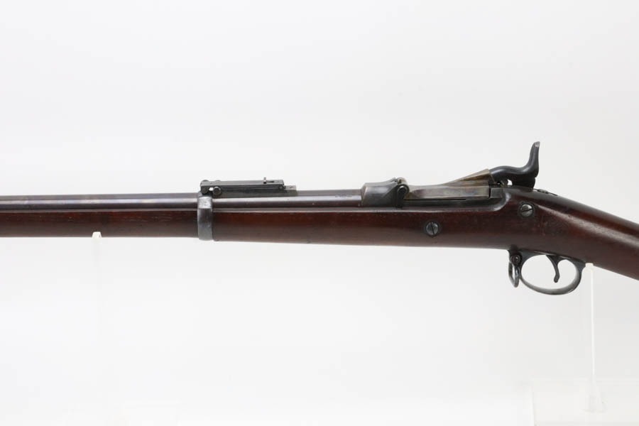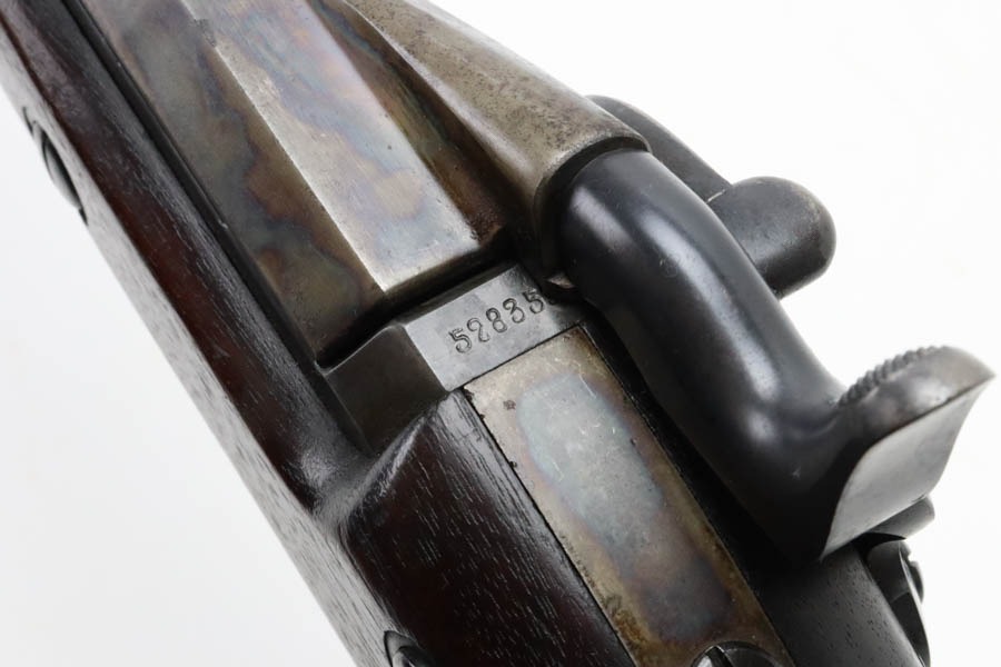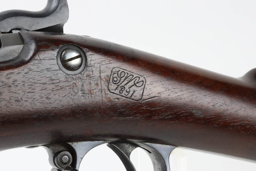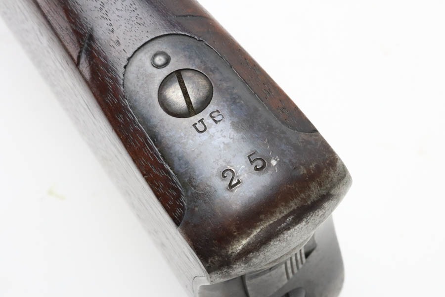 11/19/24 – This is an original Springfield M1884 Rifle with a rare prototype round rod bayonet. The serial number of this rifle puts year of production in 1891, and the left side of the stock has a military cartouche dated 1891. This one has a rare rod style bayonet. Military proofs around the breech with a Springfield marking on the locking plate. The butt plate has a “25”, likely some sort of unit or rack number. This particular example is in superb, above-average condition. It has retained most of its original bluing with nearly all of the original case-hardening visible on the breech. Just some minor discoloration here and there along the barrel, a few tiny marks and scratches here and there, some wear on the butt plate, and some spotty discoloration on the locking plate. Excellent, above-average wood furniture with a clear, crisp marking. The bore looks factory-new. Just a really nice example.