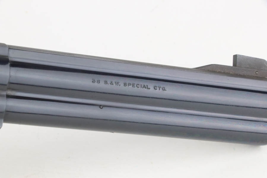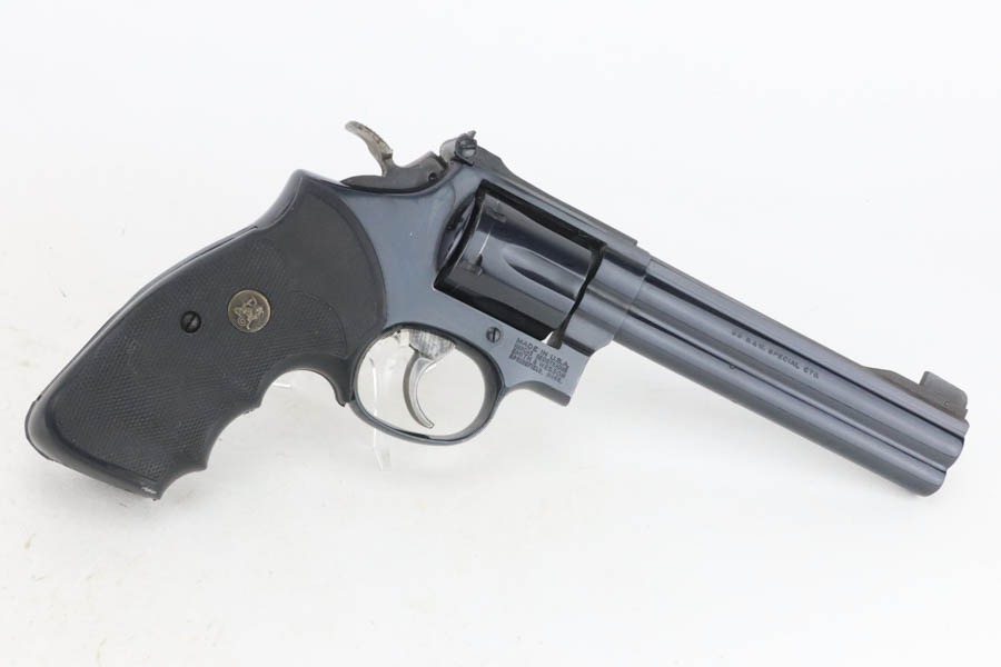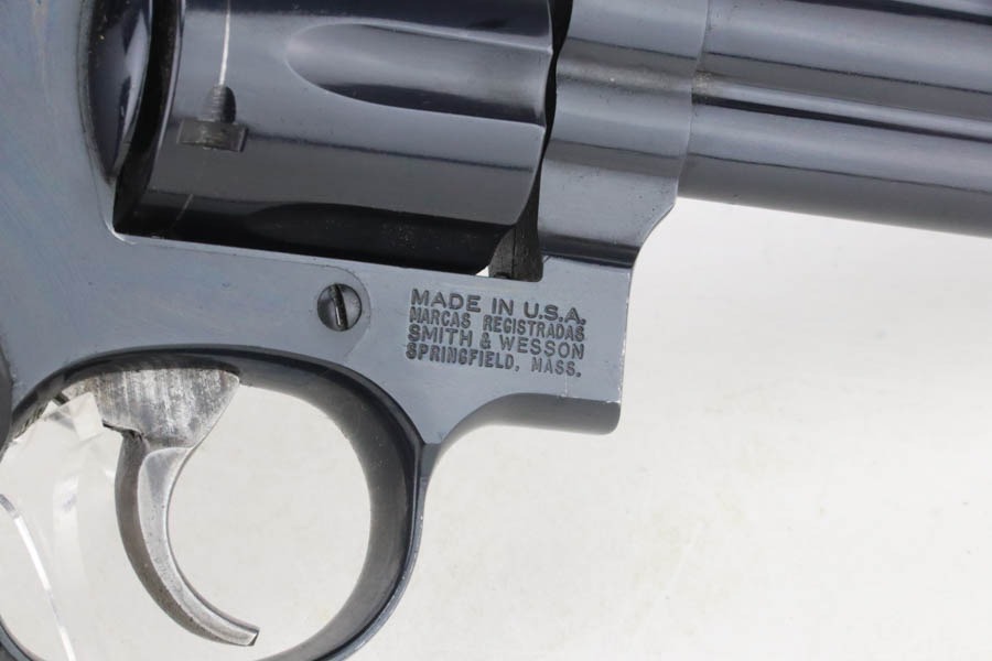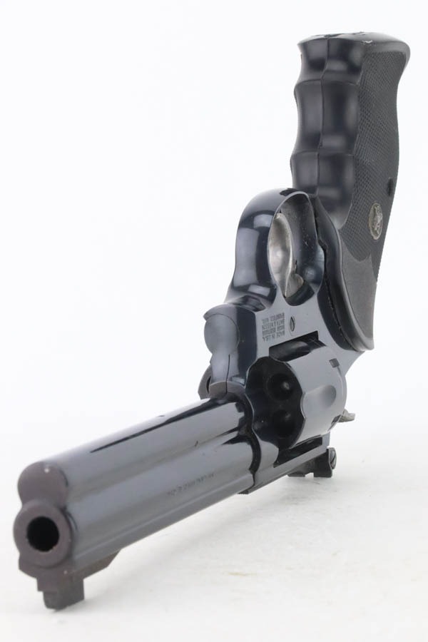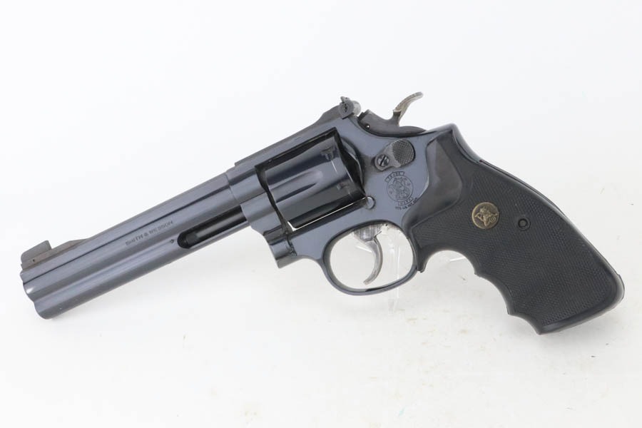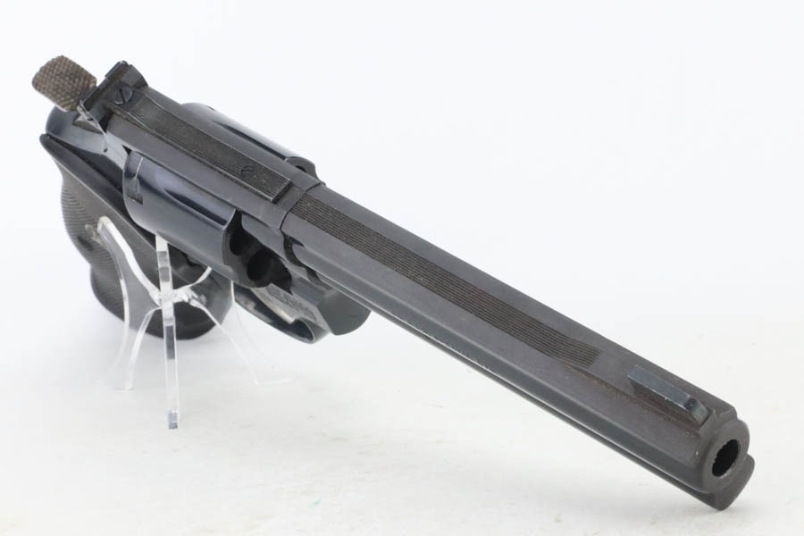 12/2/24 – For sale is a nice Smith & Wesson Model 14-5 Revolver chambered in .38 Special. The barrel measures to 5 7/8″. The metal has a nice polished blued finish throughout with some finish loss around the muzzle and cylinder. There are 3 spots of pitting on the cylinder. The bore is bright with great rifling. The grip has been replaced. Action is smooth with a crisp break.