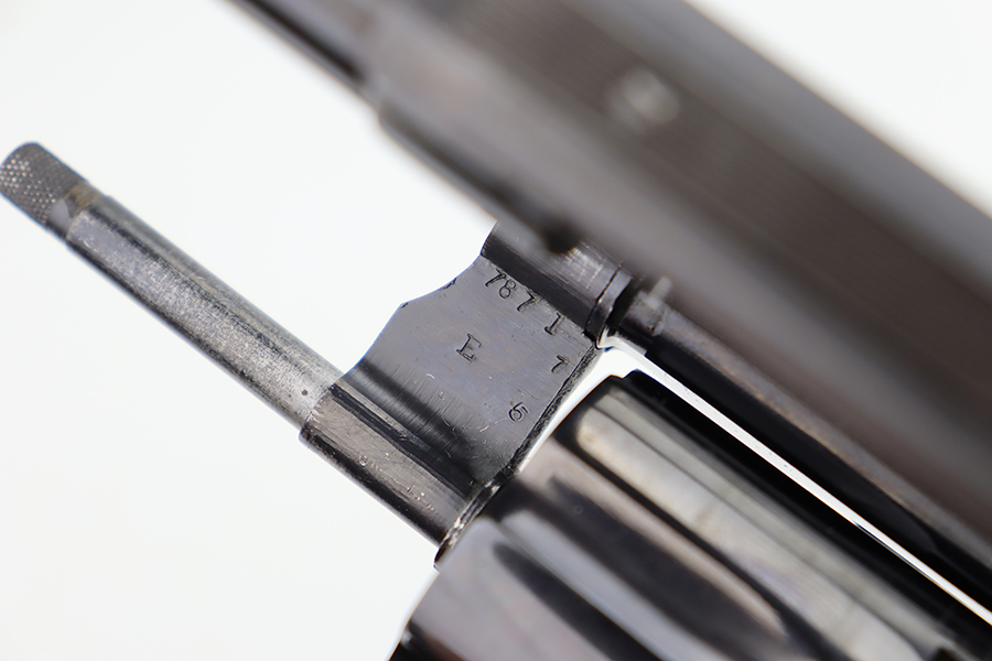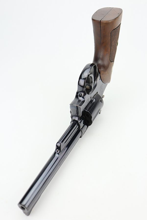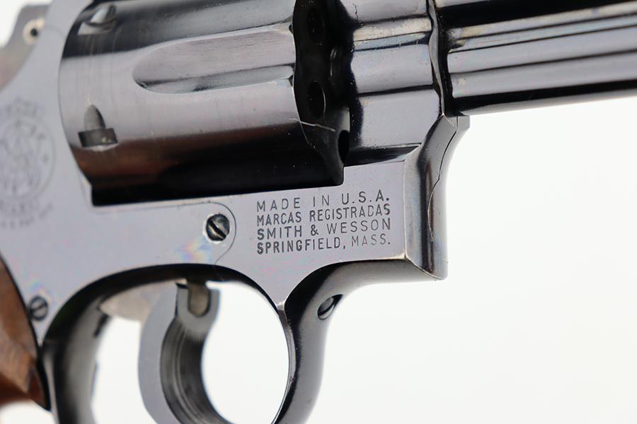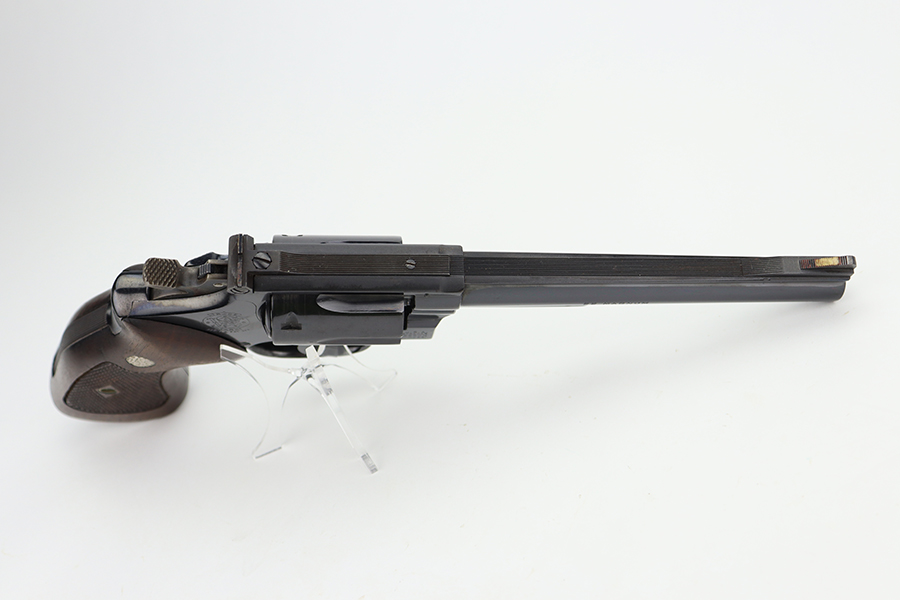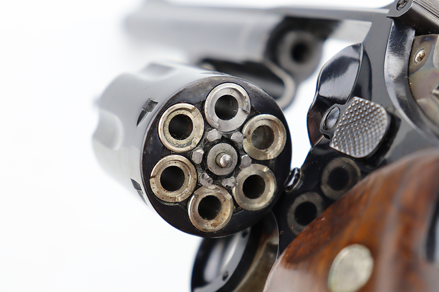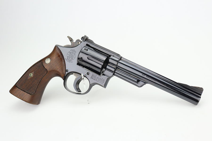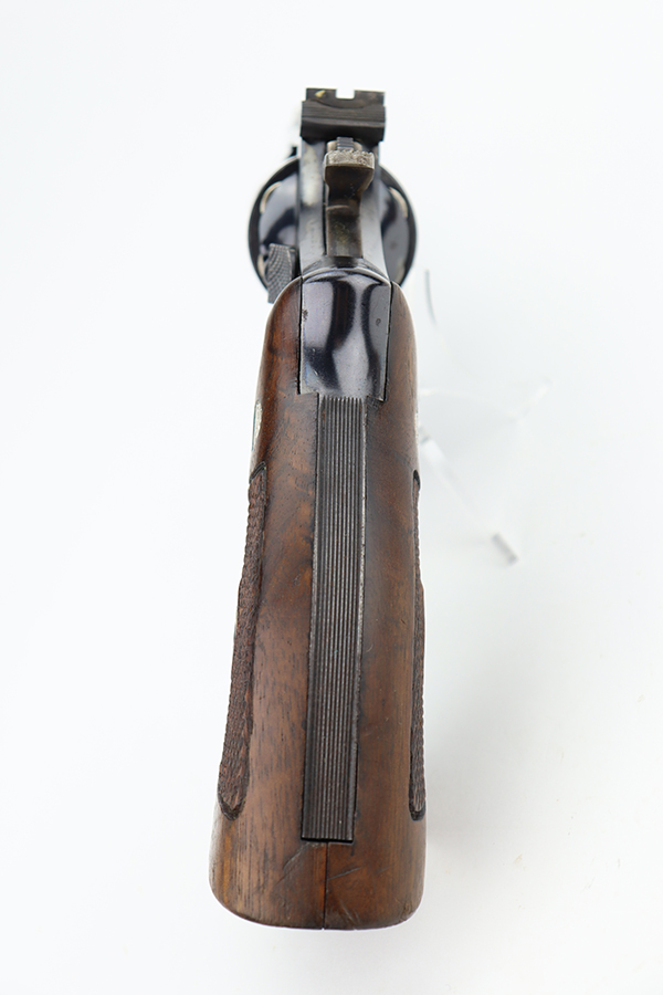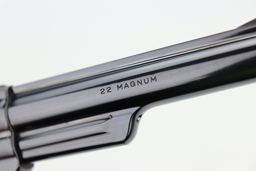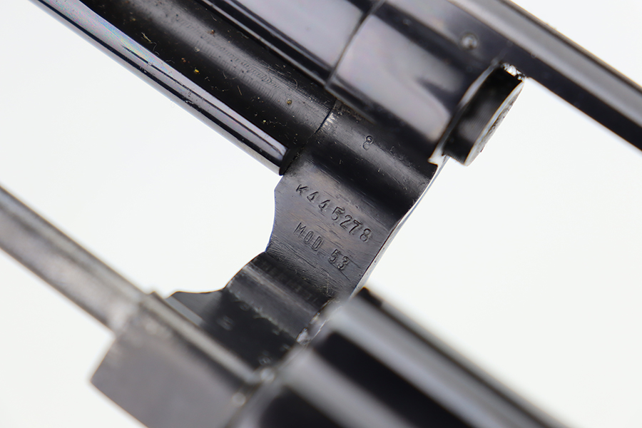 06/05/2024 – For sale is a very nice S&W Model 53 revolver chambered in .22 Remington Jet. This revolver is in an overall 98% condition with some minor wear on the cylinder, cylinder arm, and cylinder center rod. The revolver retains a nice polished bluing throughout and the hammer and trigger have a nice case hardened finish. The wood grips are clean and in good condition. The bore is bright with some debris which should be able to be cleaned out easily.