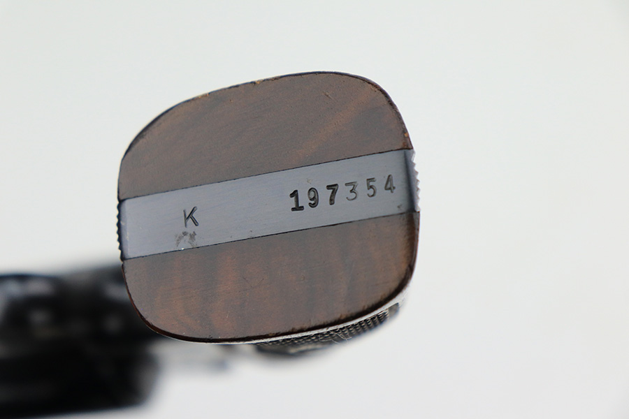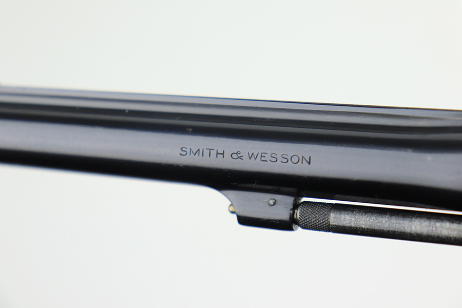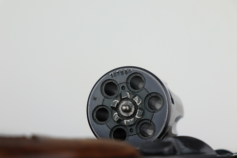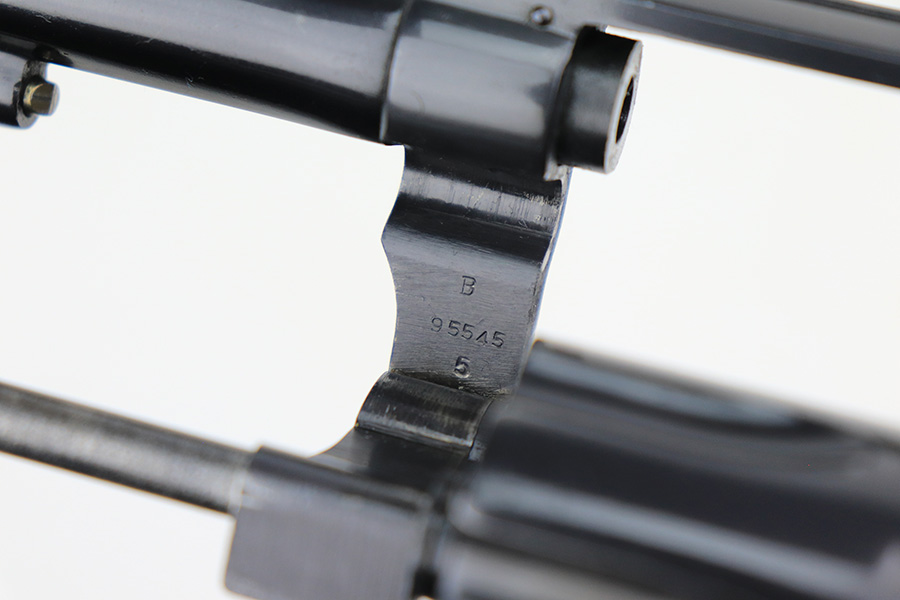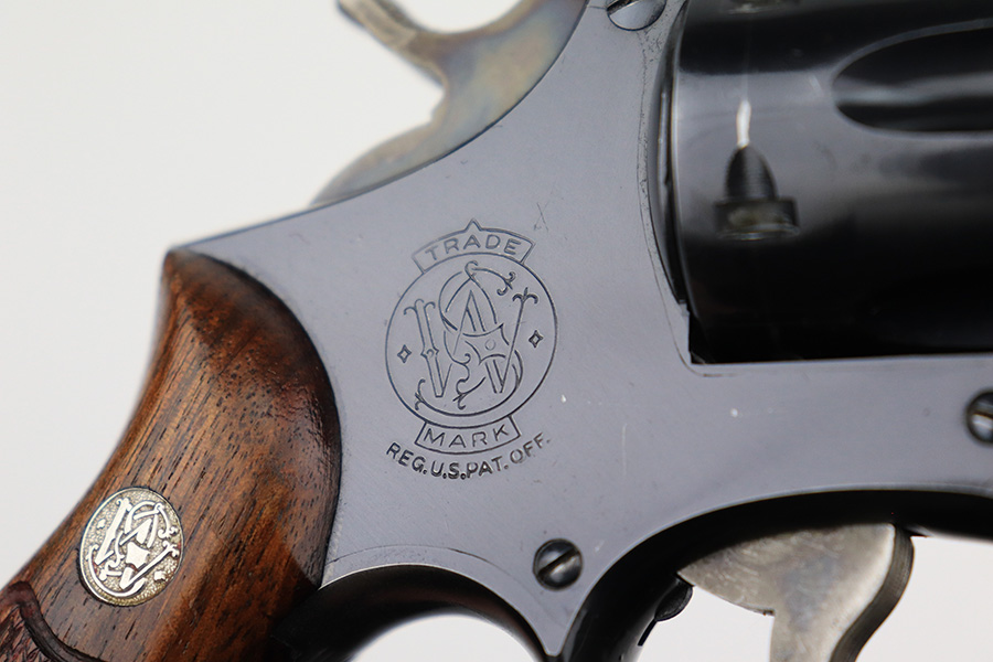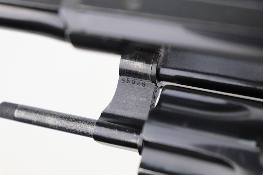 5/23/22 – This is a minty example of a Smith & Wesson Model K-22 Masterpiece revolver manufactured in 1953. It is all matching, has a 6 inch barrel, and is chambered in .22 LR. It has retained about 98% of its original high polish finish. There is minor muzzle wear, a light roll mark on the cylinder, and some very light scratches here and there on the barrel and right side of the frame. Hammer and trigger have very nice case-hardening. Excellent wood grips. Mint bore. The cylinder is tight and the action is smooth.