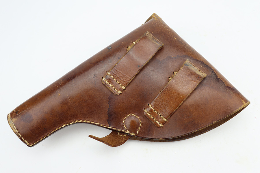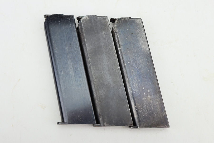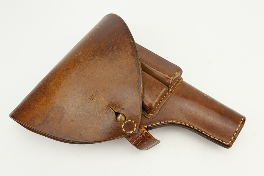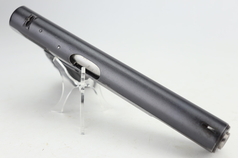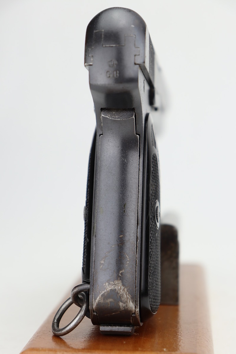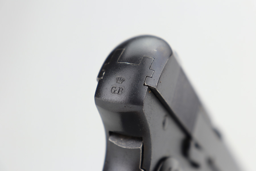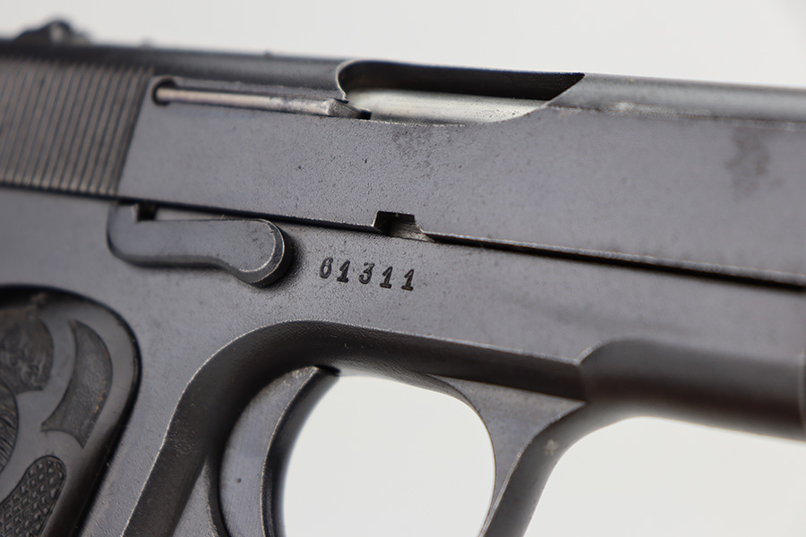 9/5/24 – This is a somewhat uncommon find, the Swedish Husqvarna Model 1907 pistol. The origin story on these handguns dates back to the early 1900s, as they were being produced by Fabrique Nationale under the designation of Model 1903. FN had been licensed to produced Browning’s .32 caliber pocket hammerless for the European market, while Colt had the U.S. rights, hence why this pistol looks like an oversized Colt M1903. Several countries reportedly wanted a larger service pistol on the same FN design that could accommodate the 9x20mm Browning Long cartridge, so FN lengthened the barrel to five inches, and added a slide stop on the right side of the frame. Sweden adopted the pistol as their military sidearm in 1907, and imported them from FN under the designation of Model 1907. FN then produced these pistols for Sweden until Germany captured their factory in 1914, and later Sweden procured licenses to produce them at the Husqvarna factory in 1917. This production continued until 1940, when the Lahti took over as preferred sidearm. Tucked away by the Swedish military, these pistols eventually hit the export market and many ended up in the states, such as the one listed here. They were then re-chambered to .380 ACP, and this one was likely imported before all firearms required import marks as none are present. This one is matching, has a Crown GB marking on the tang, and comes as a rig with a mint holster and three proper magazines. It has retained nearly all of its finish with hints of wear on the high edges and a couple of small spots of discoloration on the right side of the slide. Excellent black bakelite grips. Minty bore.