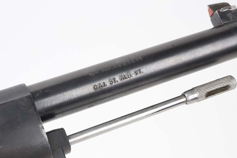 04/02/2024 – For sale is an early Swedish m96b Mauser made by the Mauser factory in 1900. Early on in its production, Sweden had the Mauser factory produce these rifles while their arsenals began ramping up production. This rifle is clean and has a nice bluing on the metal finish but it is slightly worn. The bore is excellent and very bright with great rifling. The stock is in good shape with handling marks throughout. The rifle is not matching. The top of the receiver has been drilled for (what looks like) the Soderin style diopter sights used on target/FSR rifles. The rifle has been modified to the “b” designation with the barrel being threaded for the blank fire training device. It has an aftermarket flash hider installed.