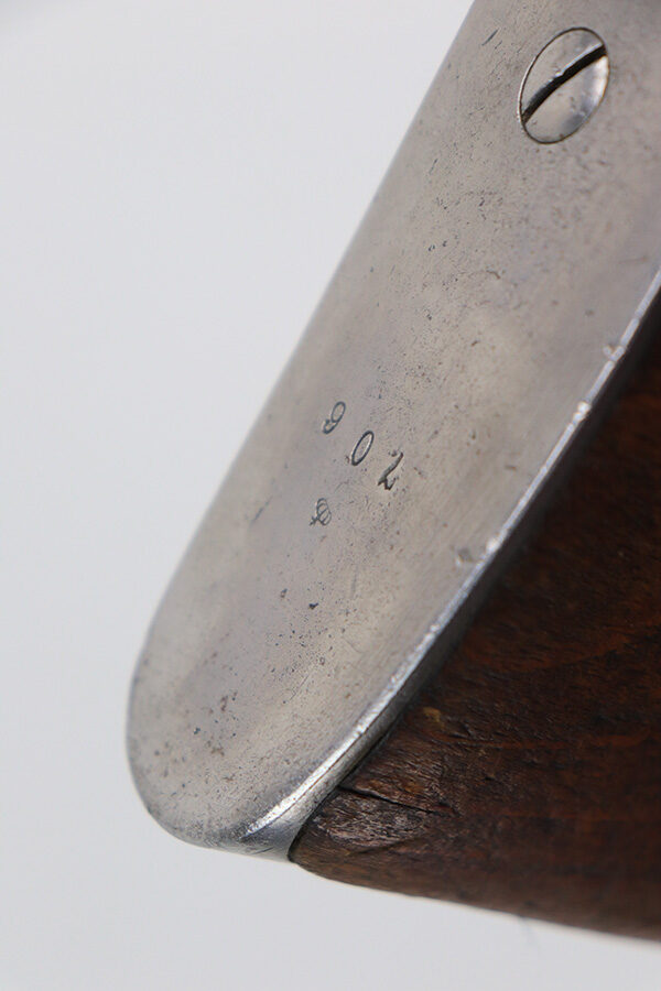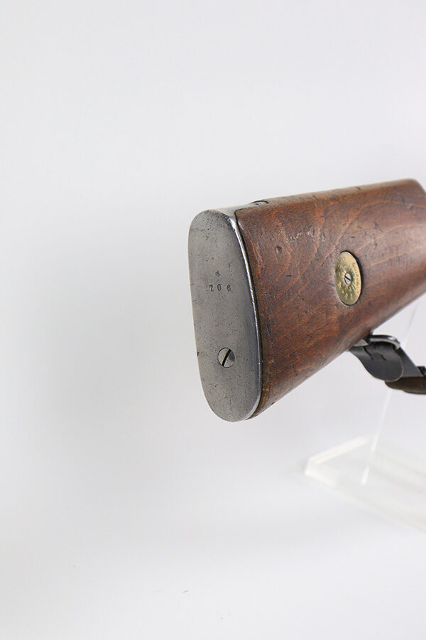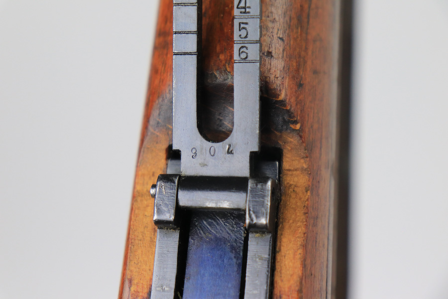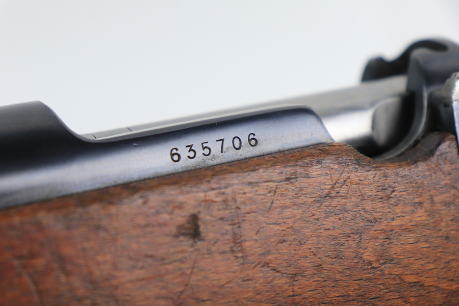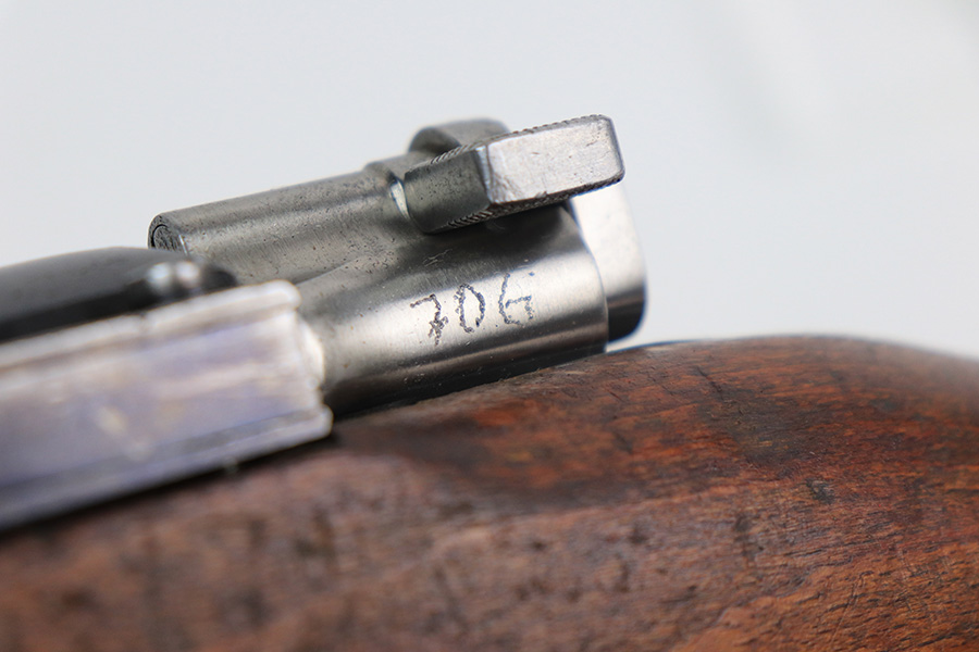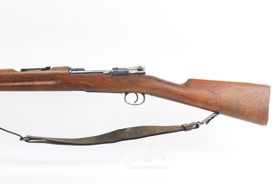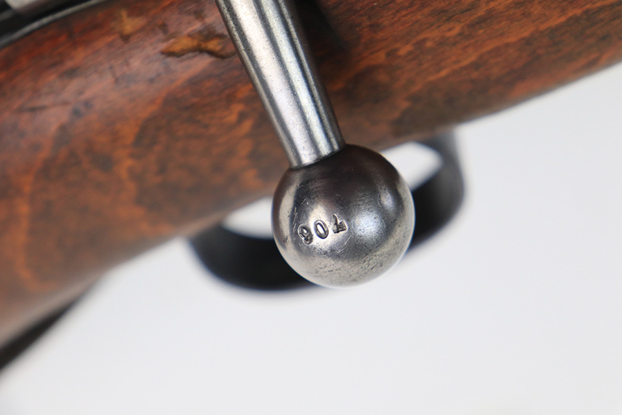 12/10/21 – This is a very nice example of a Swedish Mauser M38 rifle issued to the Swedish military in 1942. This one is all matching, has the proper “Crown” Swedish military proofs throughout, and comes with an original cleaning rod and leather sling. The gun also comes with a period-correct blank-firing muzzle attachment that screws onto the end of the barrel. These were used when firing blank wood bullets – likely for training. The back of the left side of the bolt assembly is numbered with an electro pencil to match the receiver. Import mark on the barrel. The gun has retained the majority of its finish, but there is noticeable scratchy wear on the whole barrel, underside of the trigger guard, and on the bolt release lever. Some splotchy discoloration on the underside of the gun, just behind the front barrel band. Some of the small parts have retained their original fire bluing. The stock is nice and is properly “Crown”-proofed – there are just minor dings and scratches throughout. The bore is excellent – shiny with strong rifling.
