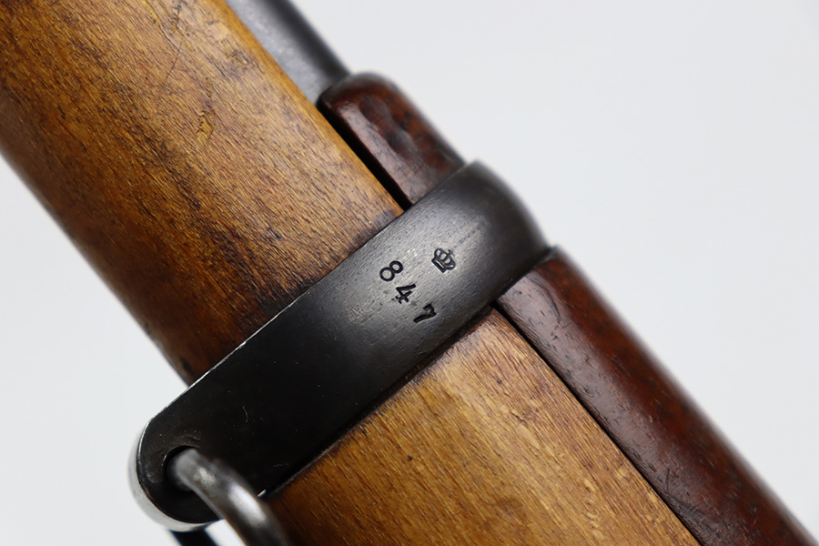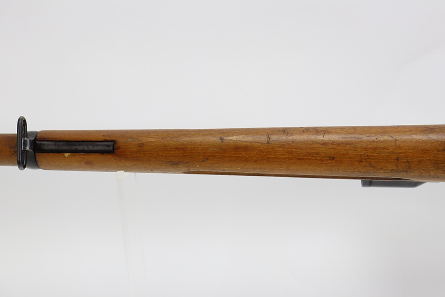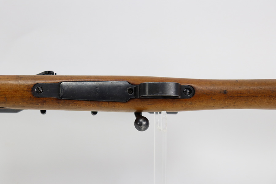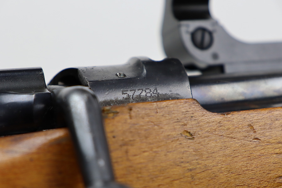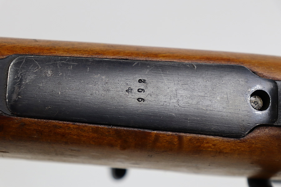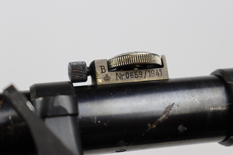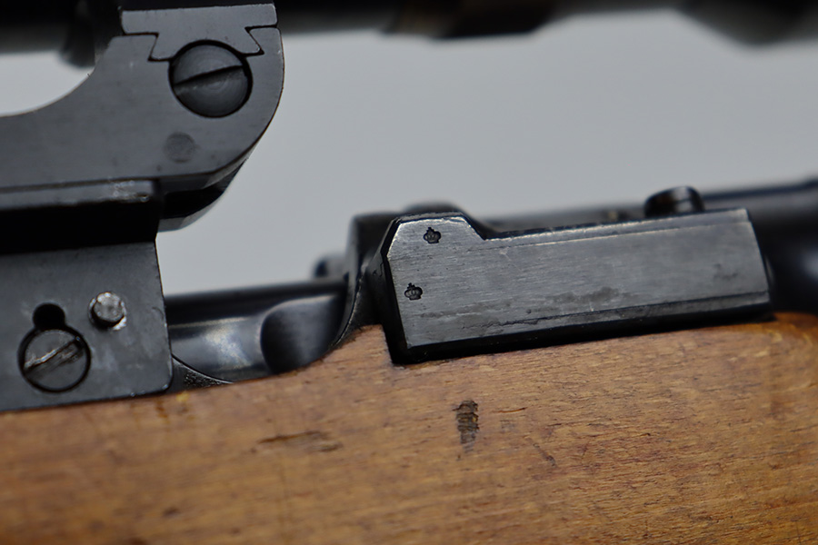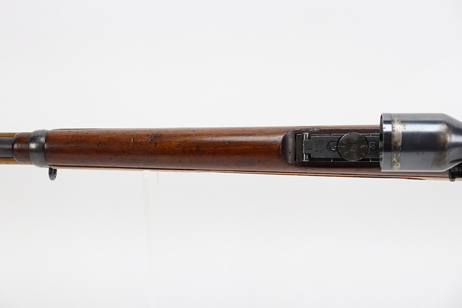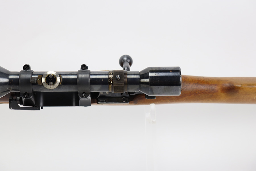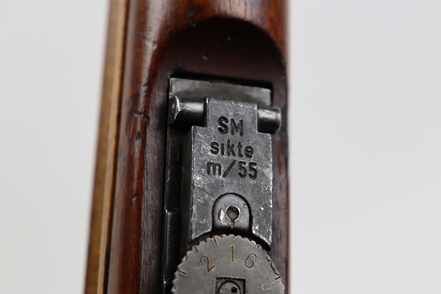 7/14/23 – This is an excellent example of the rare Swedish M41/B sniper rifle as made by Mauser. There were only 2-3k of these ever produced with the German-style side rail mount and AJACK 4×90 scope. In 1940, the Swedish military realized it had a need for scoped sniper rifles but had none of the production in place, so they ordered the AJACK scopes and short rail type mounts from the Germans before the Germans realized they needed them all for their own military. They were built on existing Swedish rifles that had already previously shown particularly good accuracy, and in 1955, Sweden upgraded all of the rifles to feature the same characteristics (numbered mounts, AJACK scopes only, and peened screws). This earned the designation M41/B, and they were used all the way up until 1991. This one does have mismatched numbers but is in excellent condition overall. Minor thinning in a few areas but minimal bluing loss overall. Import mark on barrel, and importer added serial on right side of receiver. The gun is photographed with a replacement mount but the original is included with the listing. Minty bore. The stock disc is intact, and the wood shows only minor handling wear. The scope reticle is clear but there is a chip in the glass at one of the edges.