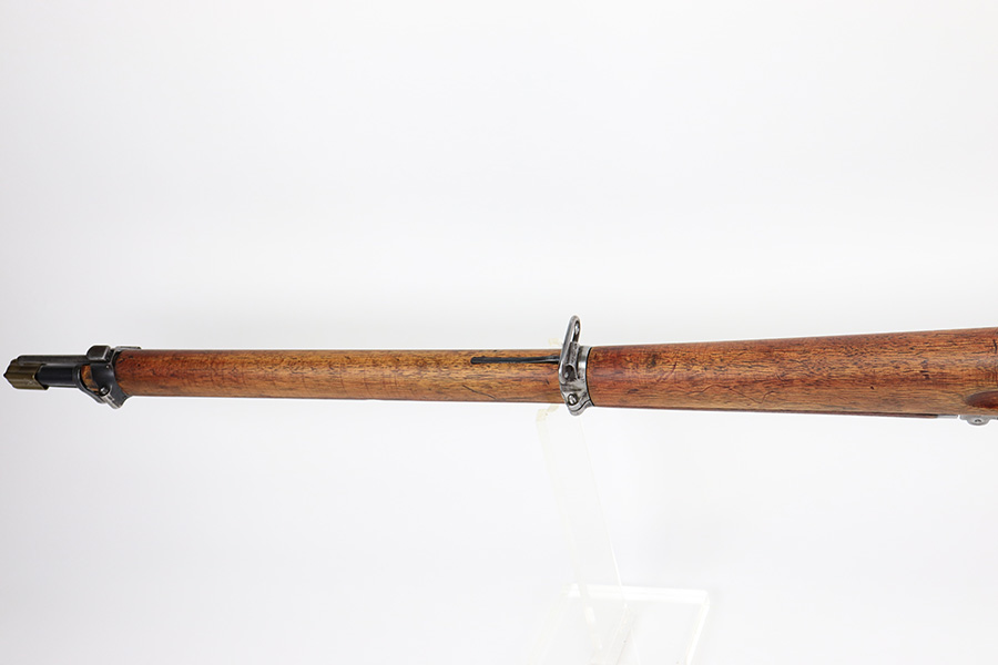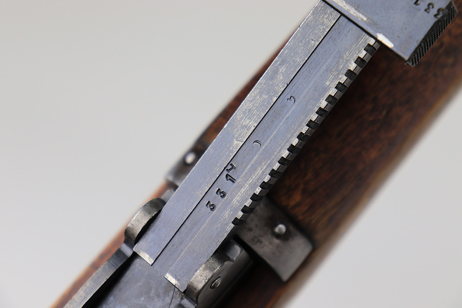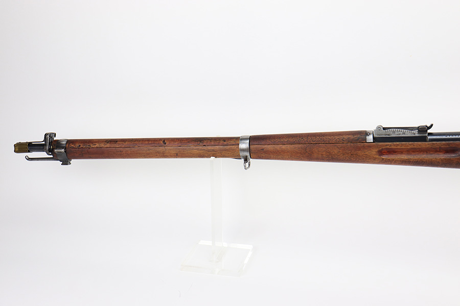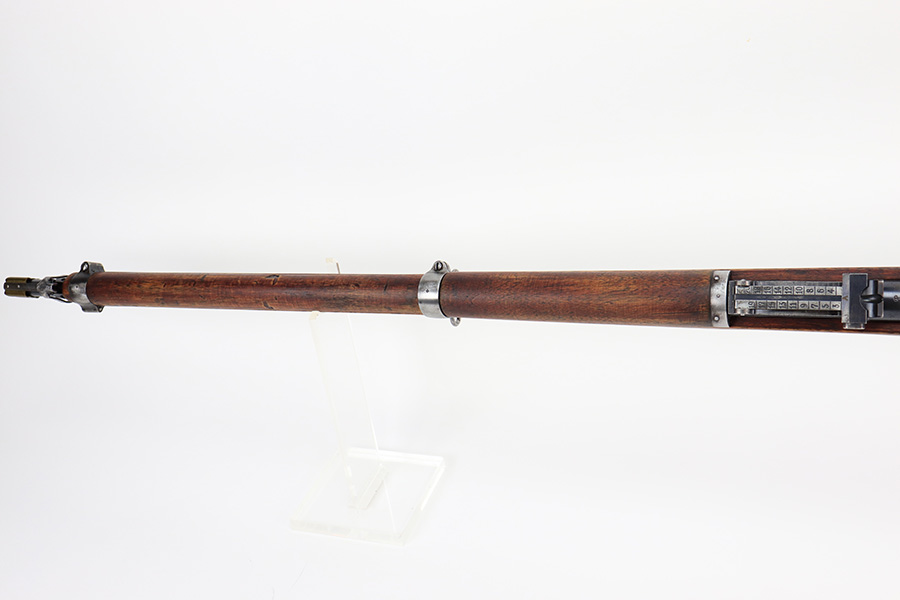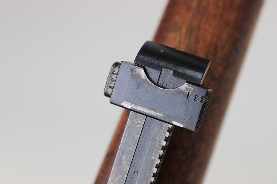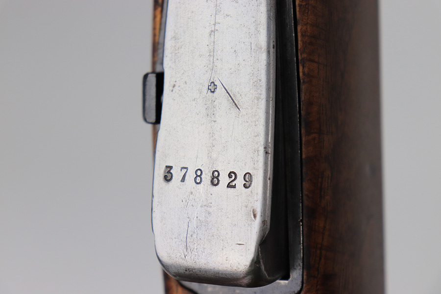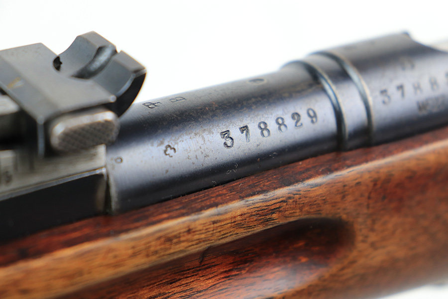 4/15/22 – This is a very nice example of a Swiss Schmidt Rubin K11 Rifle issued to the Swiss Army in the 1930’s. The K11 is identical to the previous 1911 model in every way except it was shortened. This one is all matching (except for the rear sight) and has an import mark on the left side of the receiver. It comes with an original muzzle cover. Overall, the gun is in very nice condition. However, there is scratchy wear around the muzzle and noticeable finish loss on the barrel bands, underside of the magazine, and underside of the trigger guard. Tiny dots of oxidation along the receiver. The stock has a proper Swiss proof on the right side of the butt stock. Overall, the stock is very nice. There is an area of light scratching around the left side of the wrist and a couple of noticeable gouges in the handguard. Minty bore.