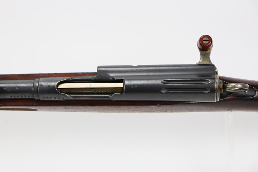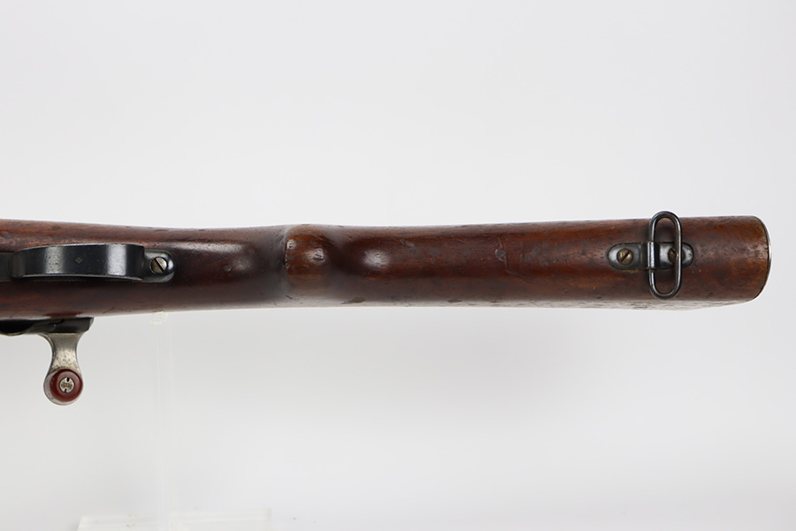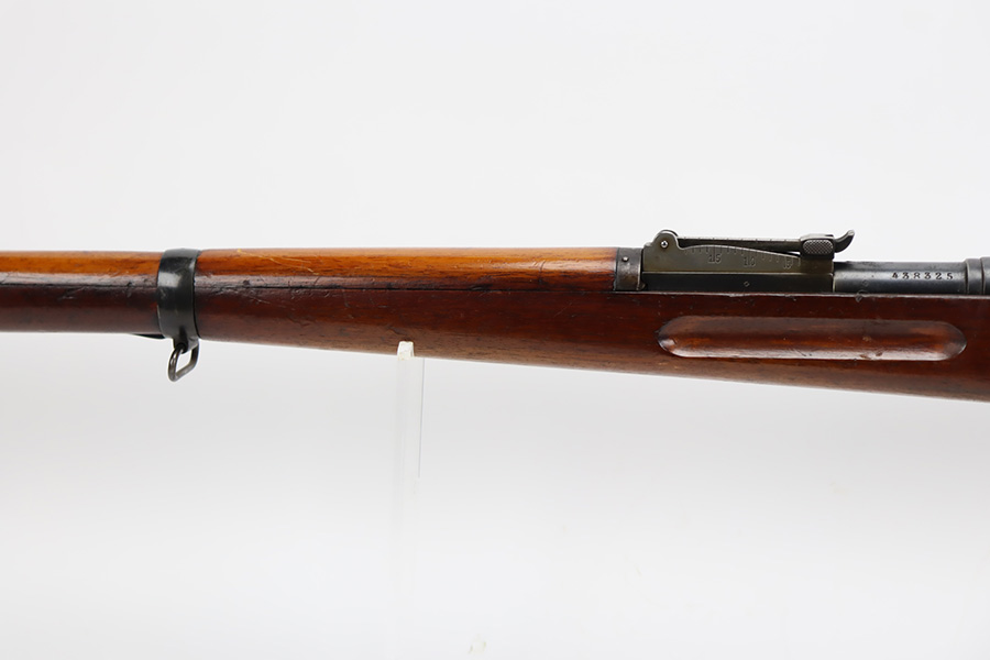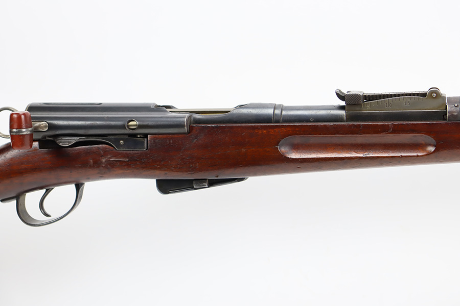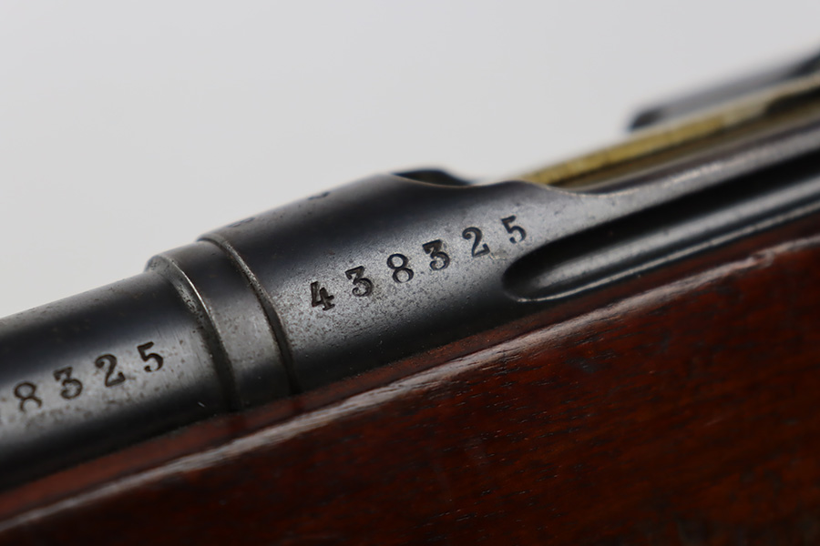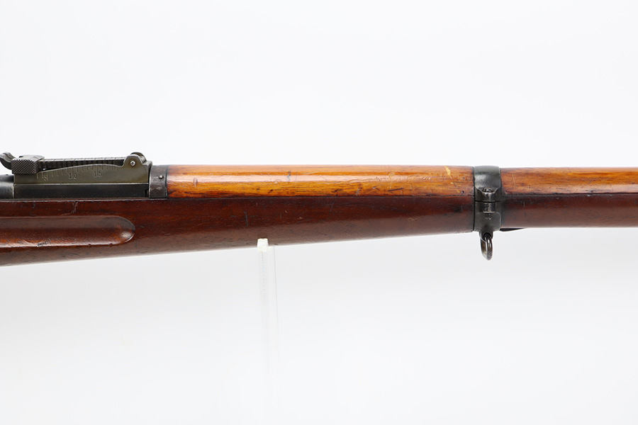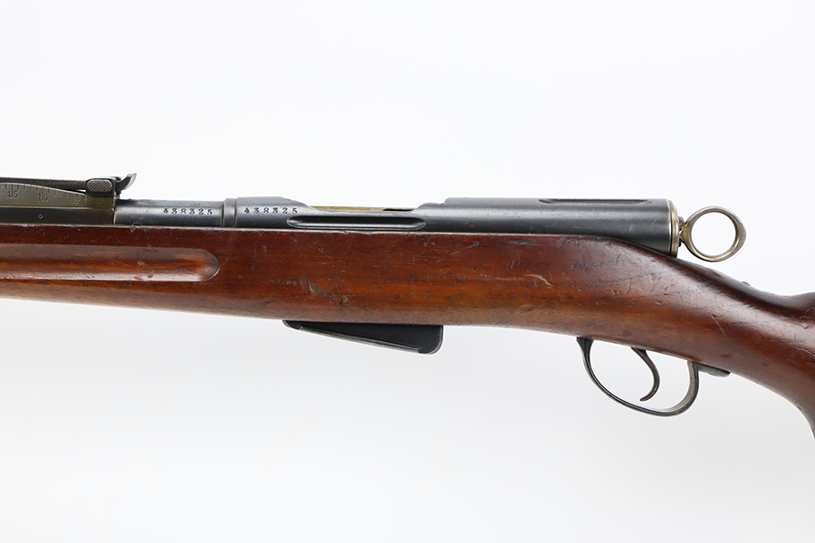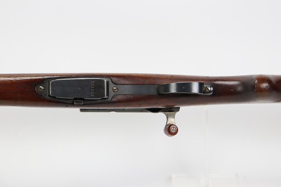 9/12/23 – This is a very nice example of a Swiss Schmidt Rubin Model 1911 Rifle issued to the Swiss Army in the 1920’s-30’s. This one is mostly matching, but the bolt and rear barrel band are mismatched. It comes with a period-correct bayonet (numbered but not matching), scabbard, and brass muzzle cap. The metal parts have retained about 95% of their original finish. The majority of the wear is around the muzzle. Nice wood furniture, but there are minor bruises and scratches throughout. Mint bore.