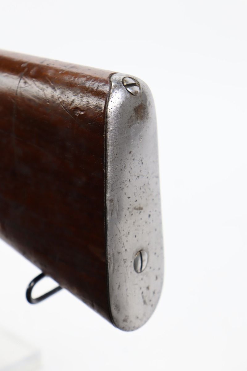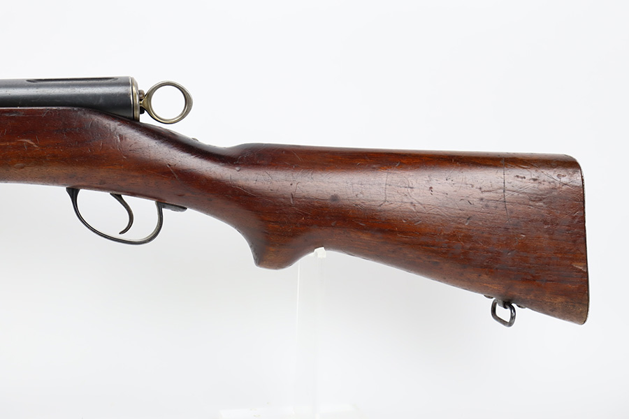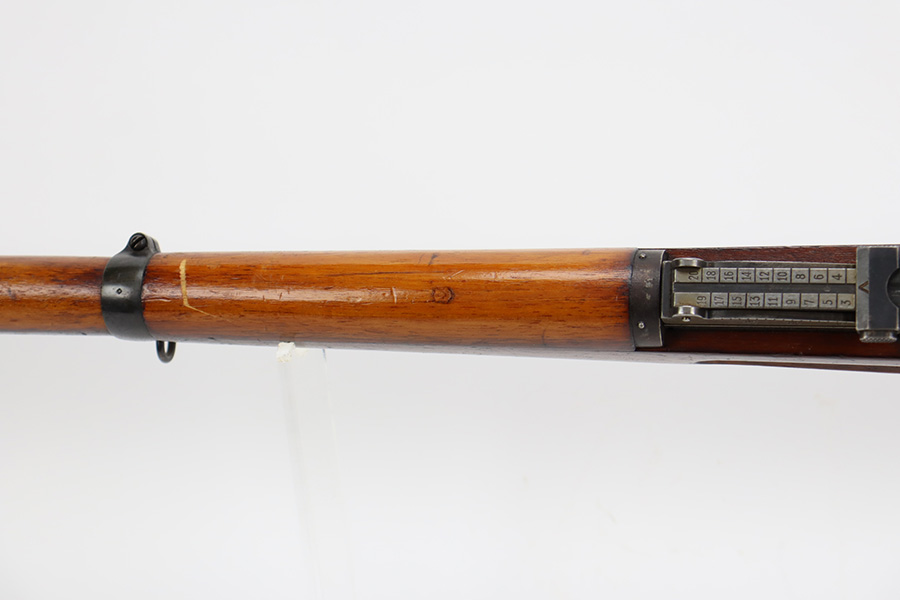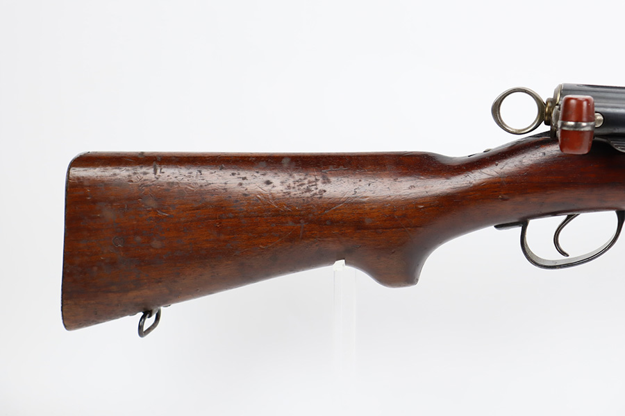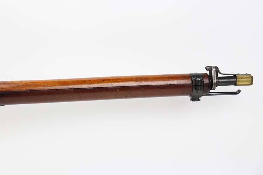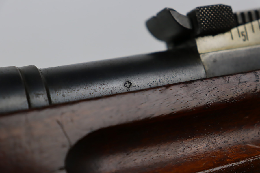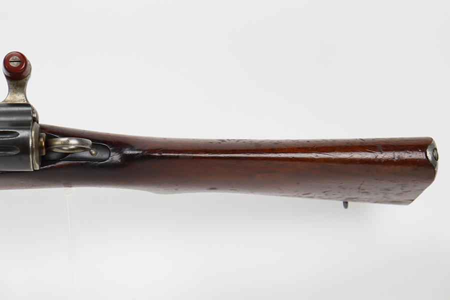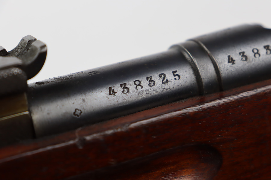 9/12/23 – This is a very nice example of a Swiss Schmidt Rubin Model 1911 Rifle issued to the Swiss Army in the 1920’s-30’s. This one is mostly matching, but the bolt and rear barrel band are mismatched. It comes with a period-correct bayonet (numbered but not matching), scabbard, and brass muzzle cap. The metal parts have retained about 95% of their original finish. The majority of the wear is around the muzzle. Nice wood furniture, but there are minor bruises and scratches throughout. Mint bore.