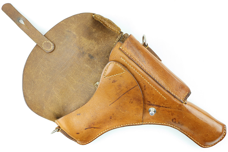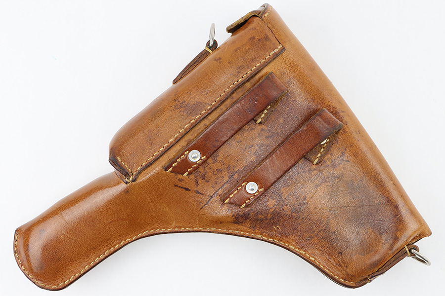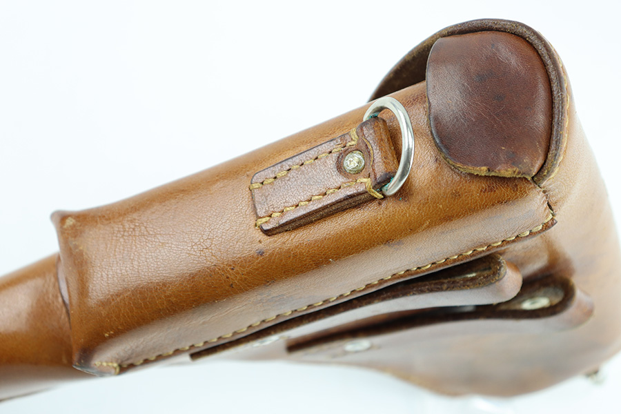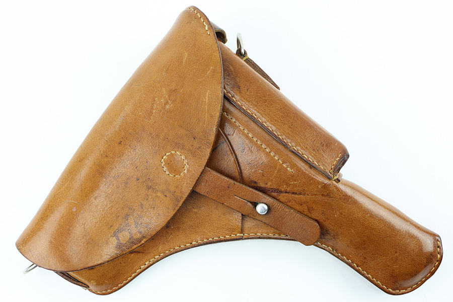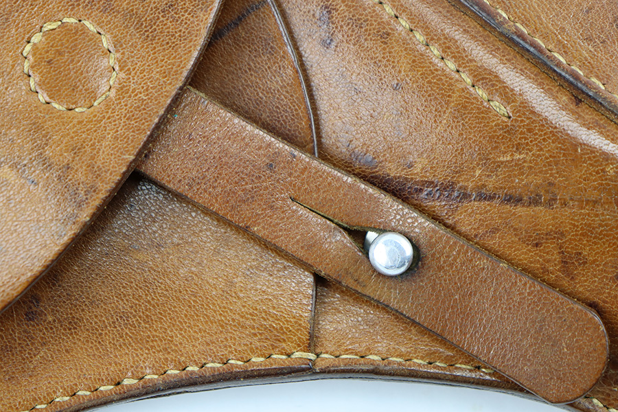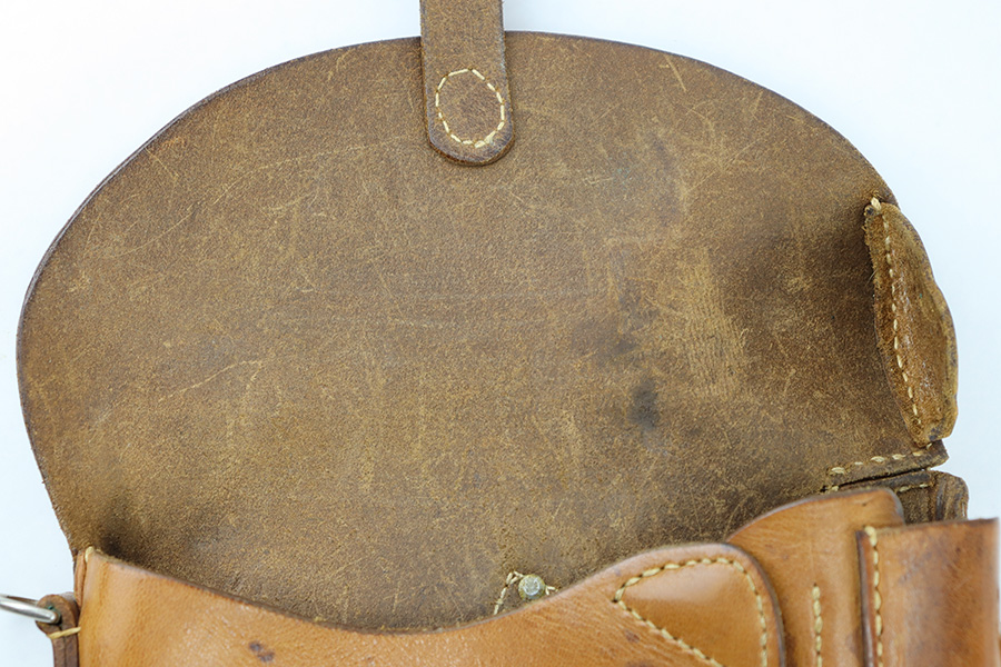 8/28/23 – This is a Swiss leather holster for the Sig P210 pistol. Likely 1960’s production, this holster is in great shape with some mild surface staining and light use wear. The leather has normal pliability and no major issues. Fairly clean interior leather. All original stitching intact. No markings or stamps.