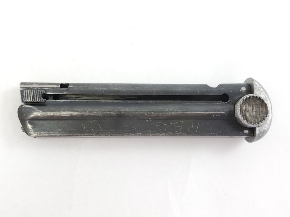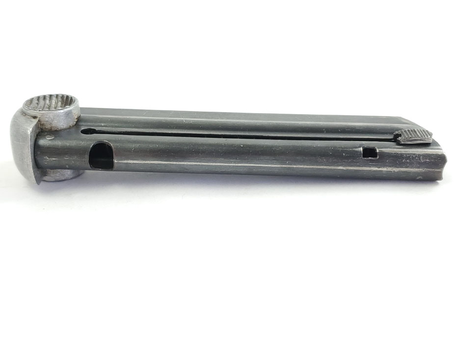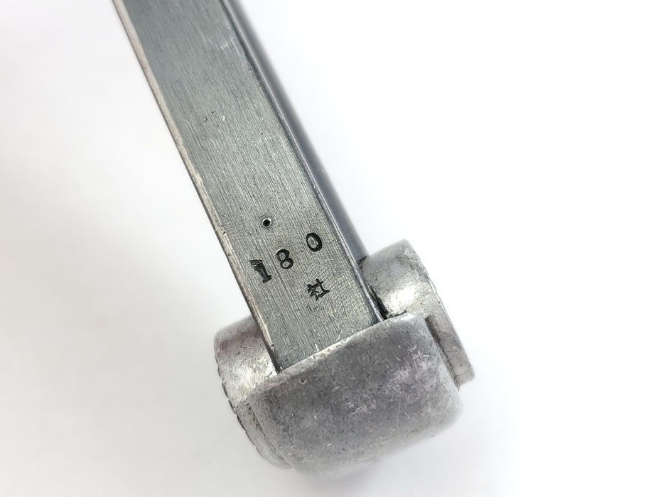 5/13/20 – This is an original wartime production T14 magazine. The magazine has a blued tube and aluminum base. The spine is serial numbered 180. The spring is strong and fully functional. Very minimal wear or bluing loss.