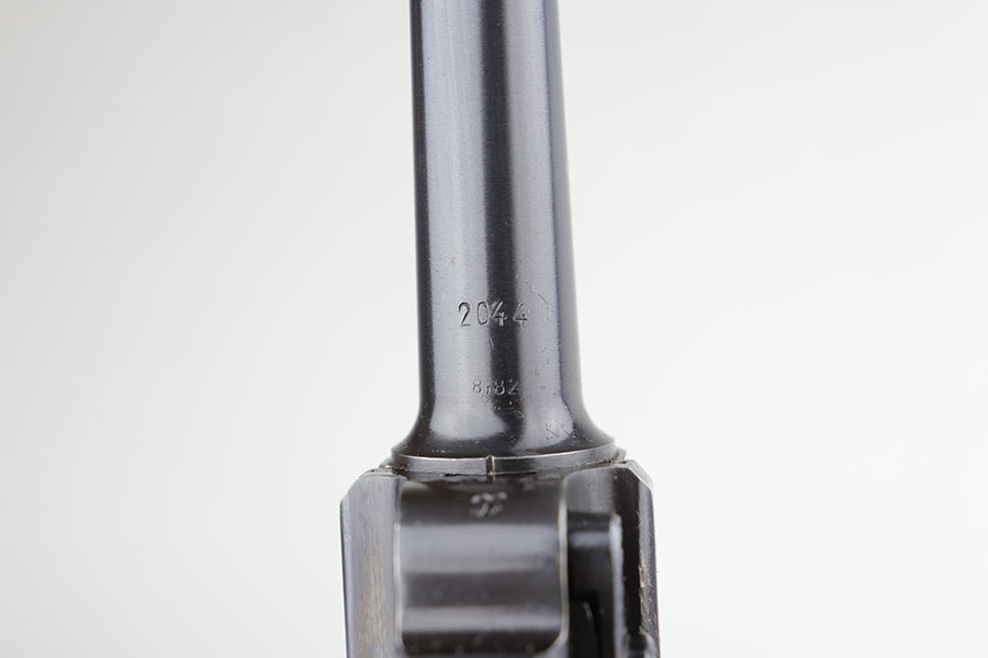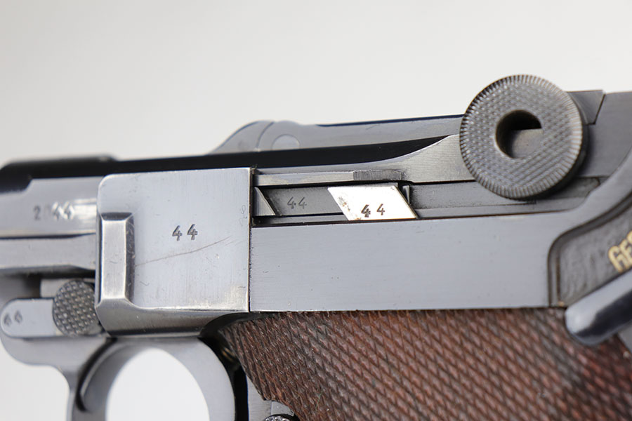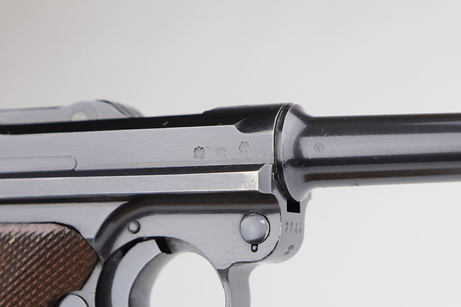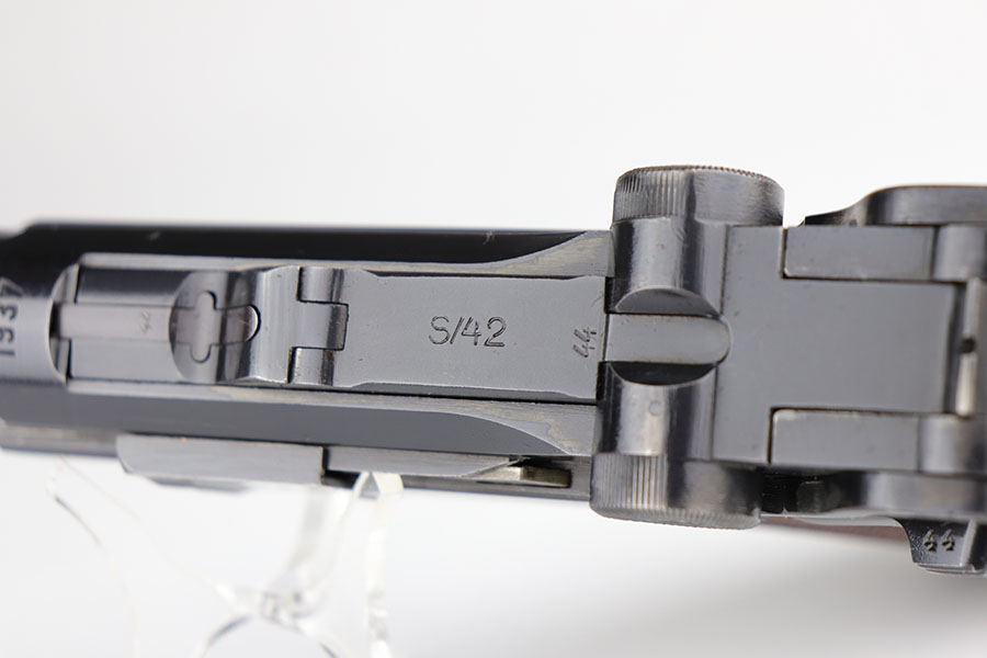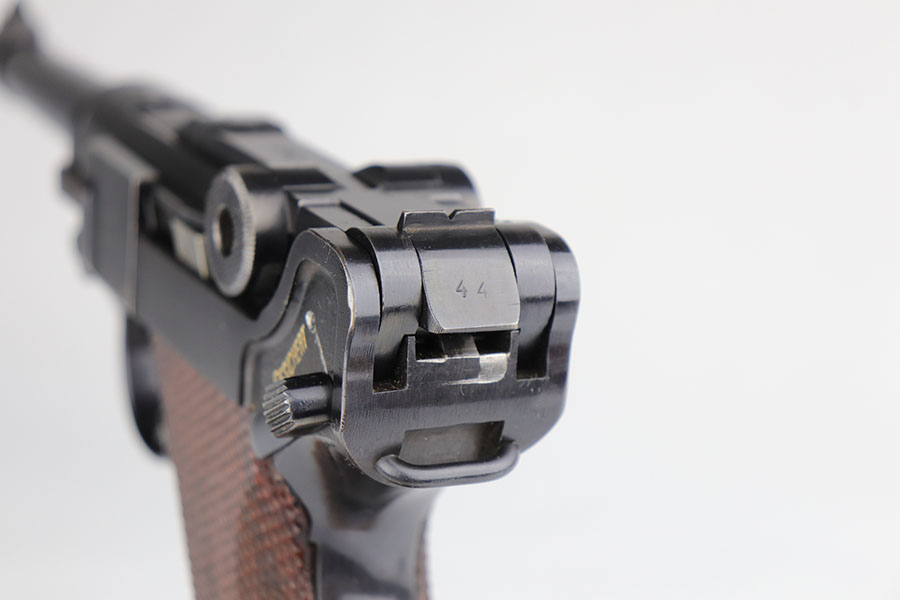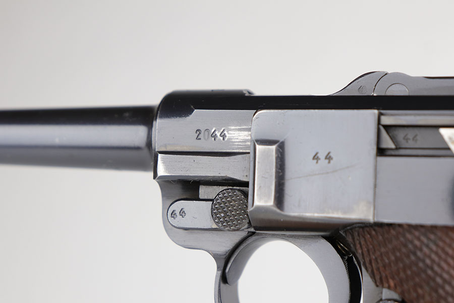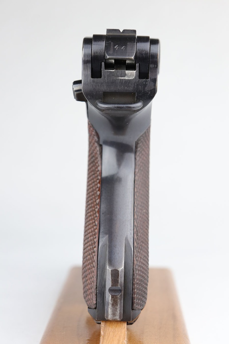 5/5/20 – This is a terrific example of an original 1937 Mauser Luger with the matching grips and magazine. The pistol has about 97% of the original blue with muzzle and high edge wear, and an area of finish loss on the bottom of the front strap. There is also a single thin surface scratch on the sideplate. Strong, shiny bore with minor frost. Minty grips that are numbered to the pistol. Factory original magazine that is also numbered to the gun.