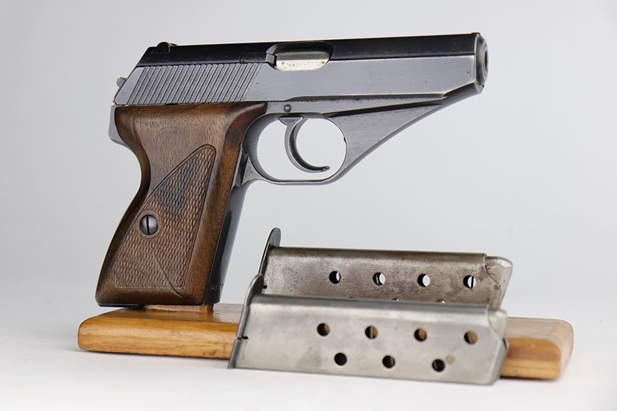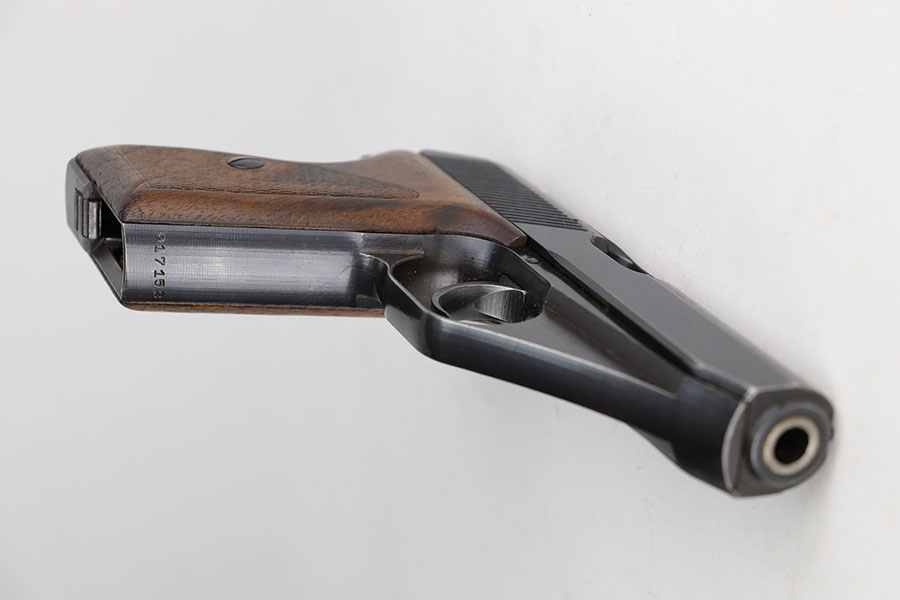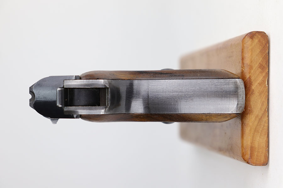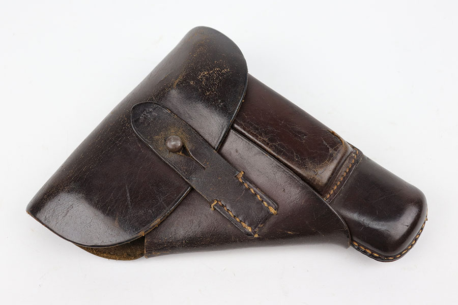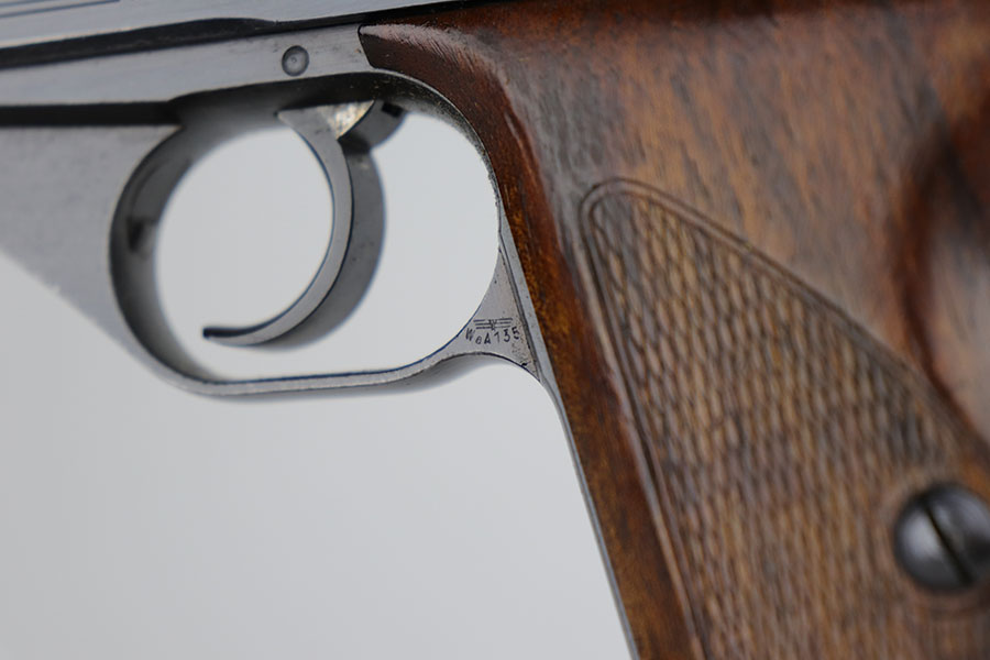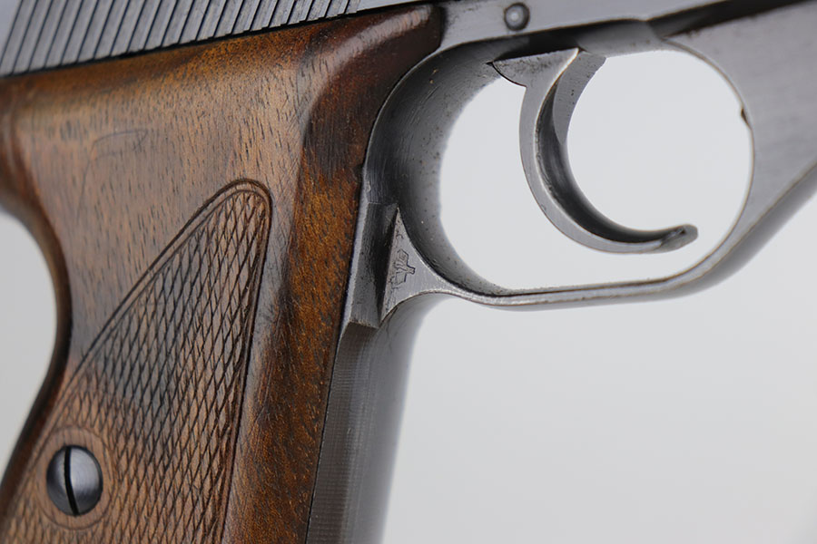 11/18/20 – This is an excellent and complete Army Mauser HSc rig from 1944. The pistol has 97-98% of the military blue remaining. Just a bit of muzzle wear from the holster, and minor thinning on the straps. Mint bore. The grips have some handling wear but no cracks or chips. One magazine is banner marked, the other is half-moon. The holster is in great condition with sharp waffenamt on closure strap, ’42 manufacture date and ‘jhg’ maker mark. It does have a name very lightly scratched in the back of it.